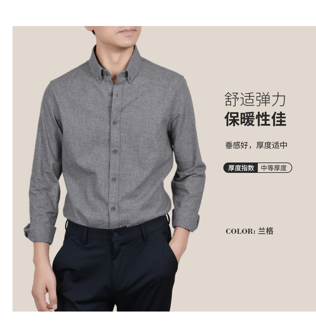 2025 가을, 겨울 새로운 순수 면화 플란넬 셔츠 남성 긴팔 셔츠 긴 스테이플 코튼 비즈니스 캐주얼 인치 셔츠