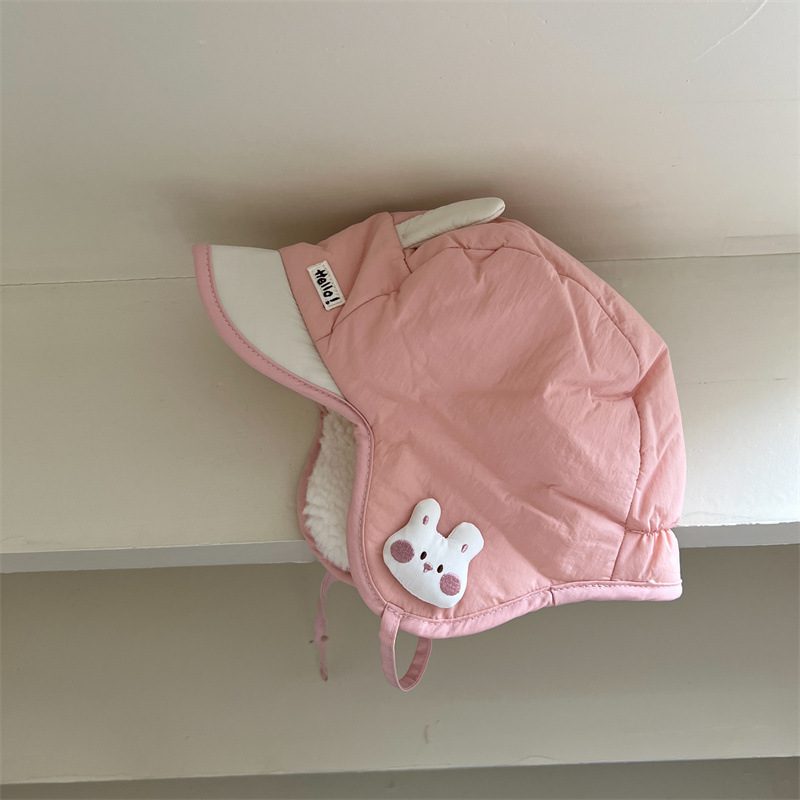 • 핑크 JY 버니 다운 레이펑 모자+3-30개월(40- 50cm )+더블 레이어 벨벳