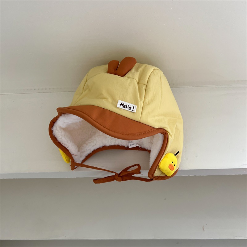 • 노란색 JY 작은 노란색 오리 다운 천둥 모자+3-30개월(40- 50cm )+더블 레이어 벨벳