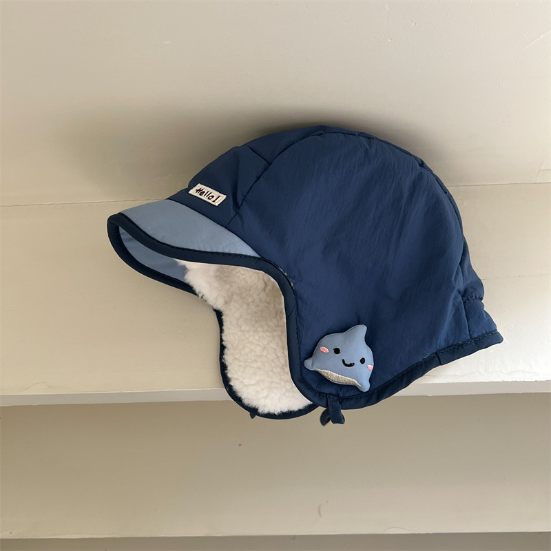 • 블루 JY 꼬마 고래 다운 레이펑 모자+3-30개월(40- 50cm )+더블 레이어 벨벳