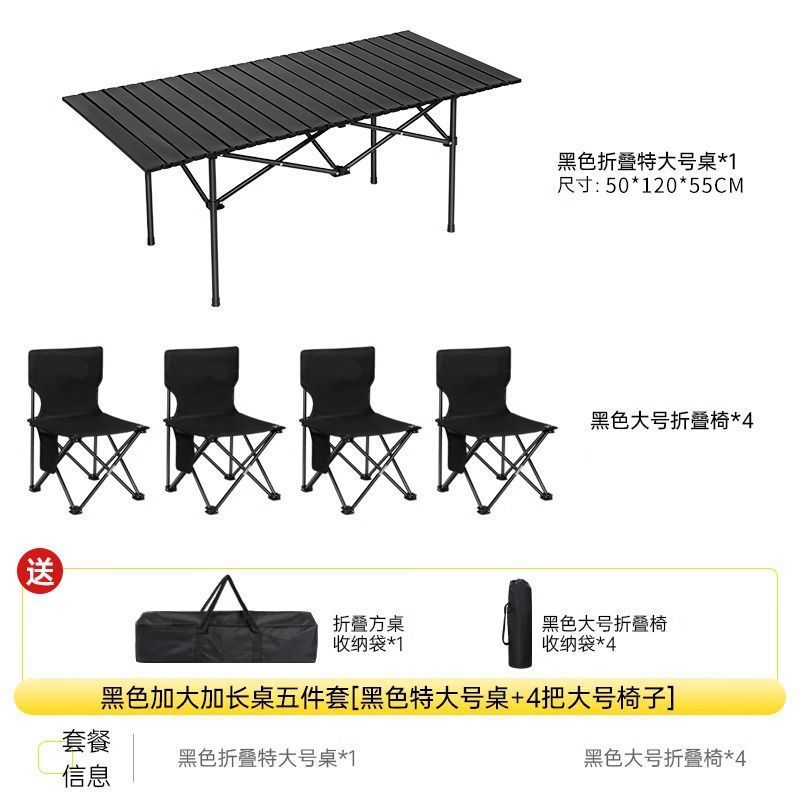 • 검정색 특대형 긴 테이블 120x55x50+대형 검정색 접이식 의자 x4