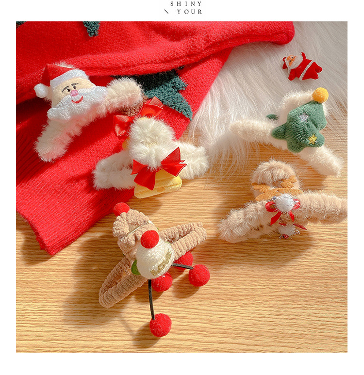 가을과 겨울 크리스마스 봉제 클립 여성의 하이 엔드 머리 상어 클립 귀여운 만화 봉제 머리 장식 도매스토어 가기