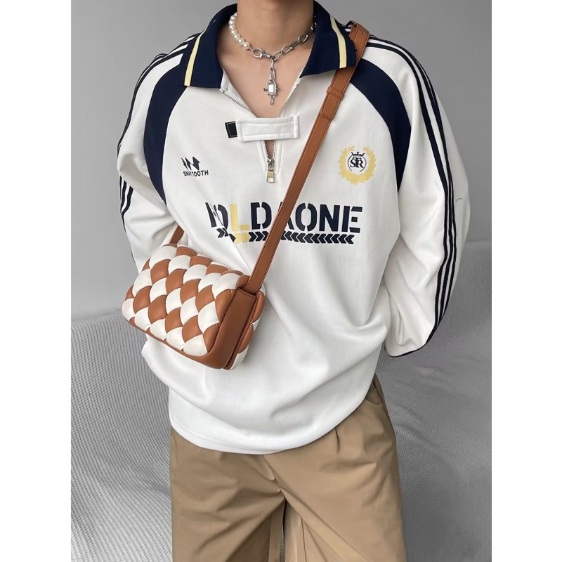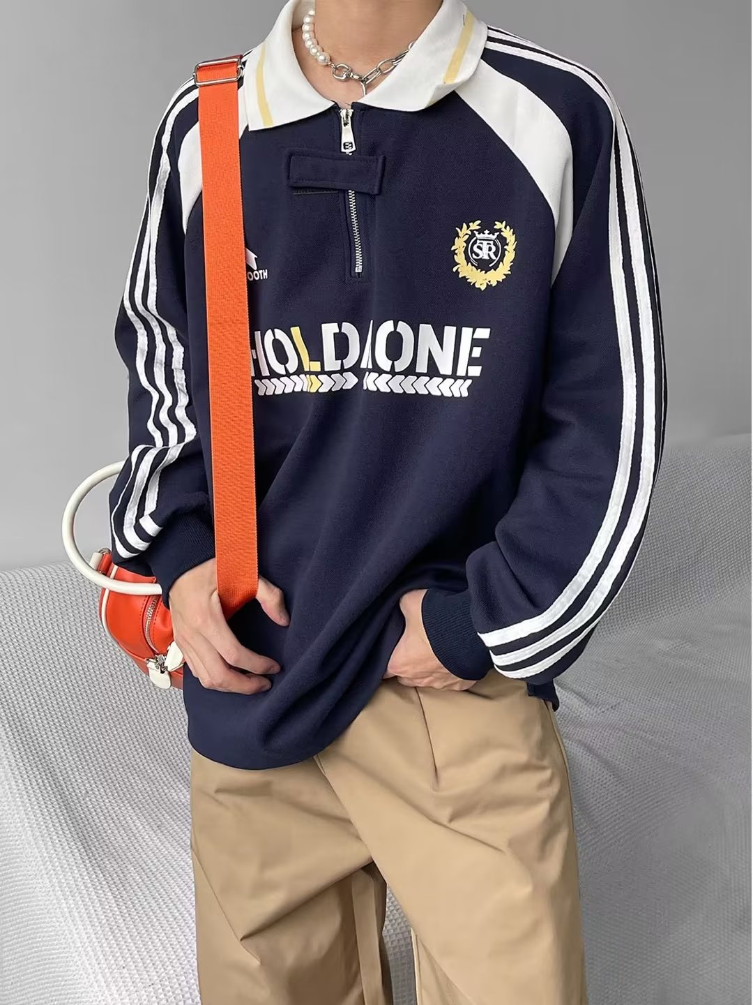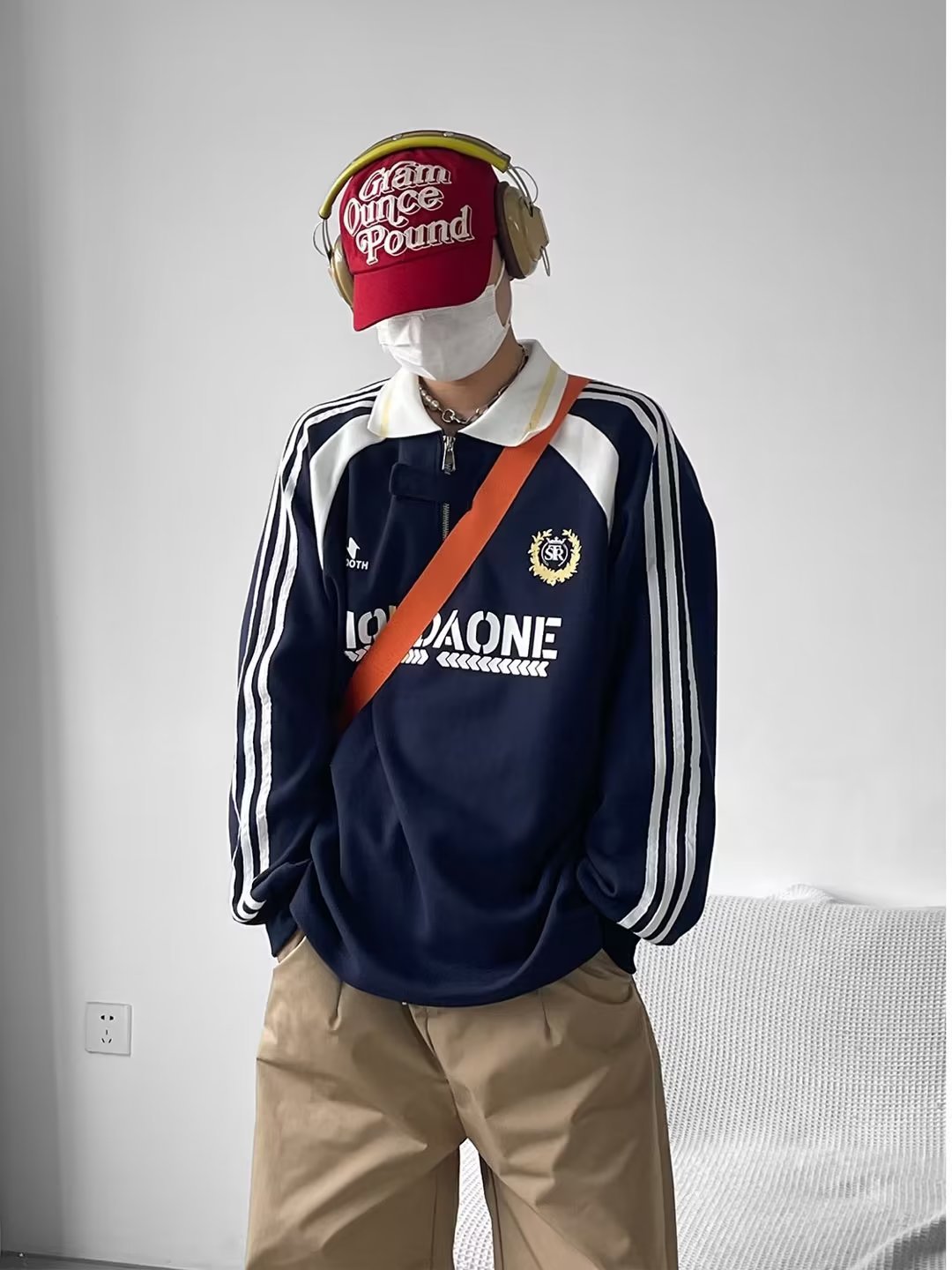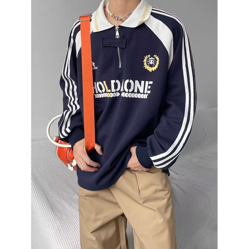 국경을 넘는 미국식 하이 스트리트 레트로 재킷 틈새 디자인 센스 루즈 탑 콘트라스트 폴로 칼라 스웨트 셔츠 남자의 봄과 가을