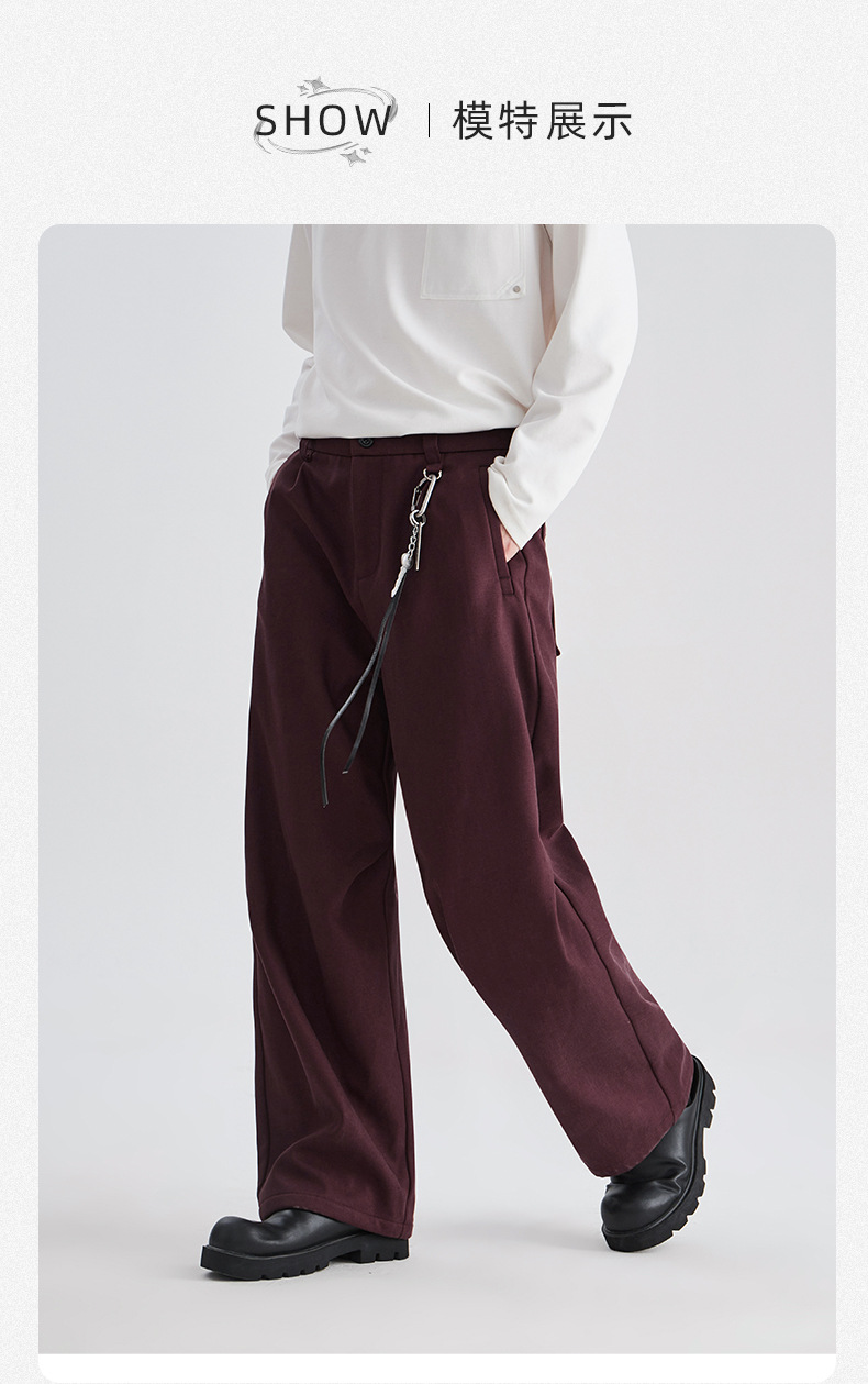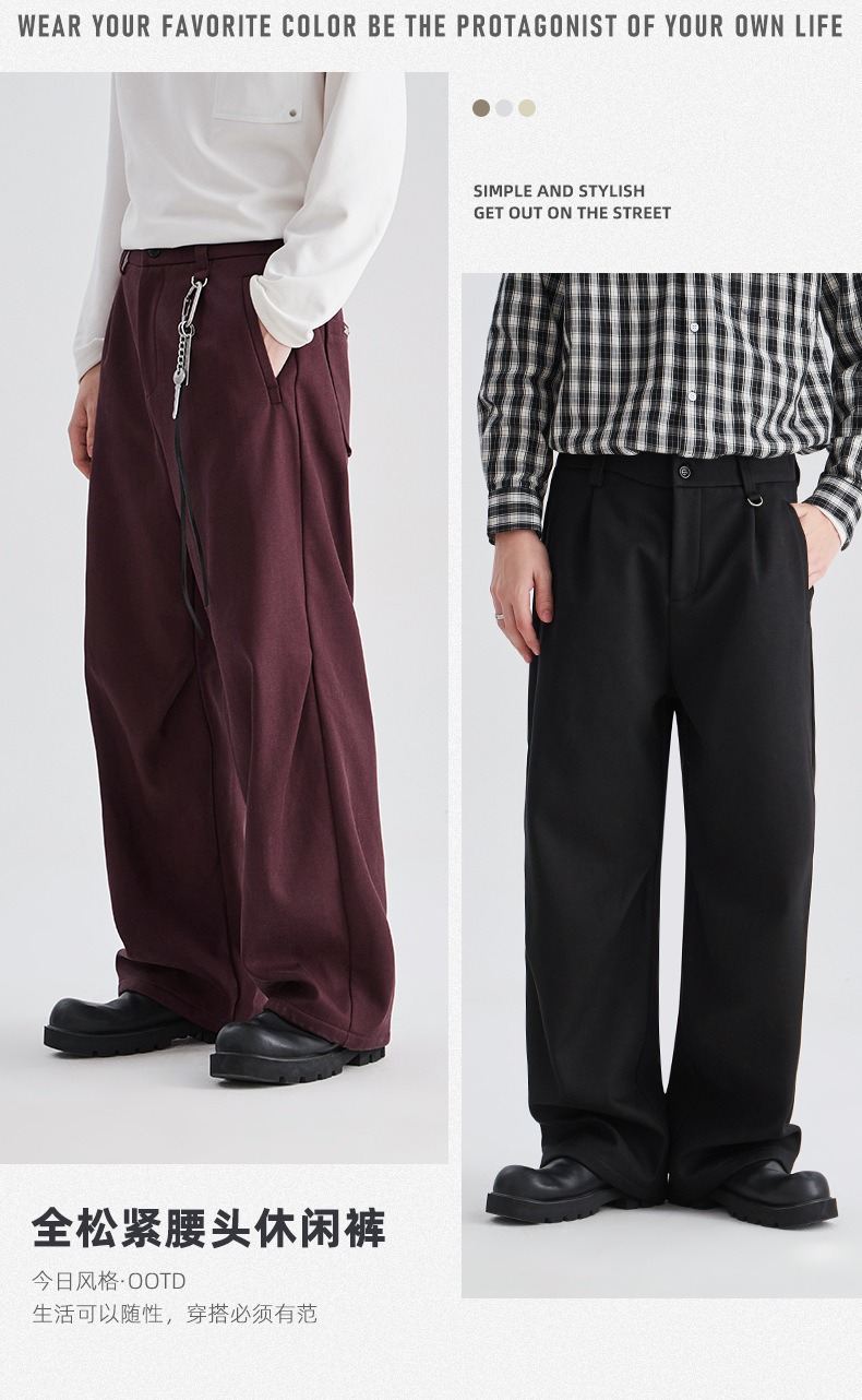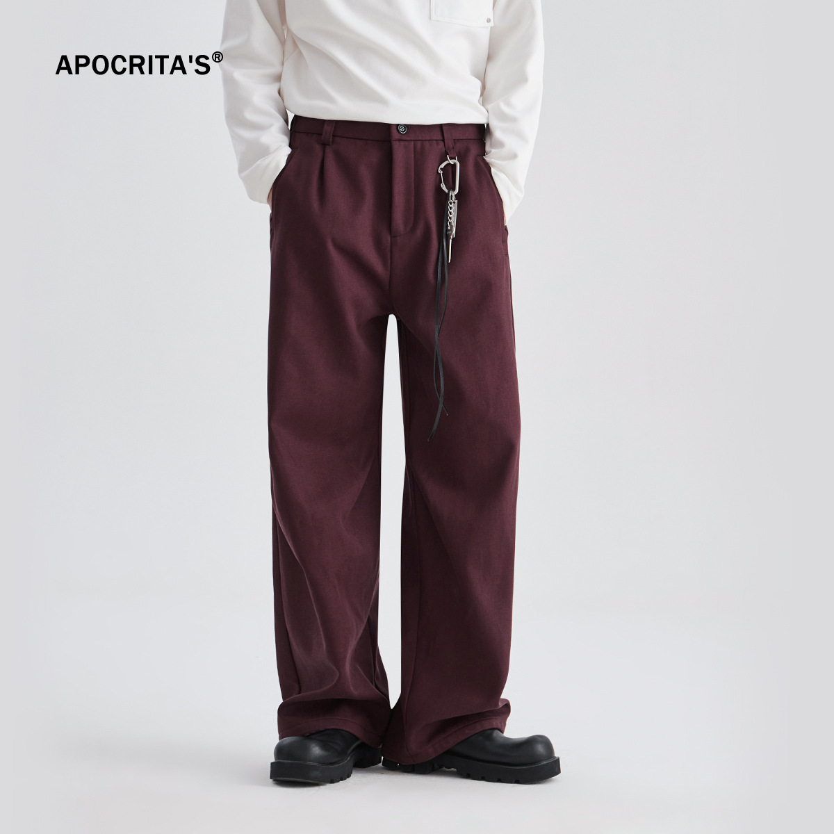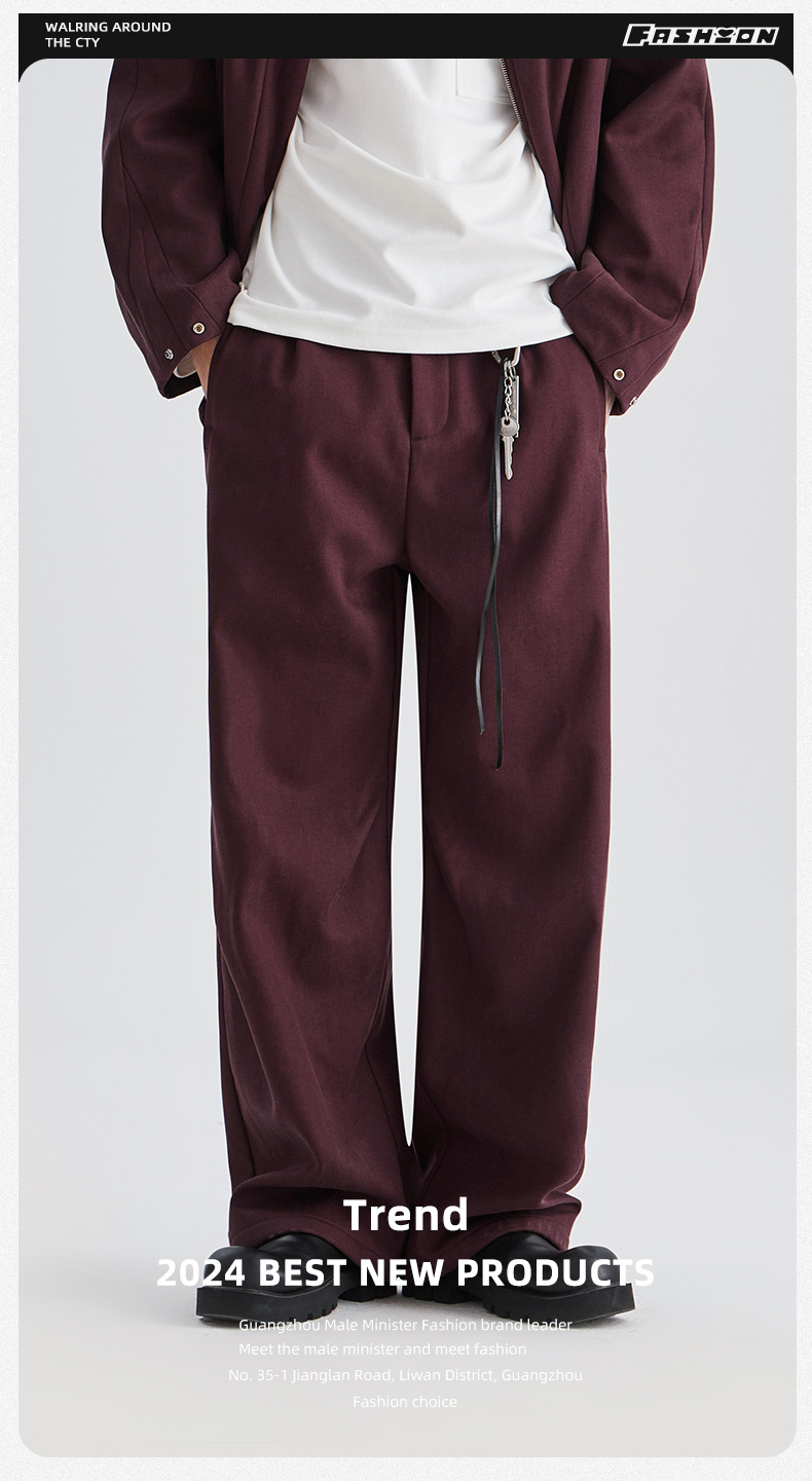APO 남성복 | 레드 캐주얼 바지 남자 가을 겨울 하이 엔드 센스 루즈 스트레이트 한국 패션 반 탄성 바지