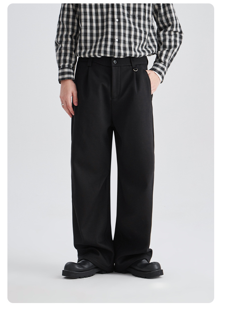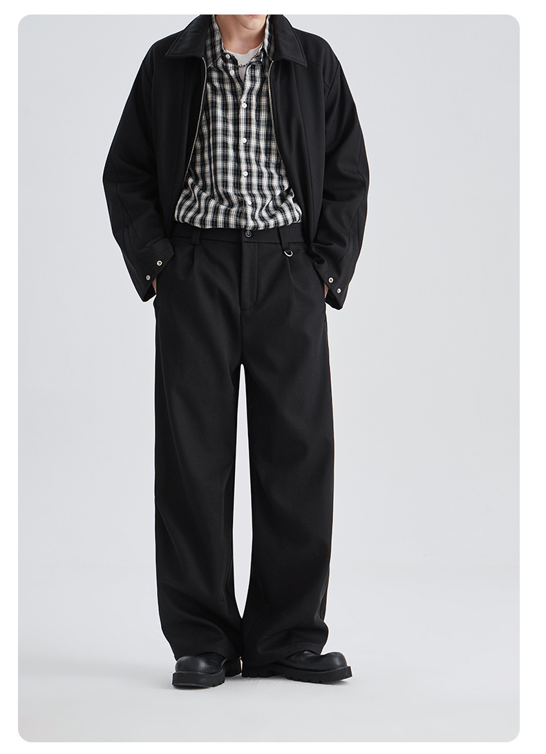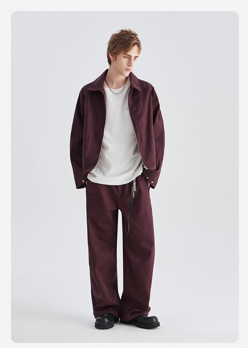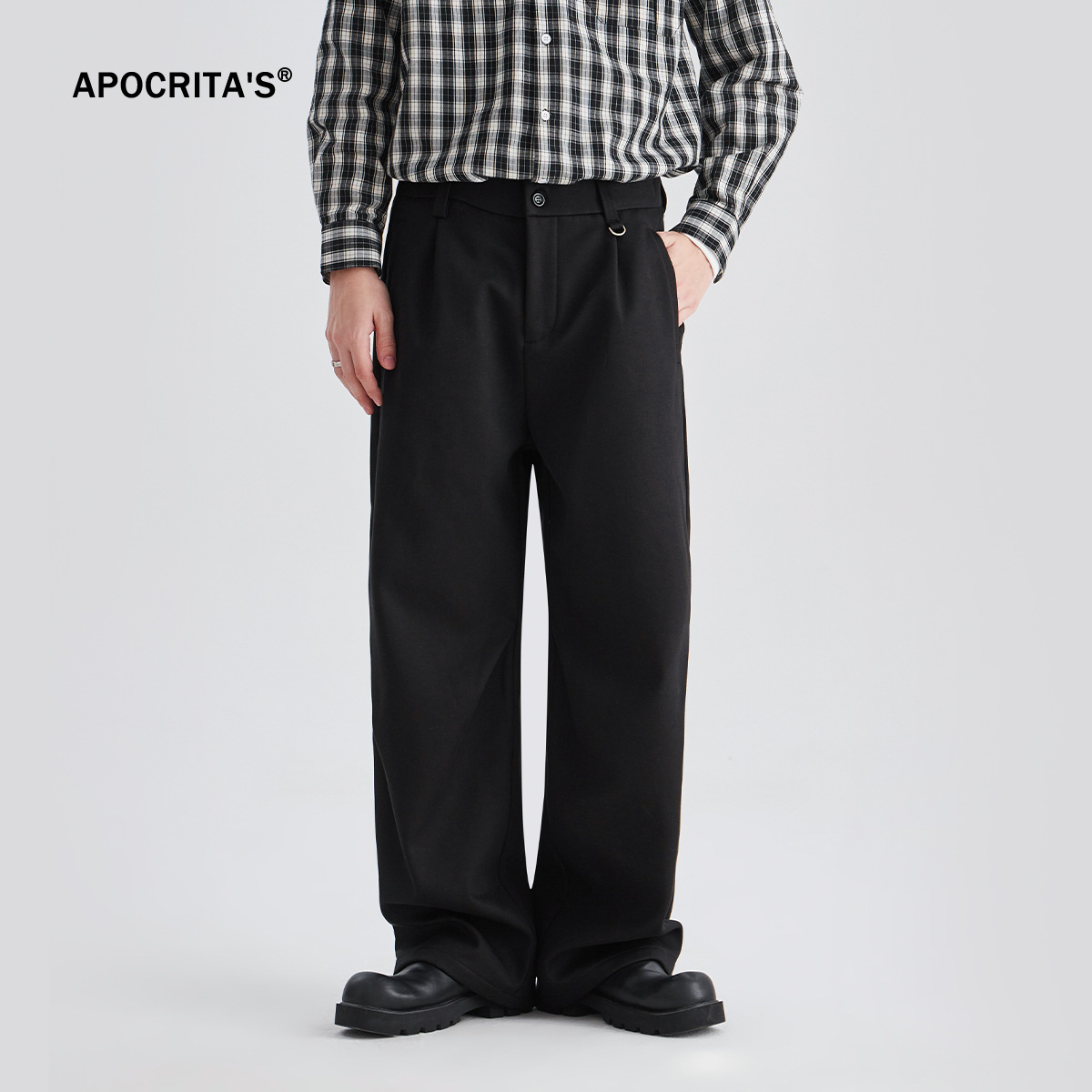 APO 남성복 | 레드 캐주얼 바지 남자 가을 겨울 하이 엔드 센스 루즈 스트레이트 한국 패션 반 탄성 바지