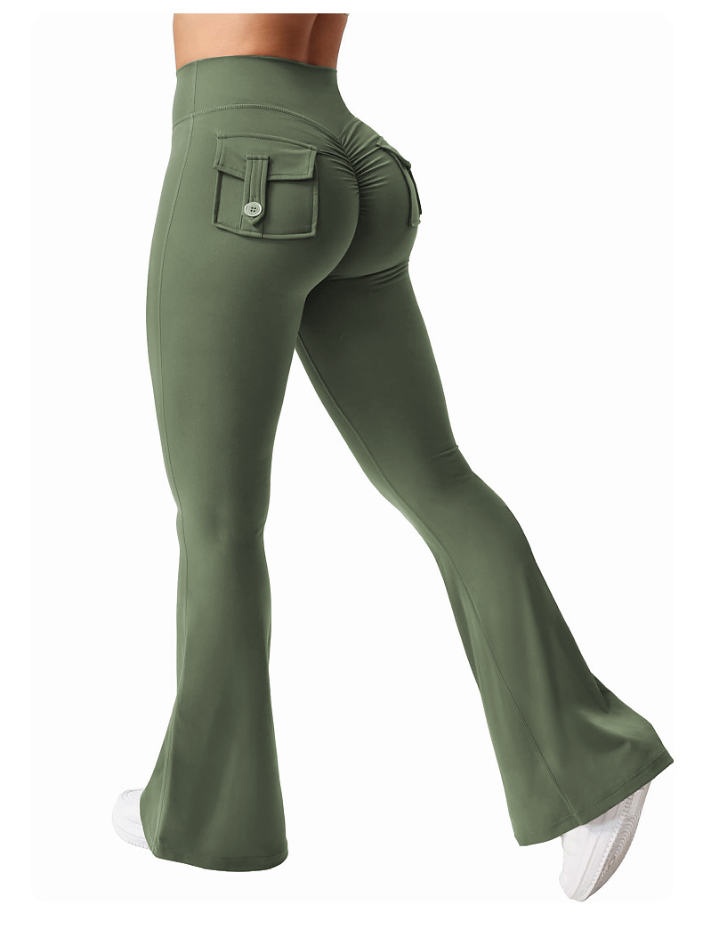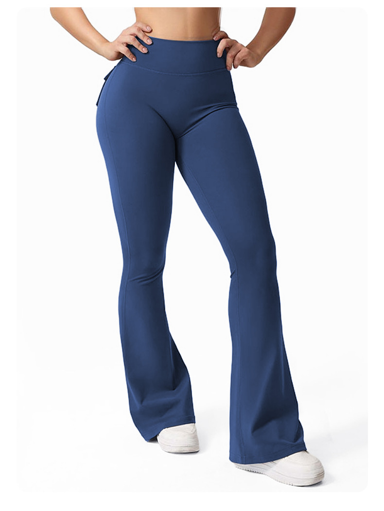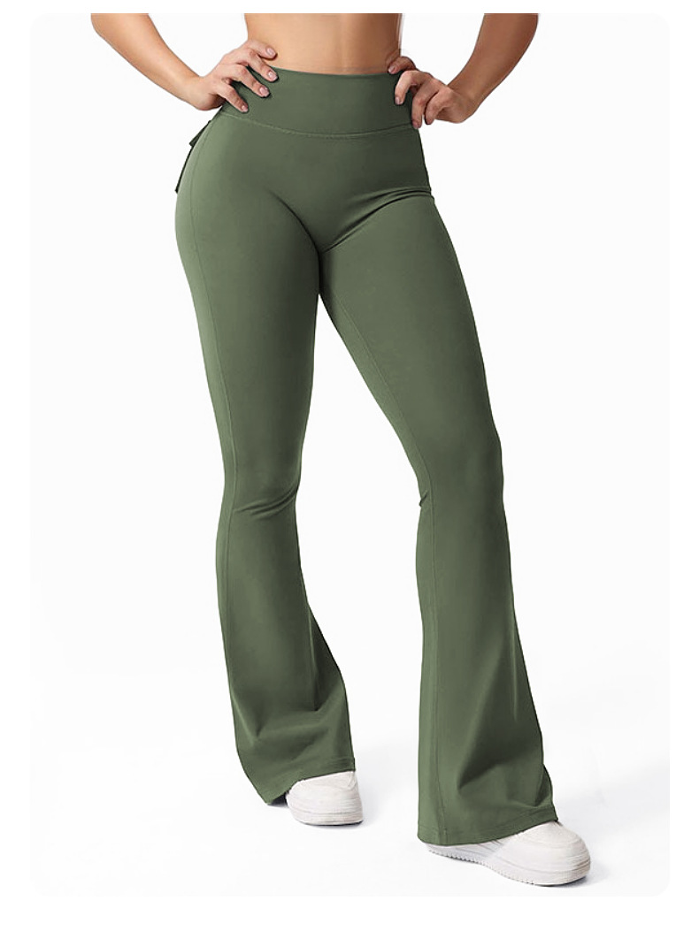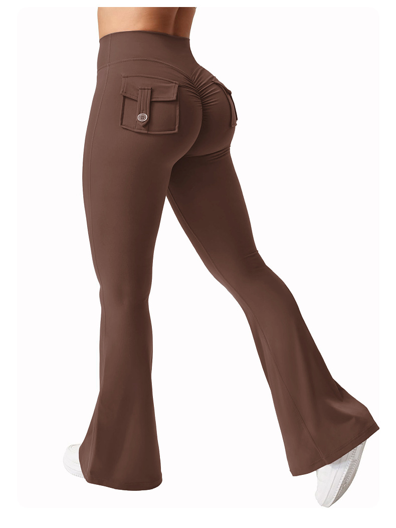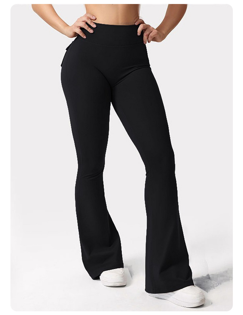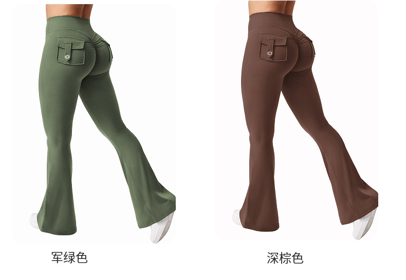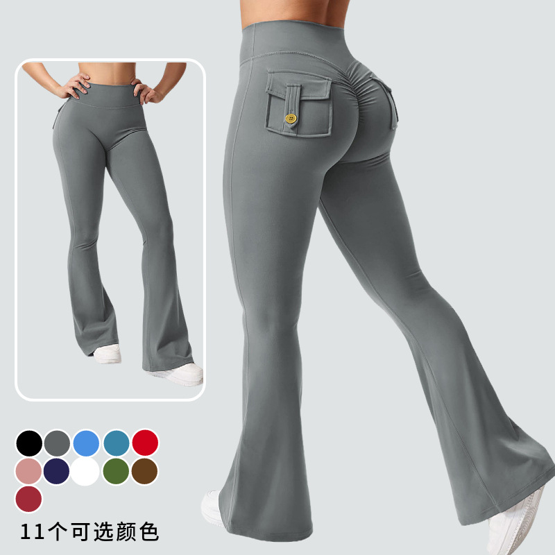 국경 간 아마존 작업복 포켓 요가 바지 여성용 플레어 바지 엉덩이 리프팅 스포츠 타이트 피트니스 바지 마이크로 요가 바지