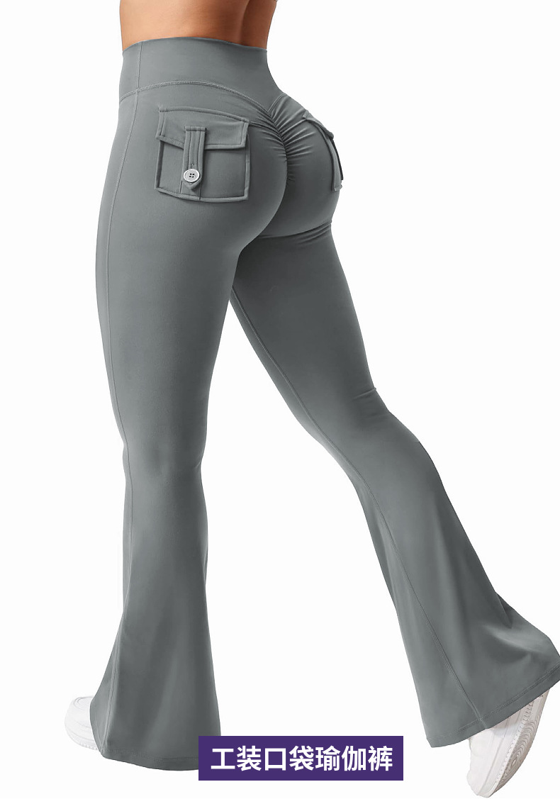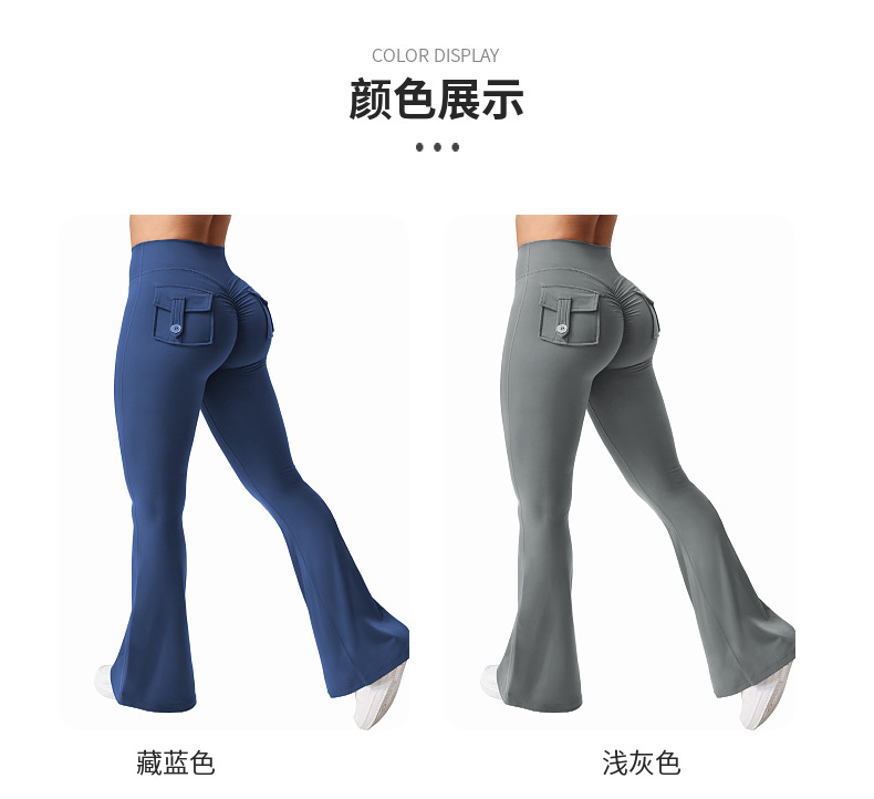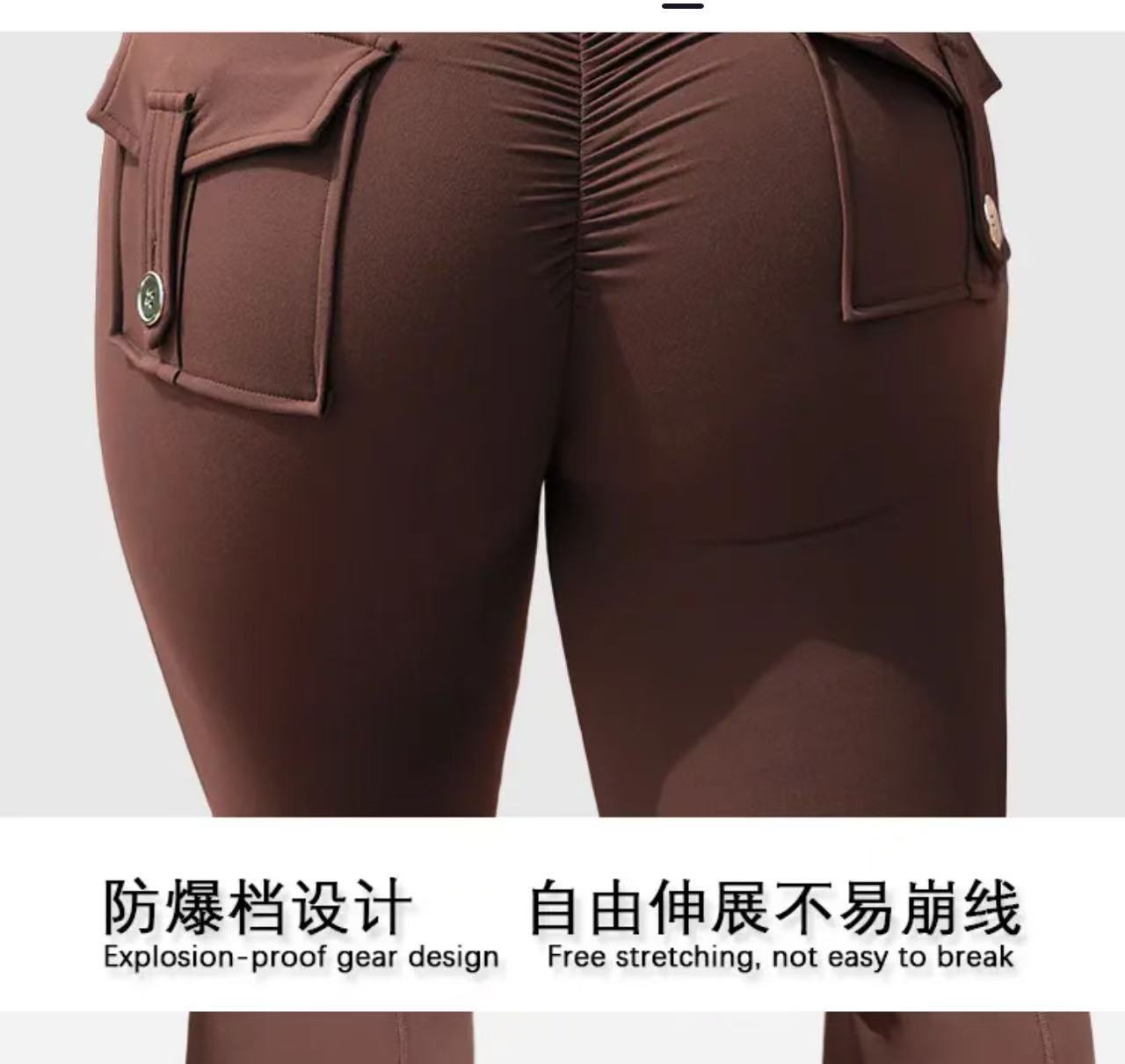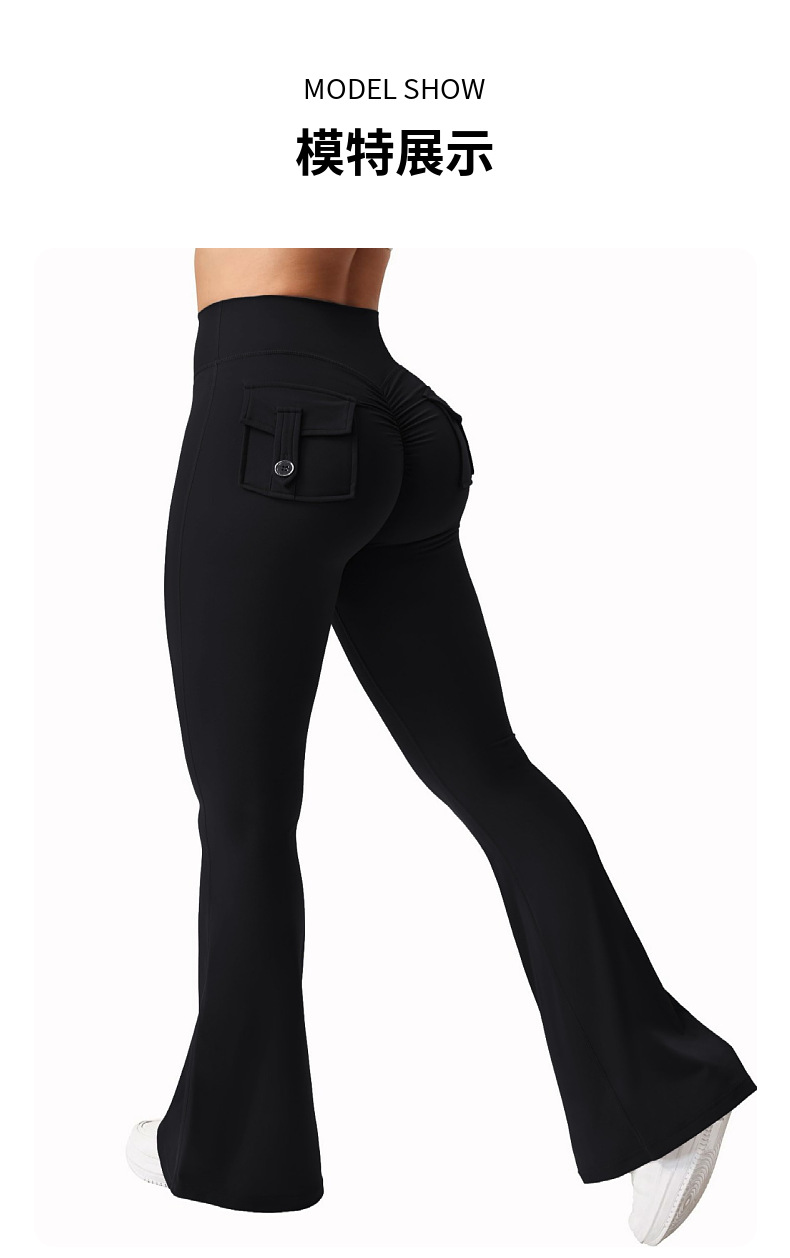 국경 간 아마존 작업복 포켓 요가 바지 여성용 플레어 바지 엉덩이 리프팅 스포츠 타이트 피트니스 바지 마이크로 요가 바지스토어 가기