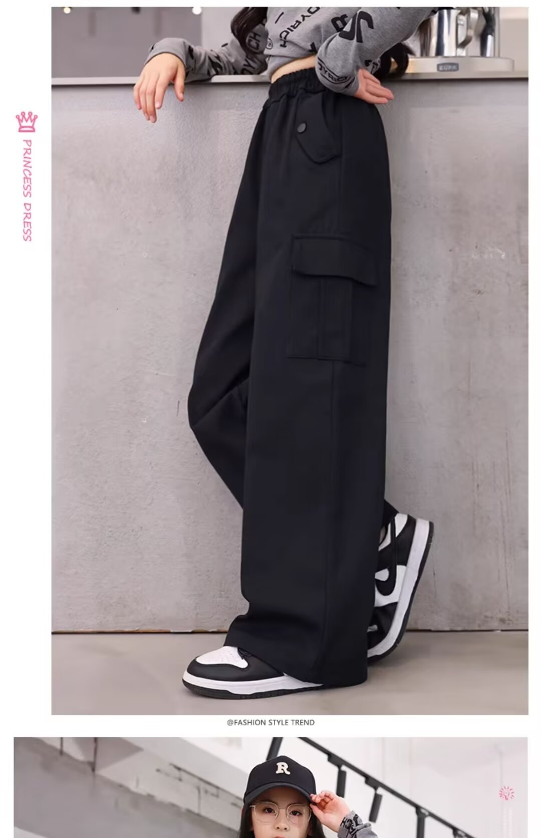 소녀 작업복 2024 년 새 어린이 캐주얼 바지 소녀 바지 가을 느슨한 중 · 대형 어린이 가을