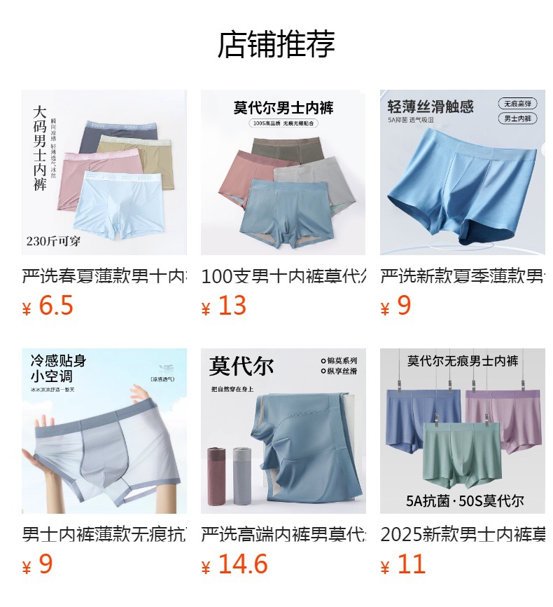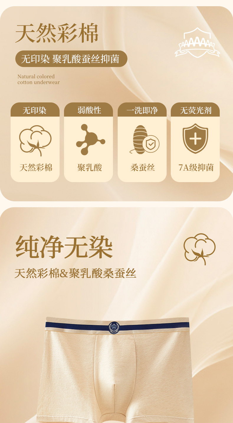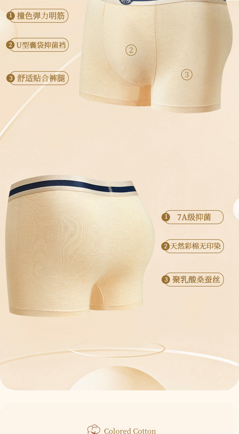 2025년 신상 천연 컬러 코튼 편안하고 통기성 좋은 사각팬티 남성용 대형 사이즈 중간 허리 높이 7A 항균 순면 무봉제 남성 속옷스토어 가기