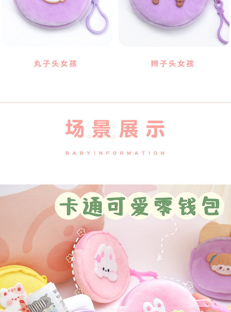 새로운 귀여운 만화 플러시 동전 지갑 어린이 지퍼 동전 가방 키 가방 휴대용 미니 헤드폰 가방 도매스토어 가기