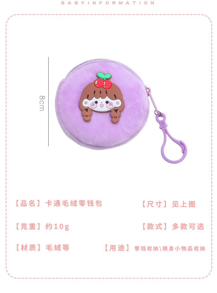 새로운 귀여운 만화 플러시 동전 지갑 어린이 지퍼 동전 가방 키 가방 휴대용 미니 헤드폰 가방 도매