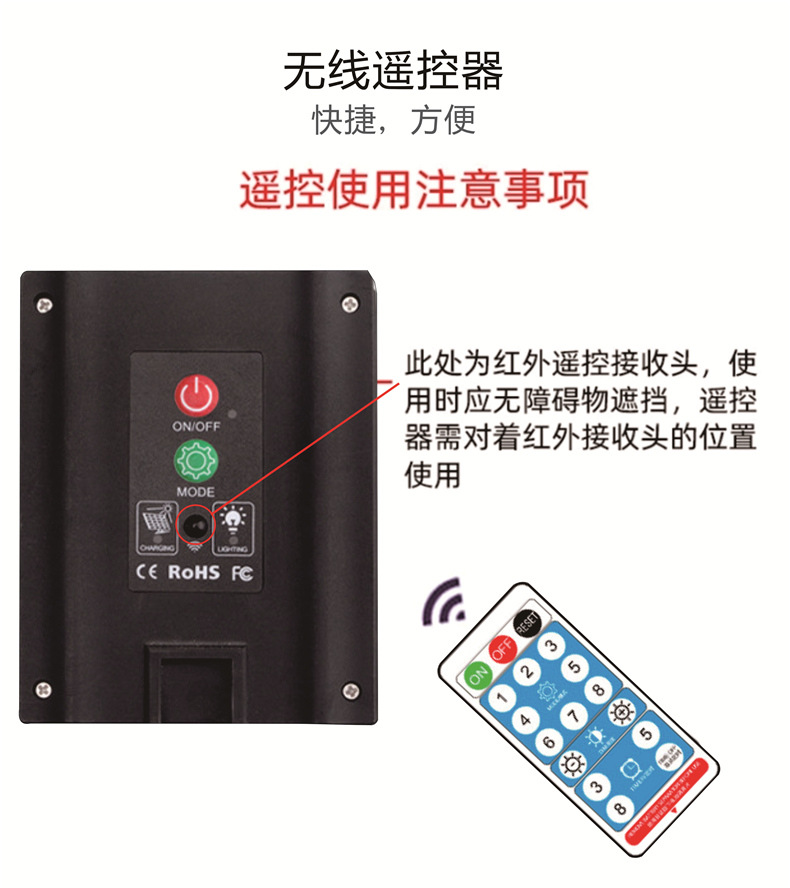 • 32.3m 조명 원격 제어 + USB 충전 기능이 있는 태양광 모델