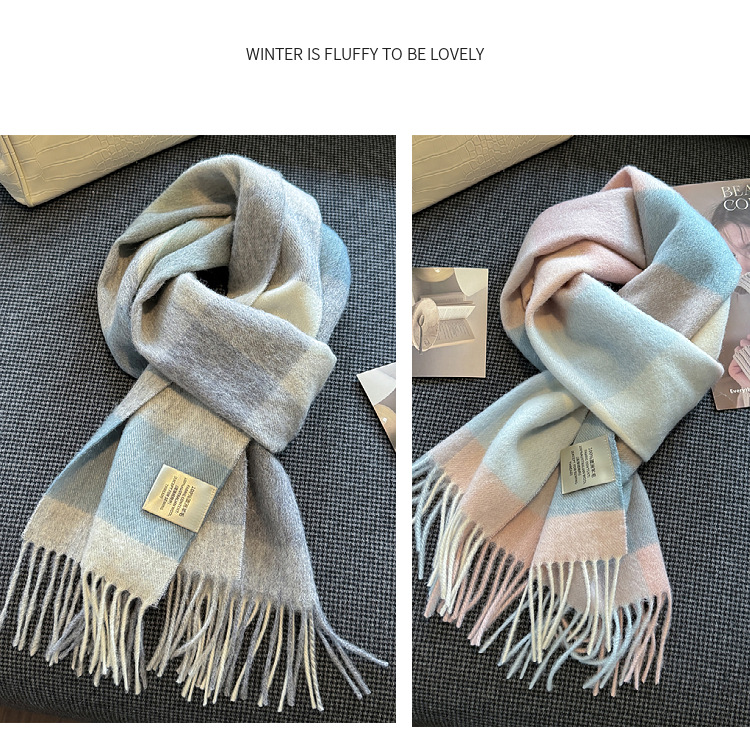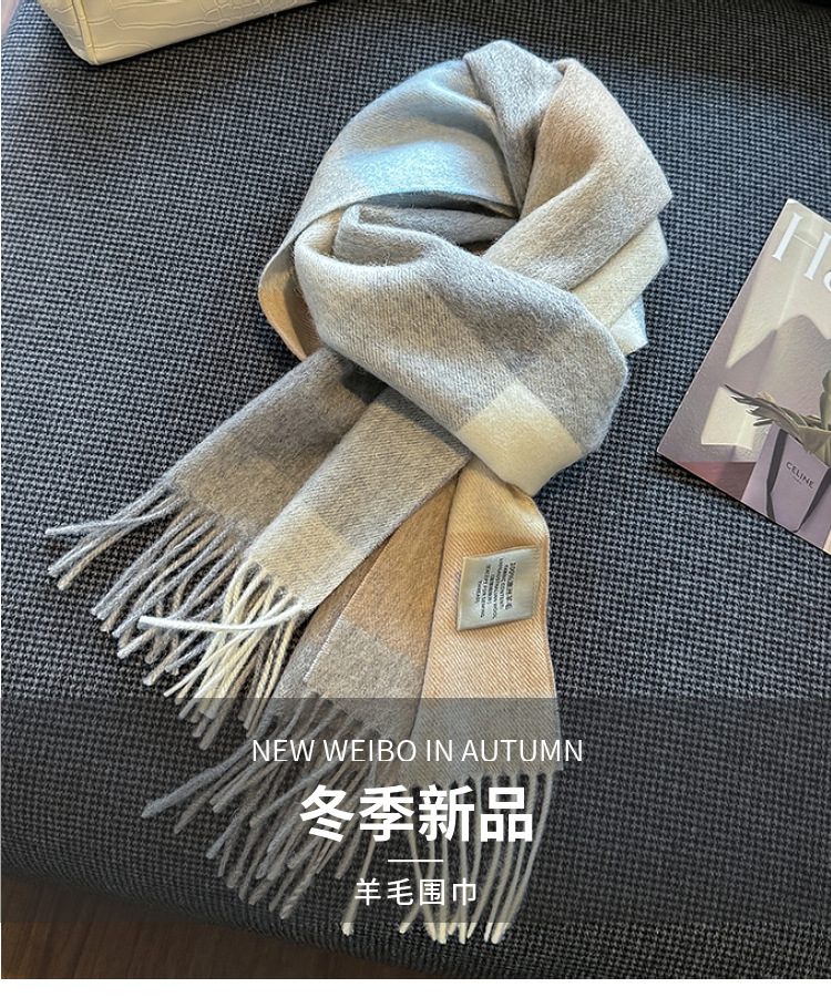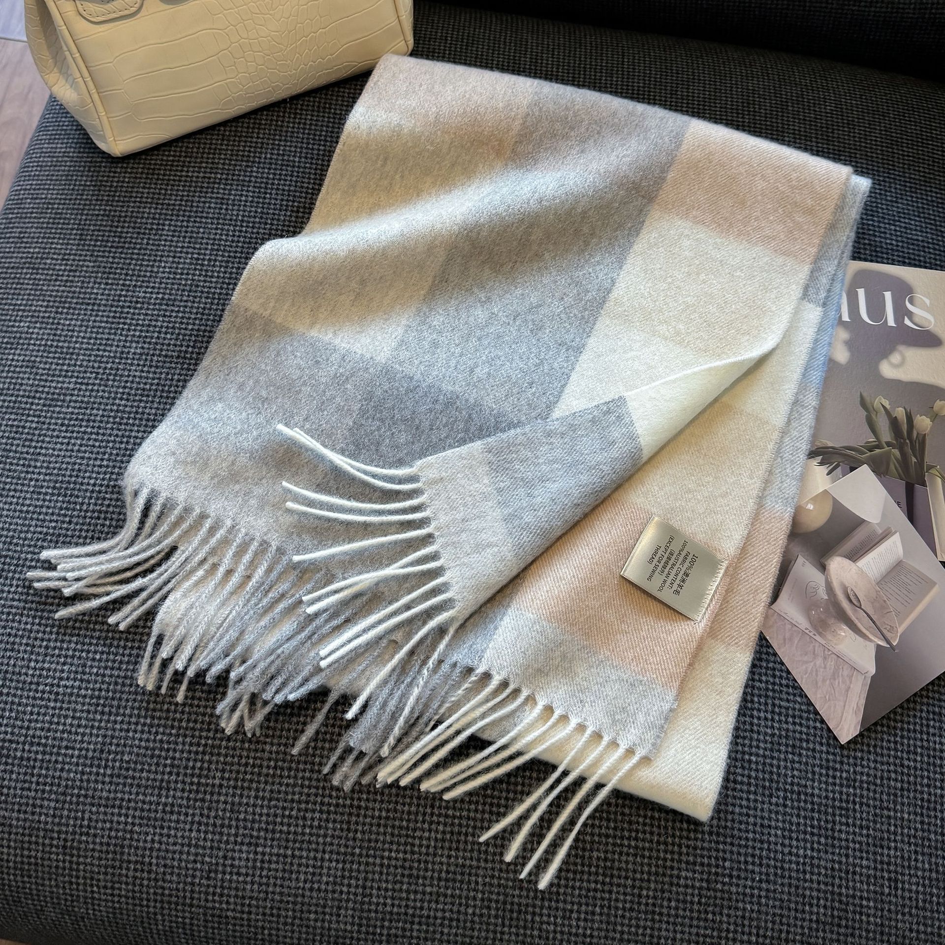새로운 100% 양모 스카프 고급 여성 올 매치 두꺼운 격자 무늬 스티칭 따뜻한 목 이중 사용 2024 가을과 겨울스토어 가기