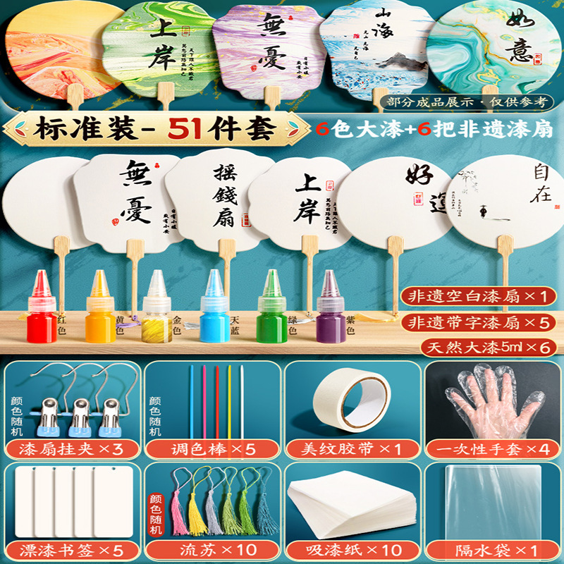 • [무료 대용량 물통] 대형 페인트 6색 + 무형물 페인트 부채 6개 [표준 51개]