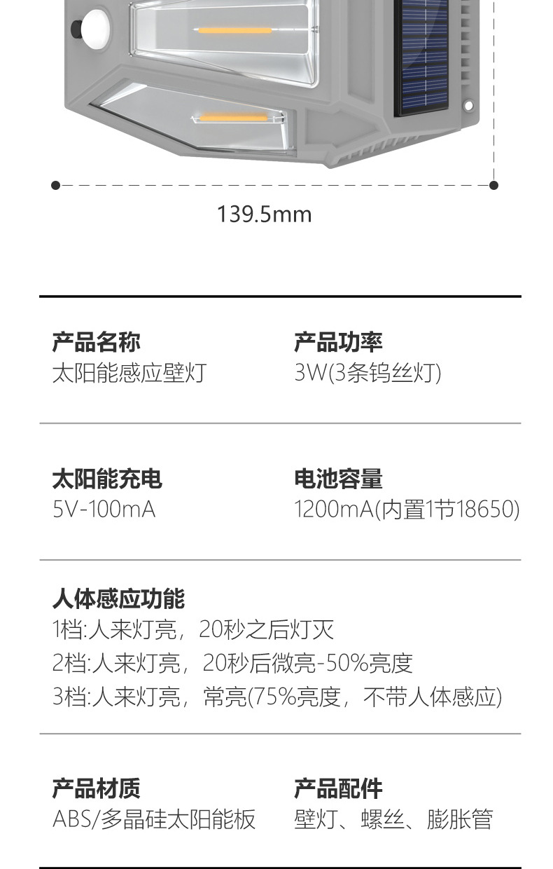 새로운 야외 태양 텅스텐 와이어 벽 램프 유도 벽 램프 정원 램프 야간 조명 3 조정 가능한 분위기 빛