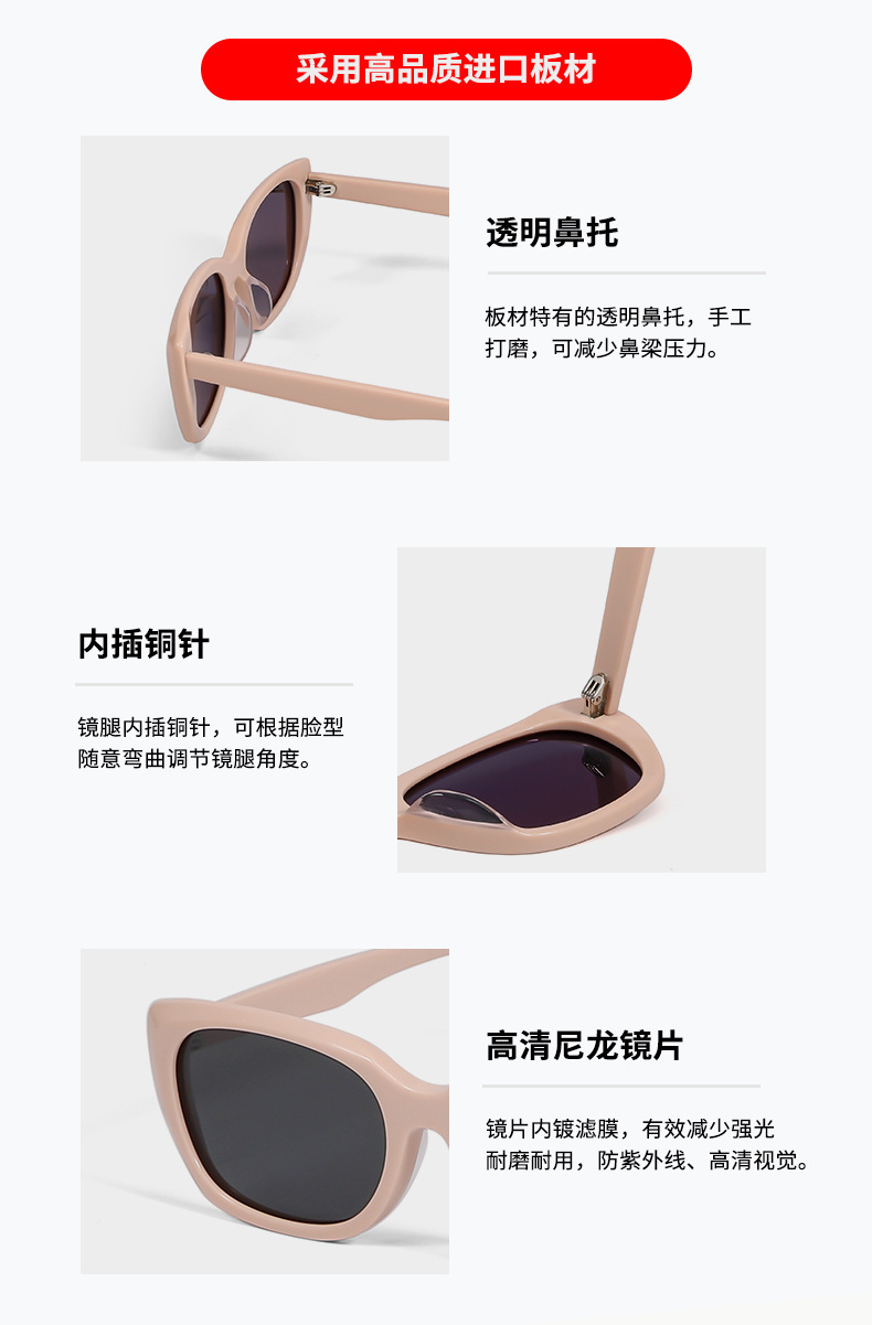 고급 센스 플레이트 레트로 고양이의 눈 작은 파우더 프레임 선글라스 여성의 새로운 좁은 프레임 안경 UV 보호 선글라스 패션