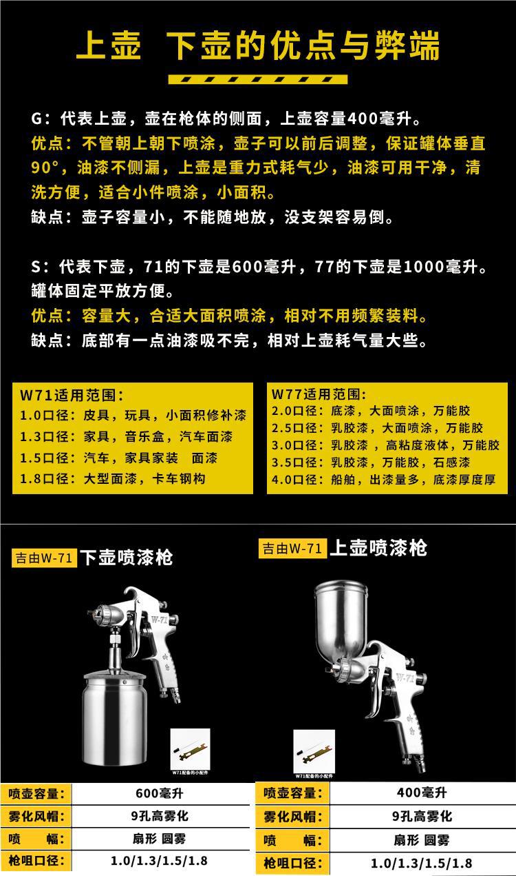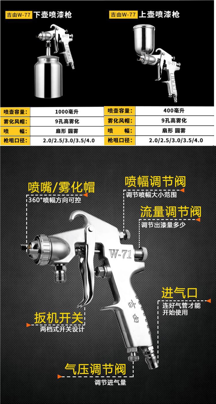 Jiyou 자동차 페인트 스프레이 건 w77 가구 기계식 스틸 타일 라텍스 페인트 스프레이 포트 w71 공압 스프레이 건