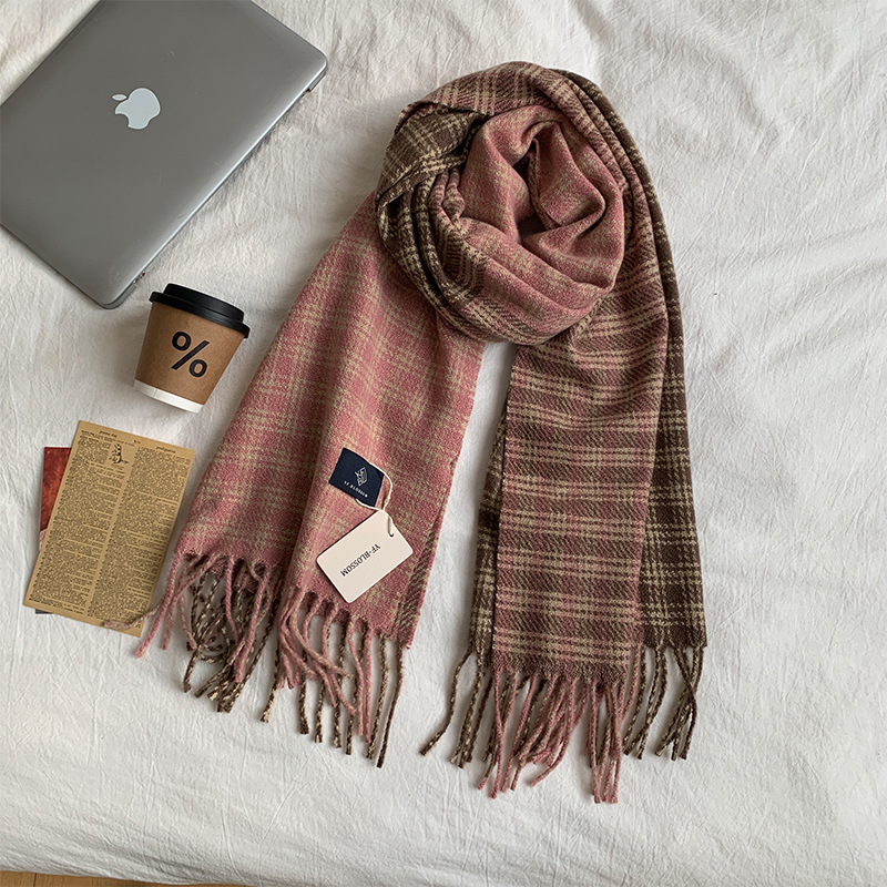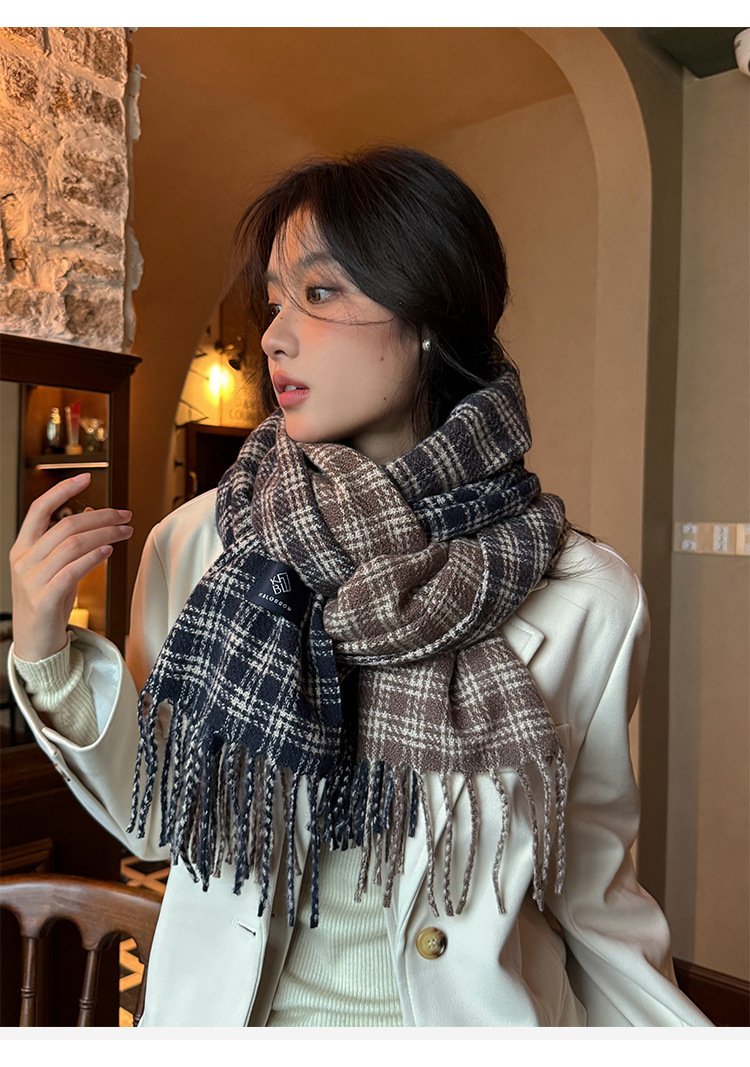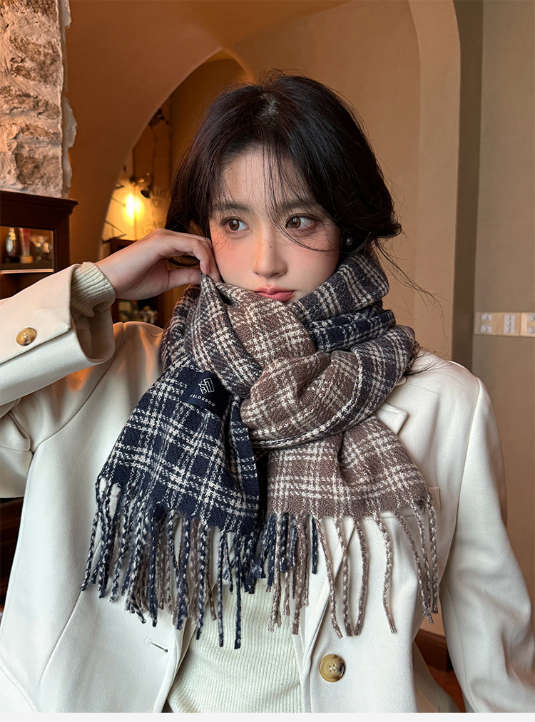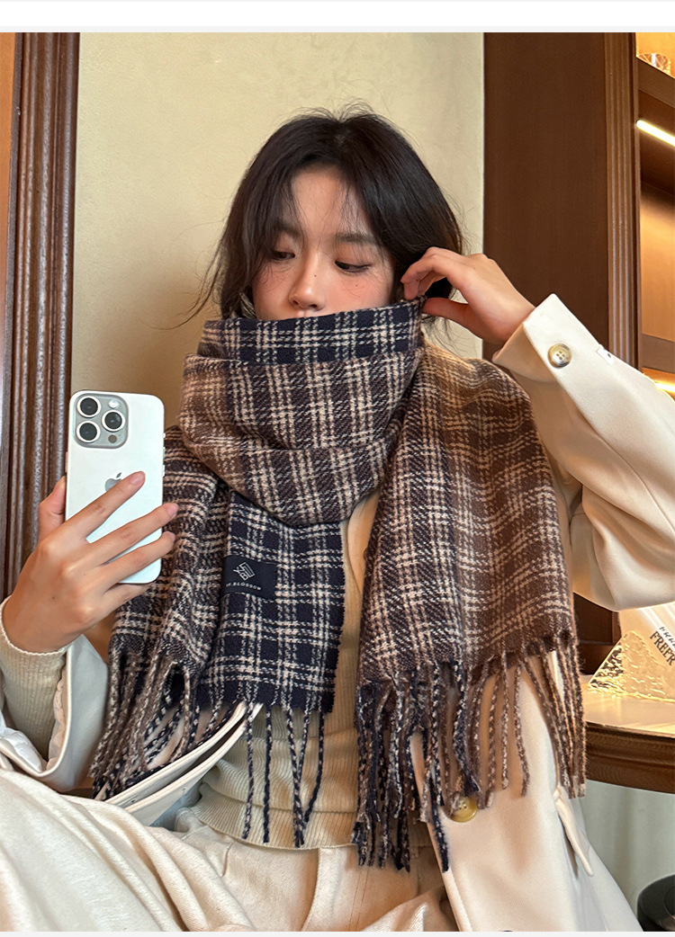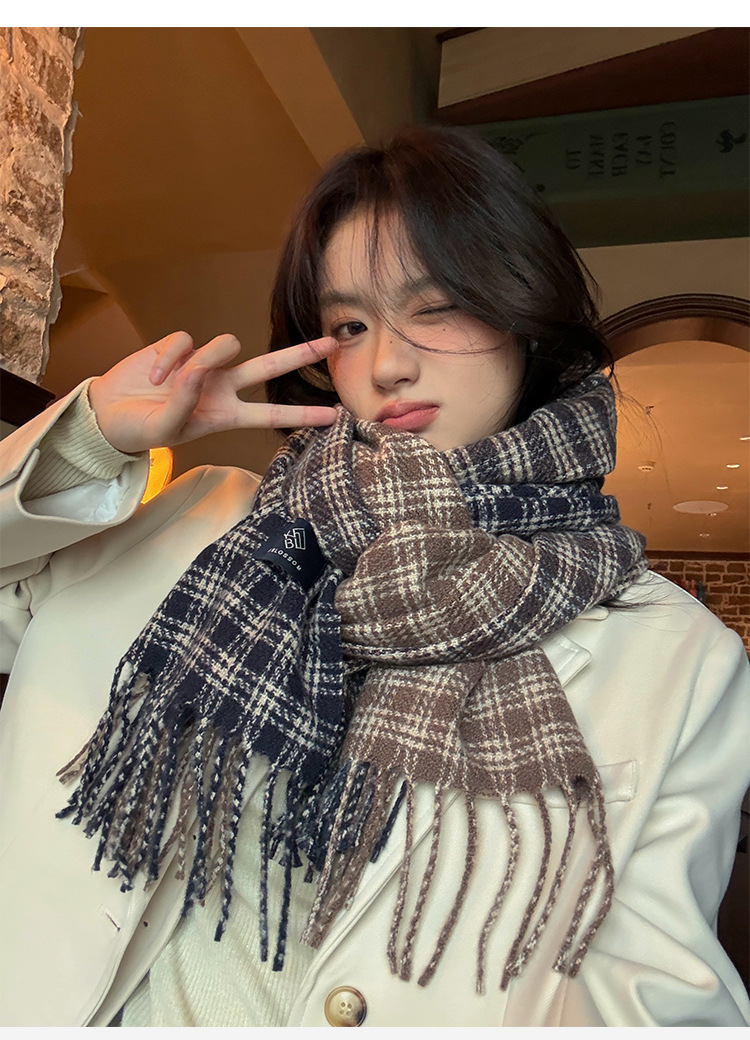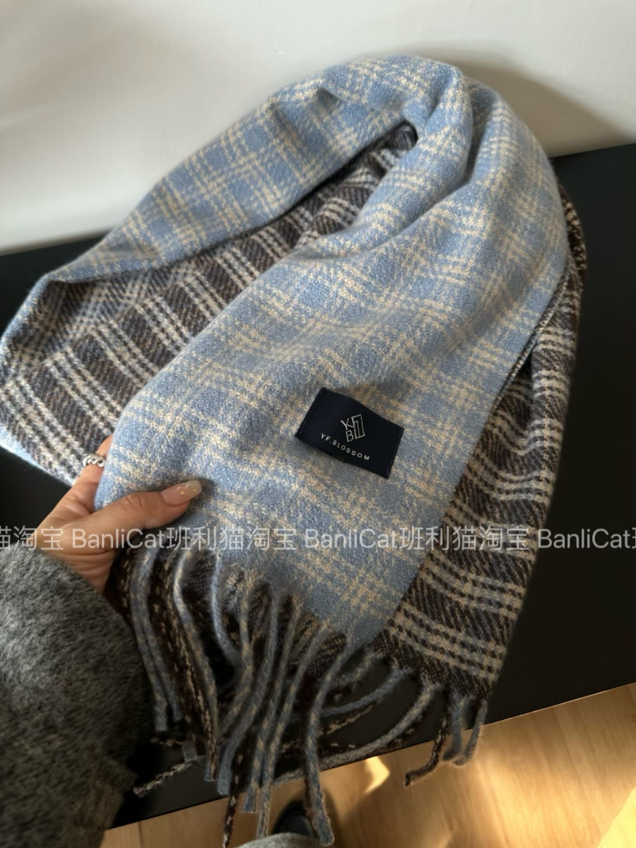 격자 무늬 스카프 소녀의 겨울 2024 새로운 양면 한국식 하이 엔드 두꺼운 코트 레트로 스카프스토어 가기
