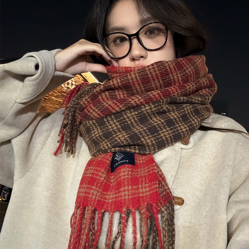 격자 무늬 스카프 소녀의 겨울 2024 새로운 양면 한국식 하이 엔드 두꺼운 코트 레트로 스카프