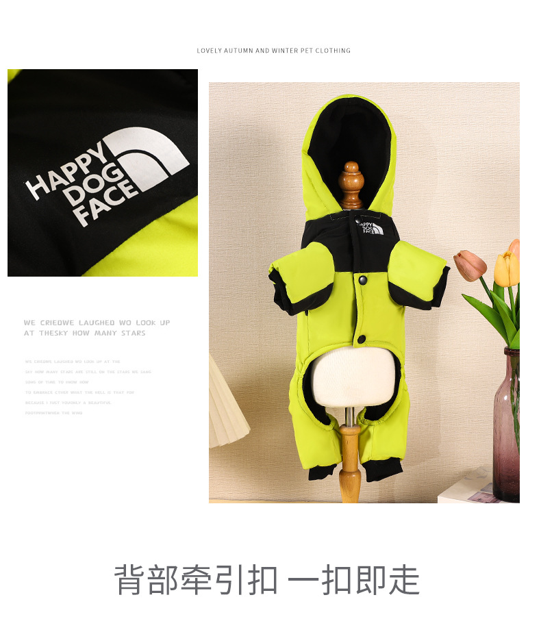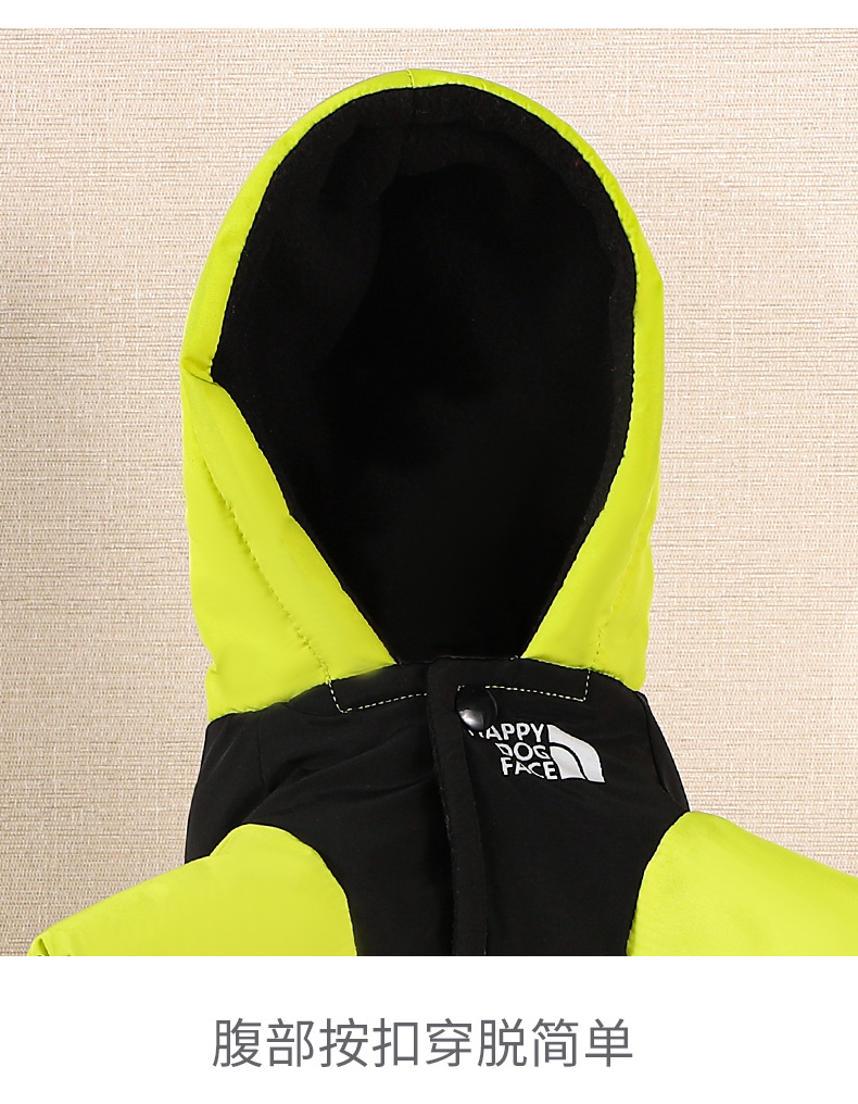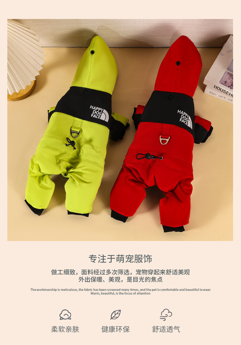 새로운 겨울 개 옷 기모 두꺼운 북면 패딩 코트 개 옷 따뜻한 후드 네 다리 애완 동물 옷