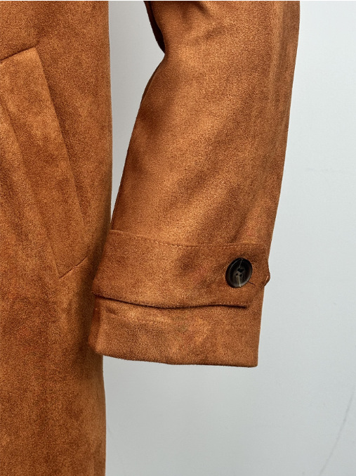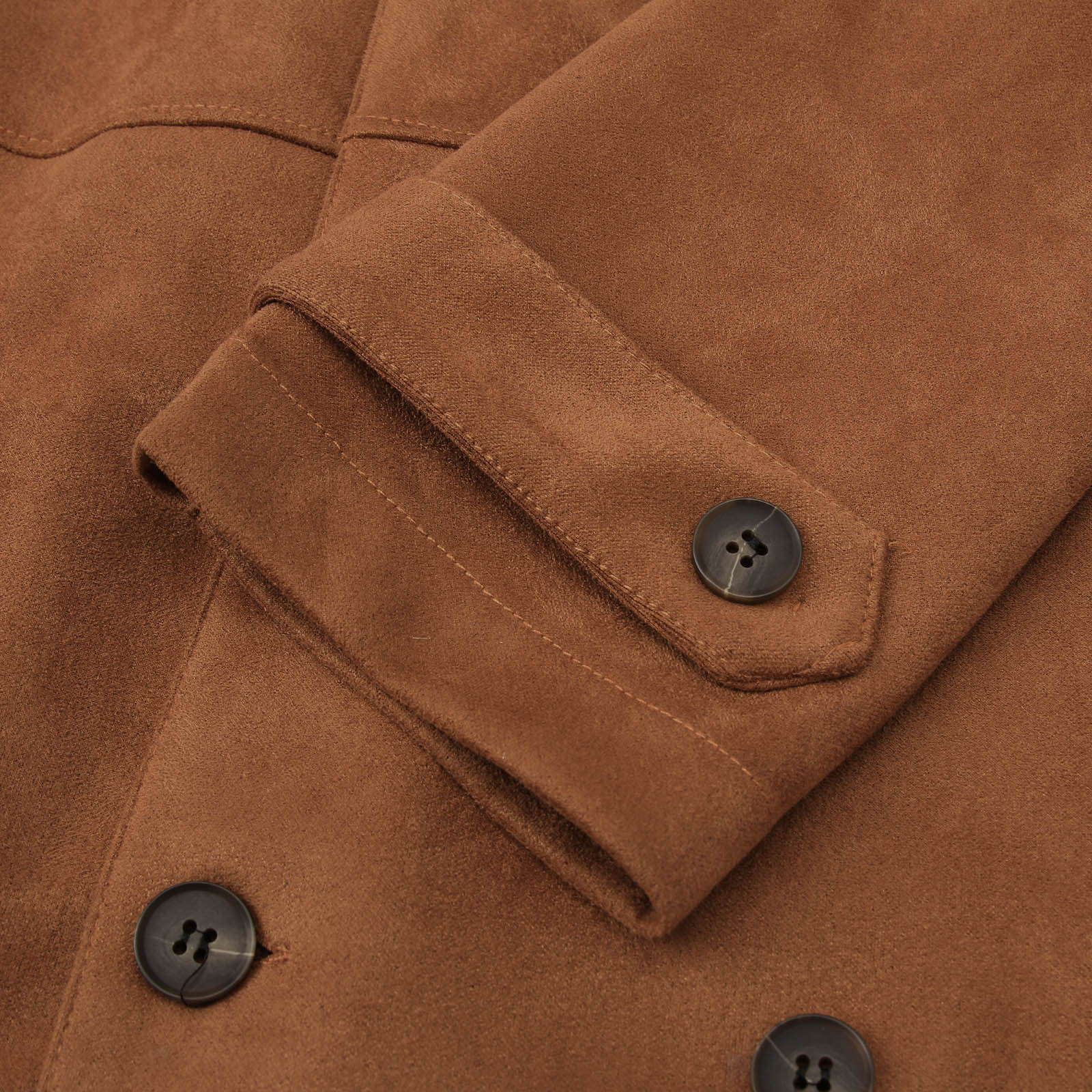 국경 간 2025 가을, 겨울 새로운 미국 복고풍 스웨이드 코트 남성 중간 길이 옷깃 윈드 브레이커 더블 브레스트 코트스토어 가기