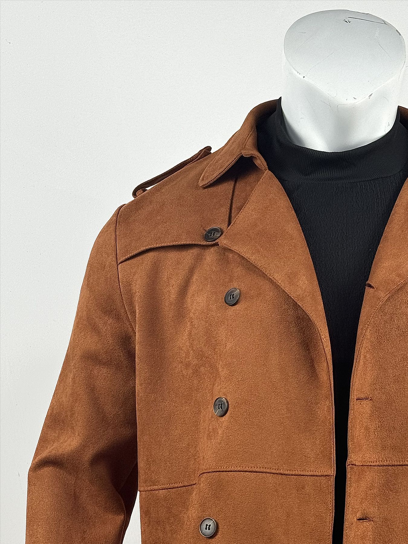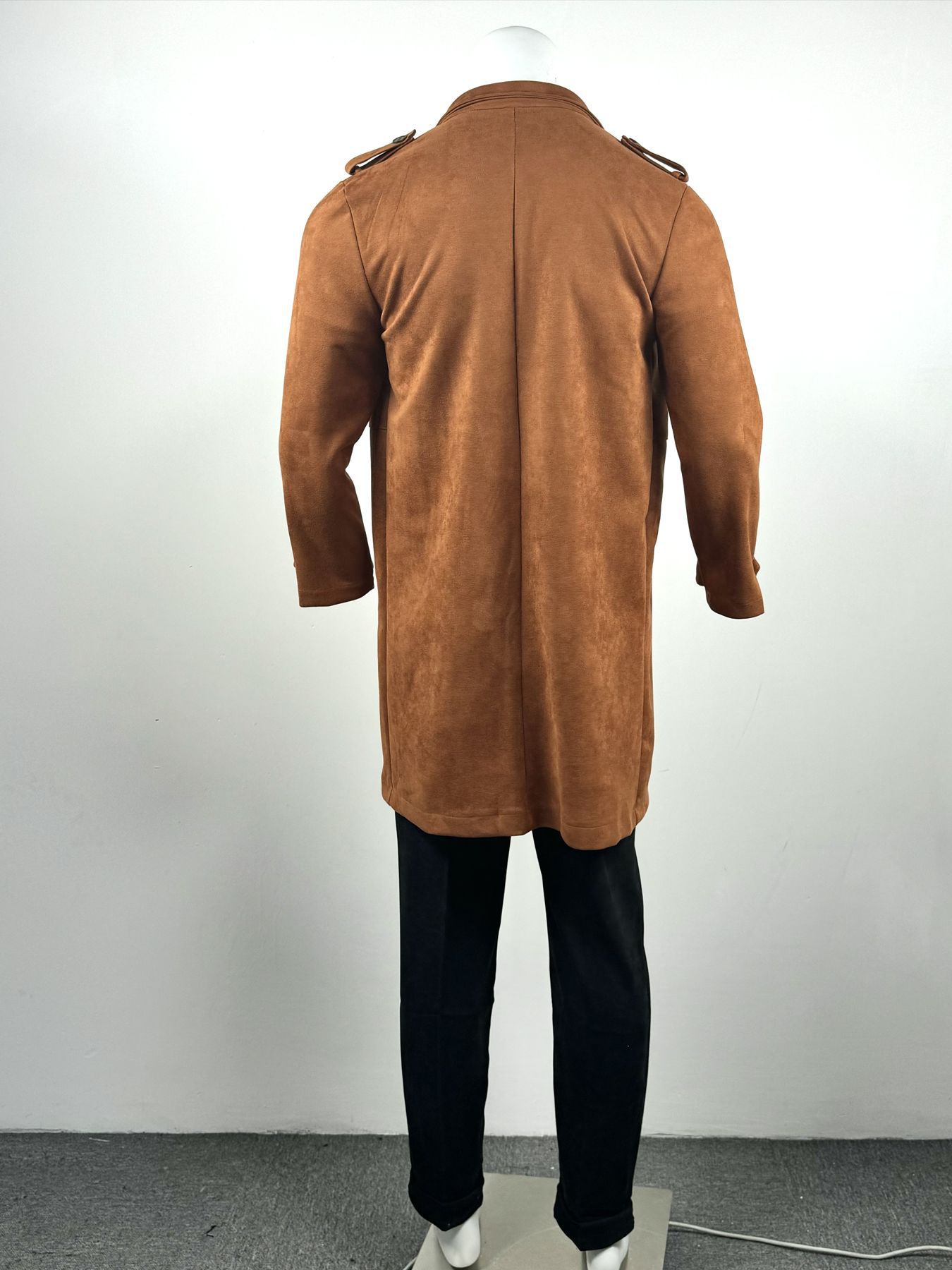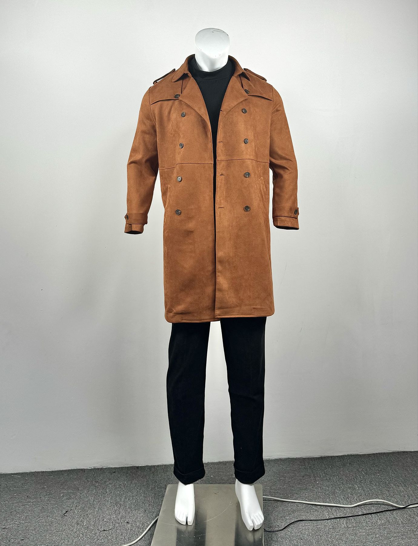국경 간 2025 가을, 겨울 새로운 미국 복고풍 스웨이드 코트 남성 중간 길이 옷깃 윈드 브레이커 더블 브레스트 코트