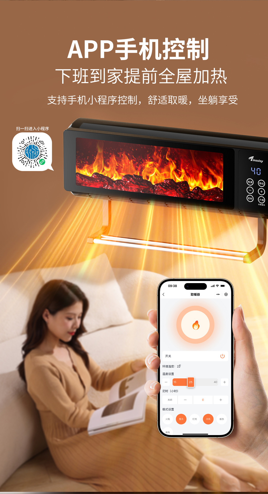 제조 업체 전용 그래 핀 음성 APP 시뮬레이션 화염 히터 가정용 욕실 빠른 난방 전기 히터 히터 팬 히터