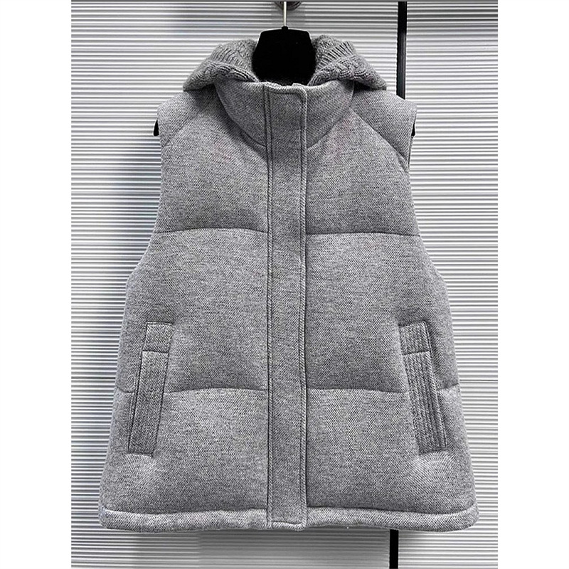 24803 가을과 겨울 패션 독특한 디자인 센스 한국 스타일 세련된 회색 후드 코튼 조끼 재킷 여성 코트