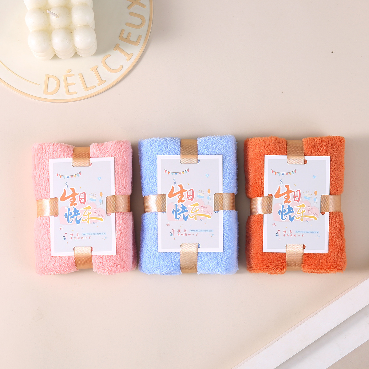 • 오렌지 레드 생일 축하 수건 50개부터 무료 배송