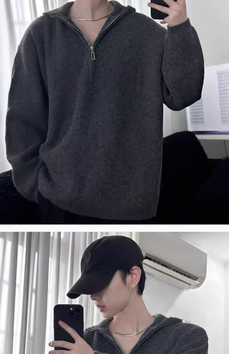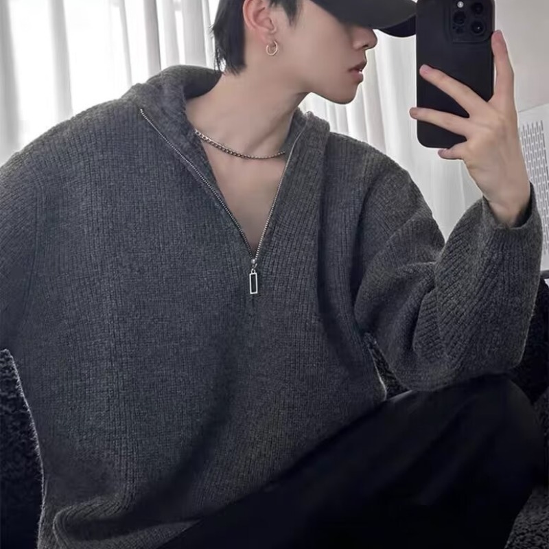 2024 새로운 풀오버 니트 크루 넥 올 매치 남자 가을 겨울 유행 오버 사이즈 게으른 스타일 고급 스웨터