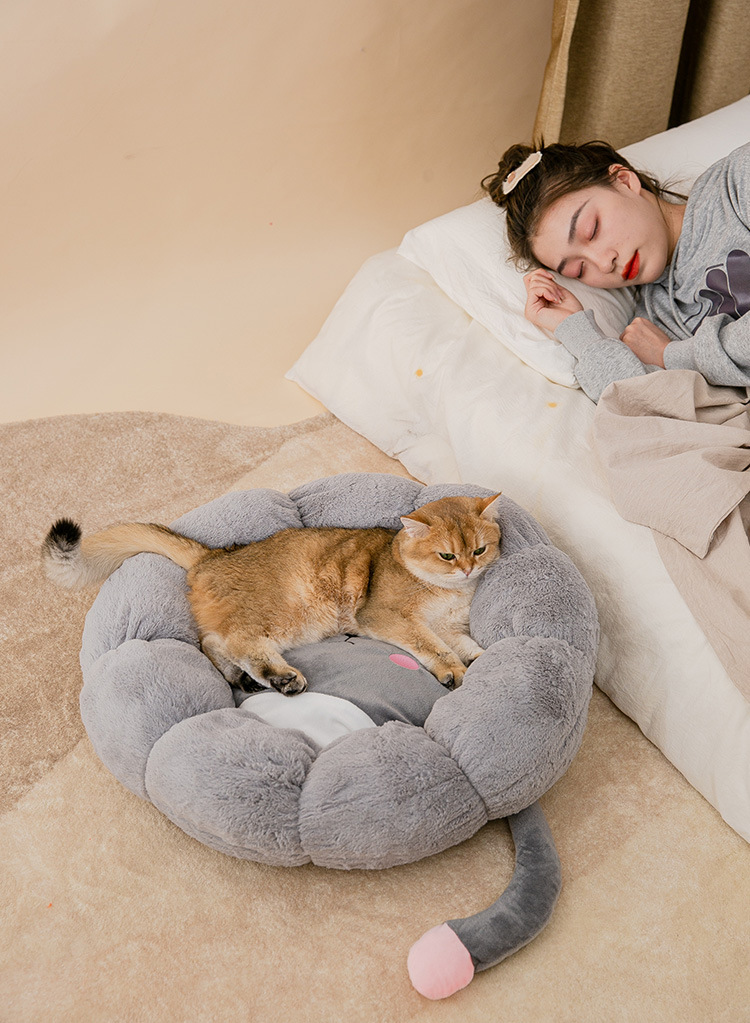 가을과 겨울 따뜻한 두꺼운 꽃잎 모양의 고양이 둥지 미디어와 작은 개 테디 사육장 해바라기 애완 동물 둥지 패드