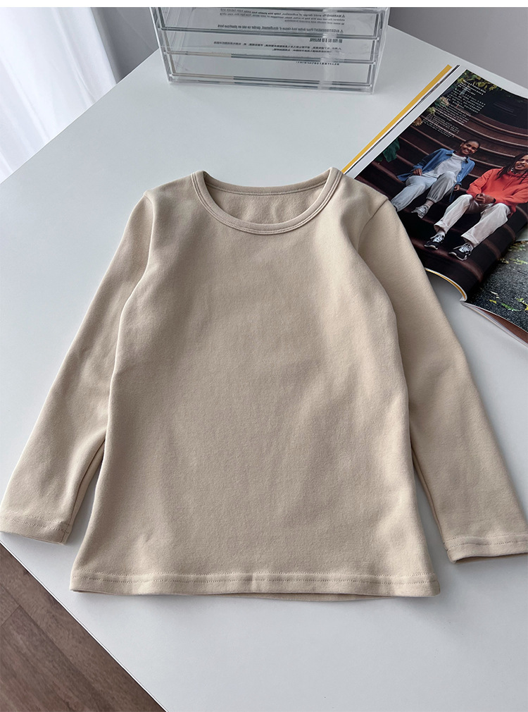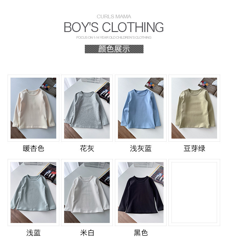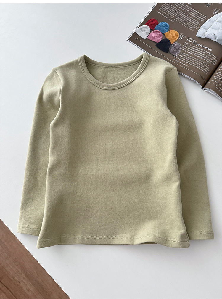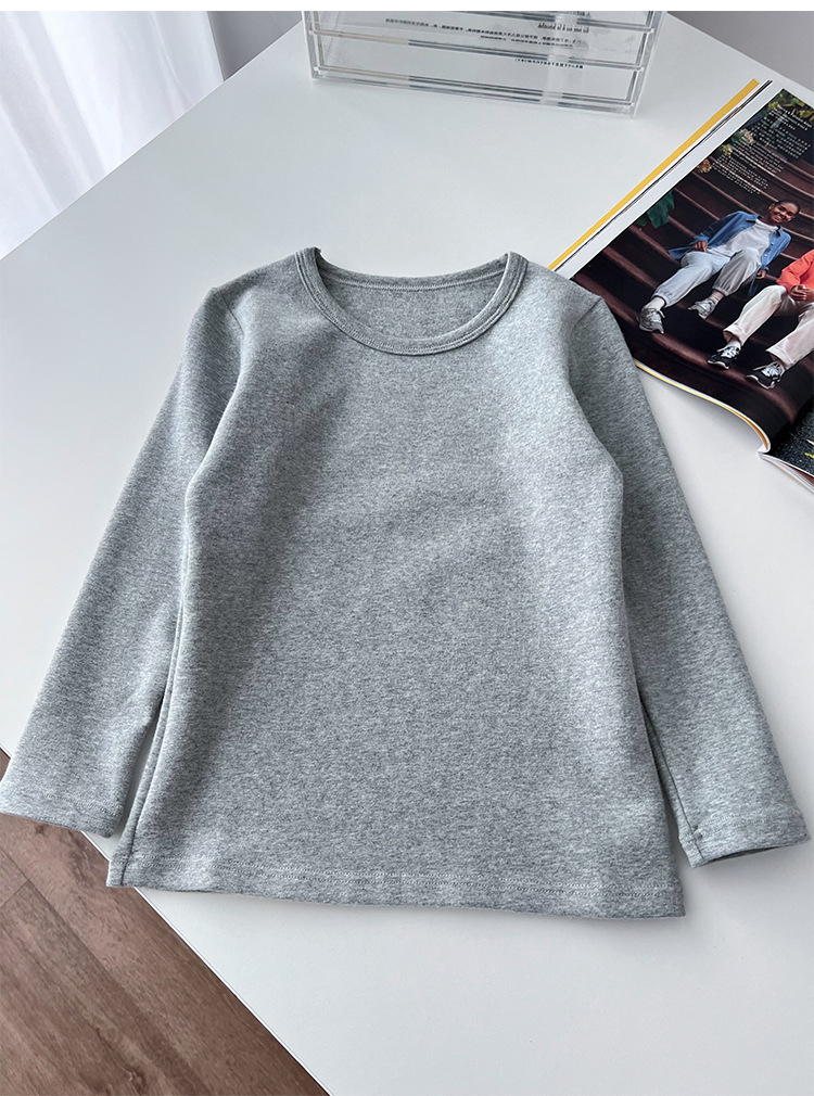 클래스 A 일본 소년 샌딩 크루 넥 긴 소매 바닥 셔츠 ~ 어린이 순수한면 기본 단색 티셔츠 따뜻한 재킷스토어 가기