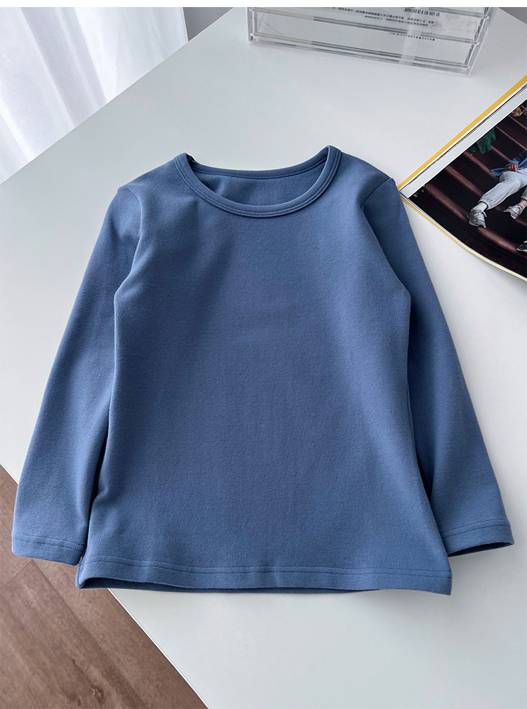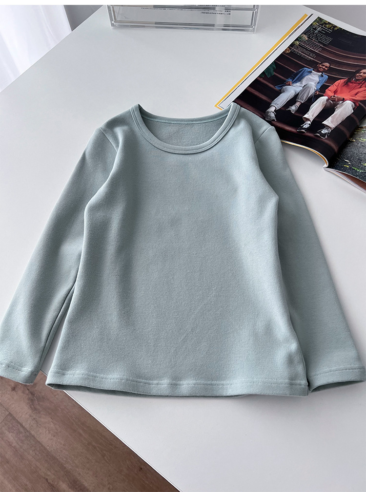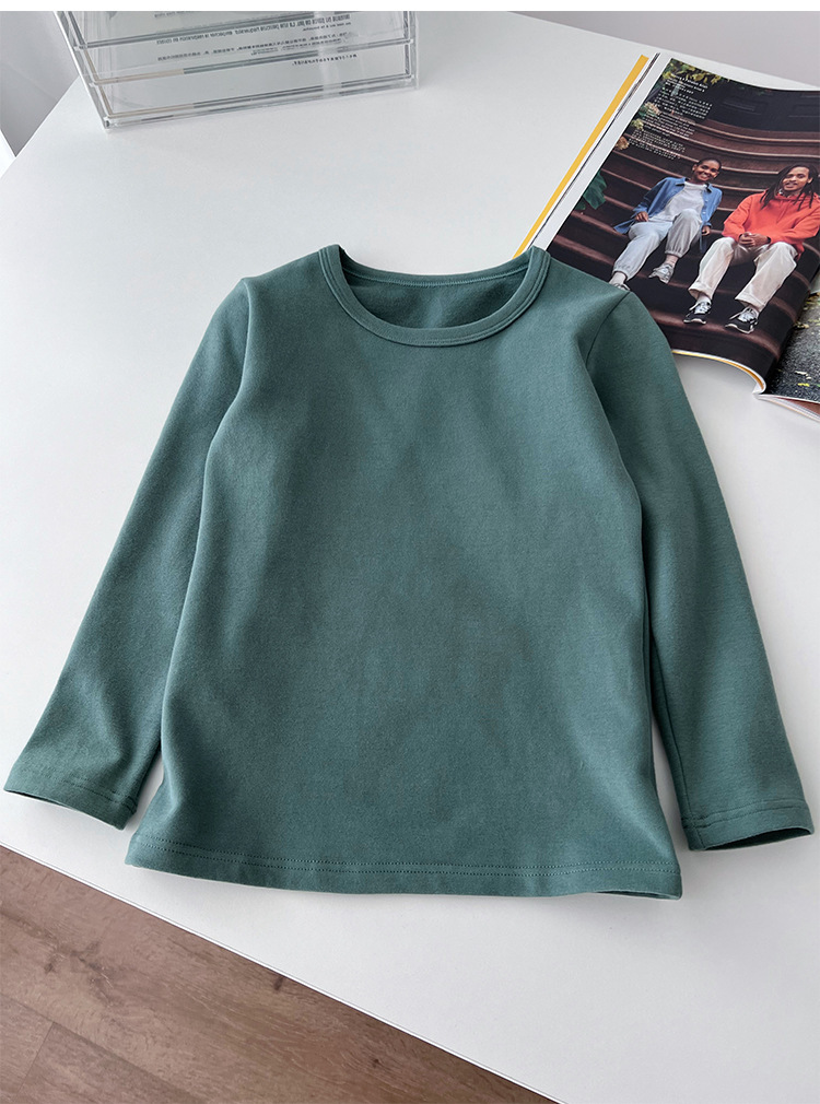 클래스 A 일본 소년 샌딩 크루 넥 긴 소매 바닥 셔츠 ~ 어린이 순수한면 기본 단색 티셔츠 따뜻한 재킷