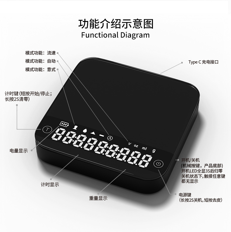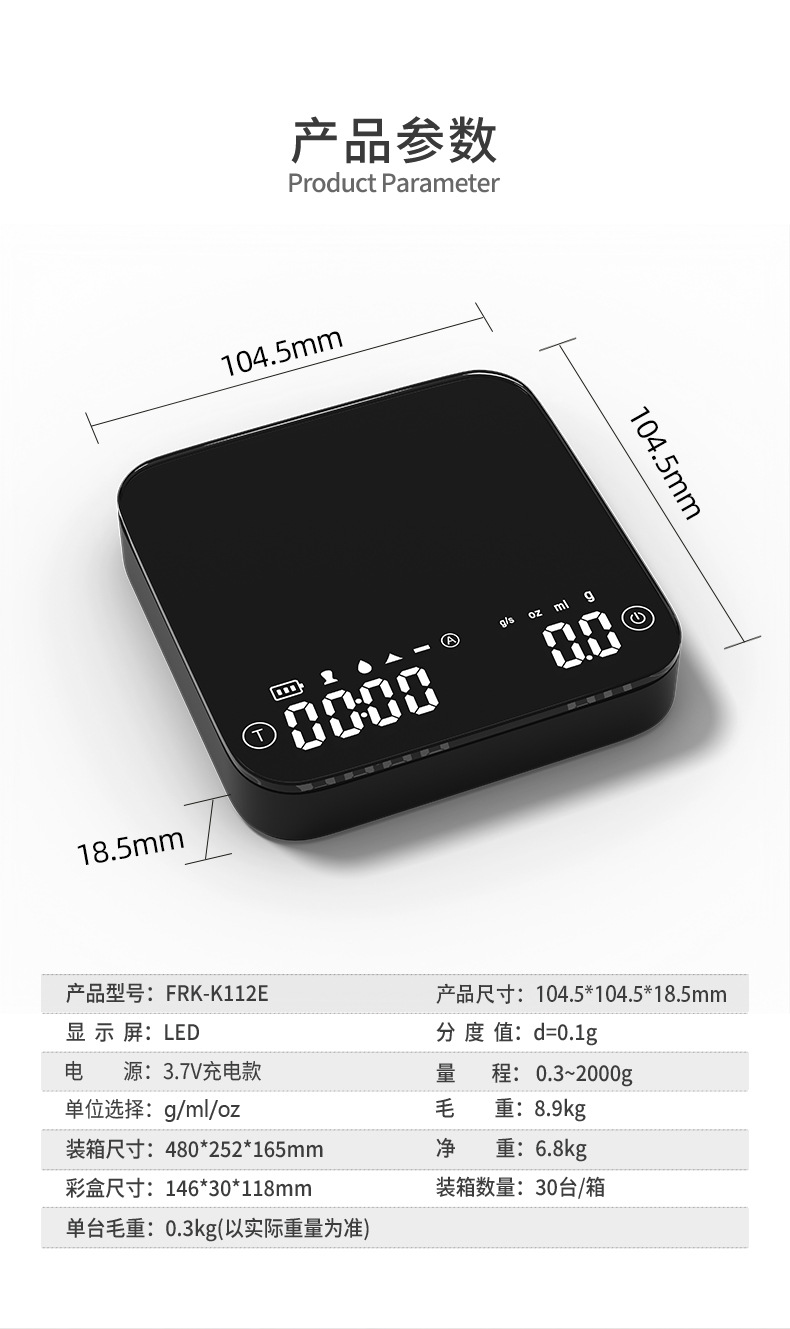 FRK 신형 미니 커피 저울 USB 유량 측정 핸드드립 커피 전자 저울 이탈리아 커피 전용 저울