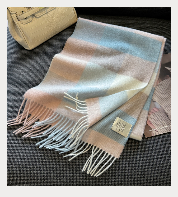 2024 새로운 100 순수 울 가을과 겨울 유니섹스 체크 무늬 스카프 클래식 양모 두꺼운 따뜻한 목스토어 가기
