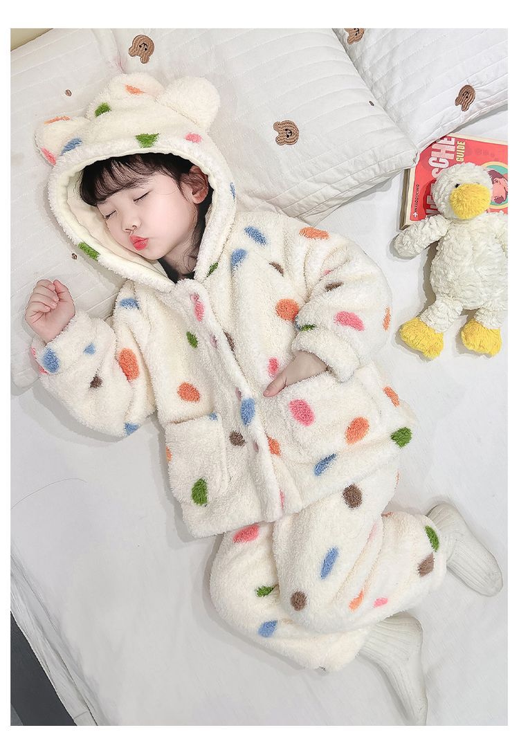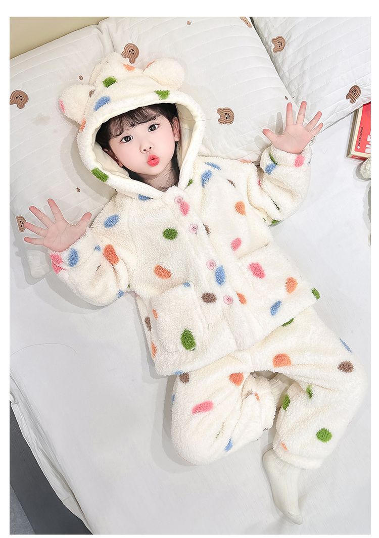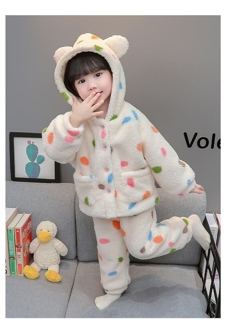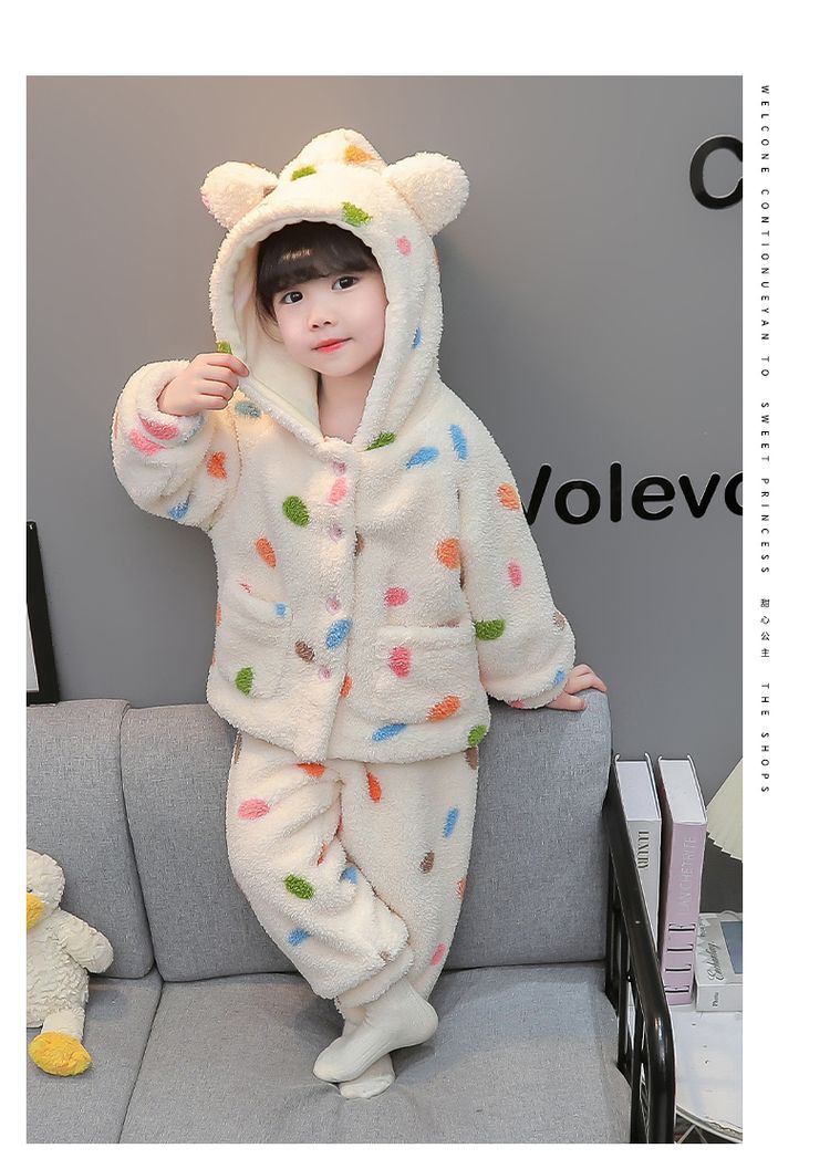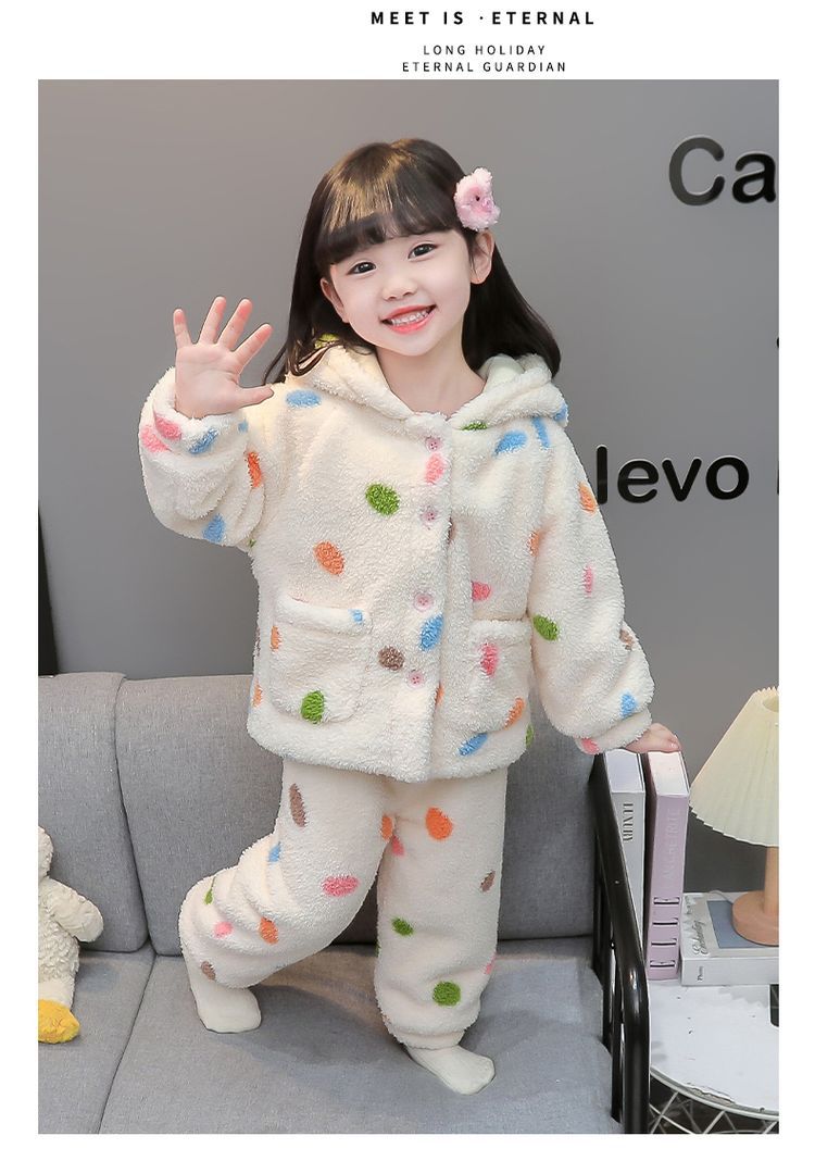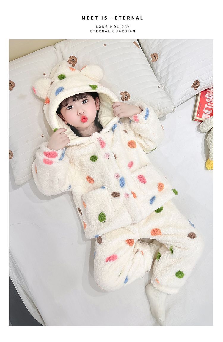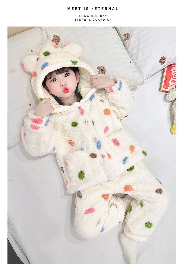 여자 벨벳 잠옷 가을과 겨울 따뜻한 아기 소녀 더블 레이어 세트 겨울 어린이 플란넬 홈 옷