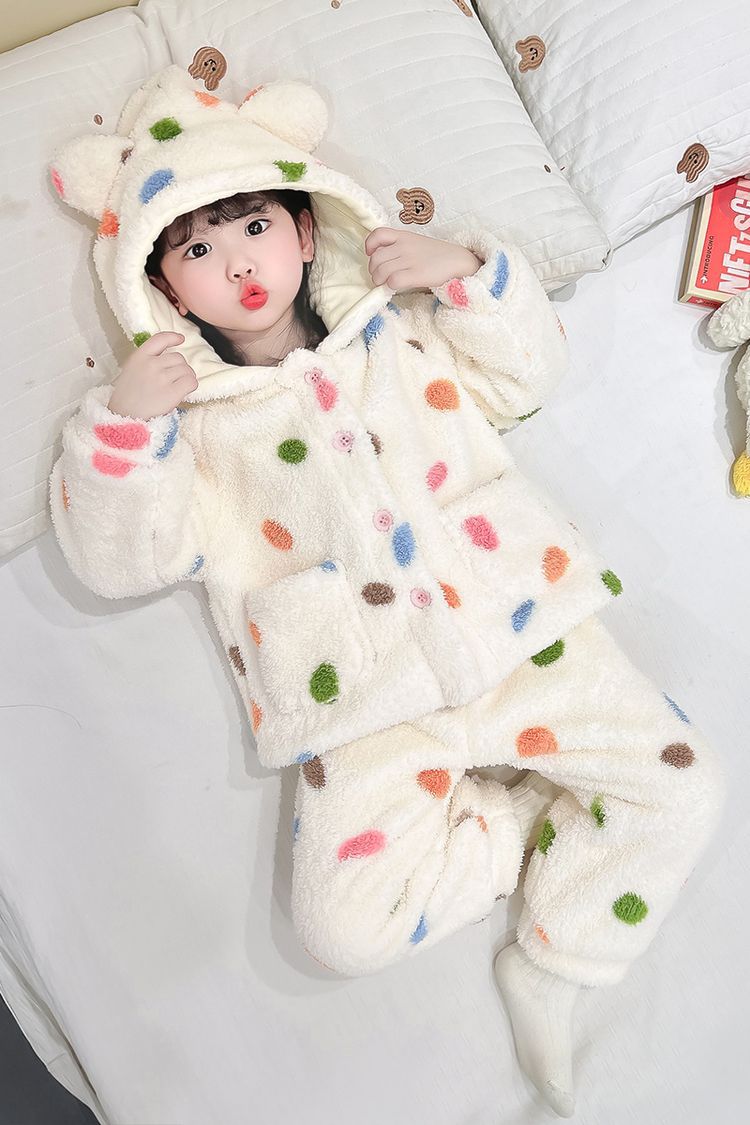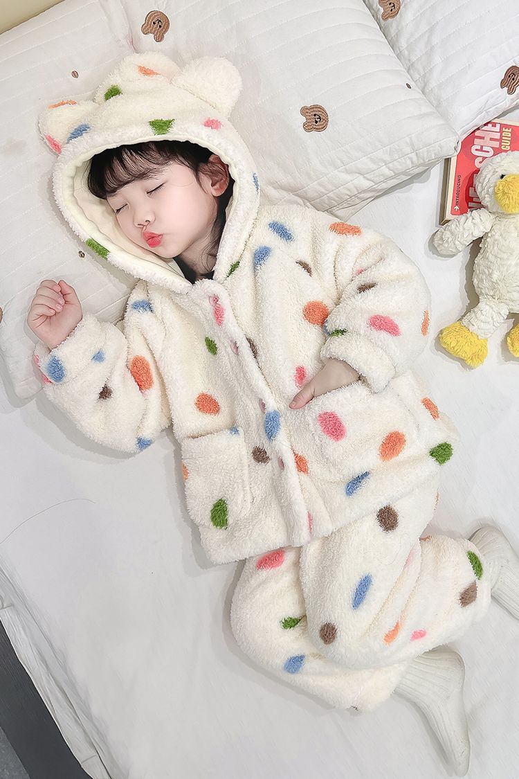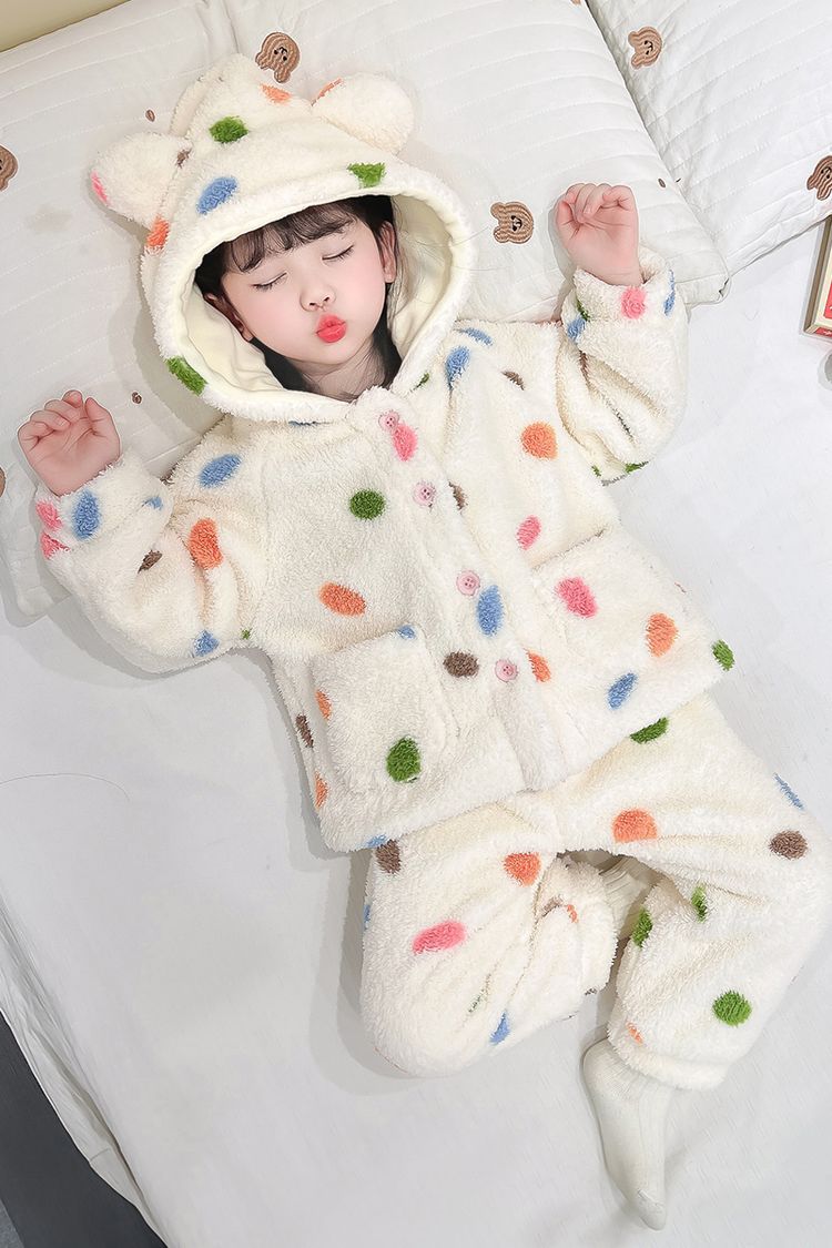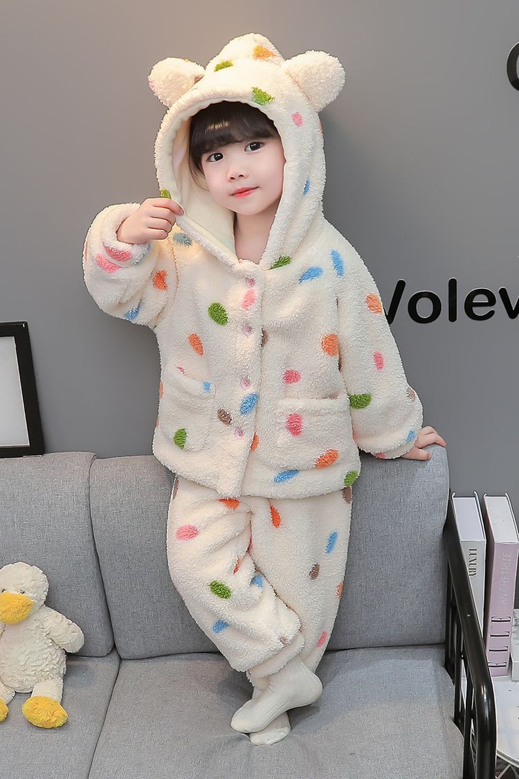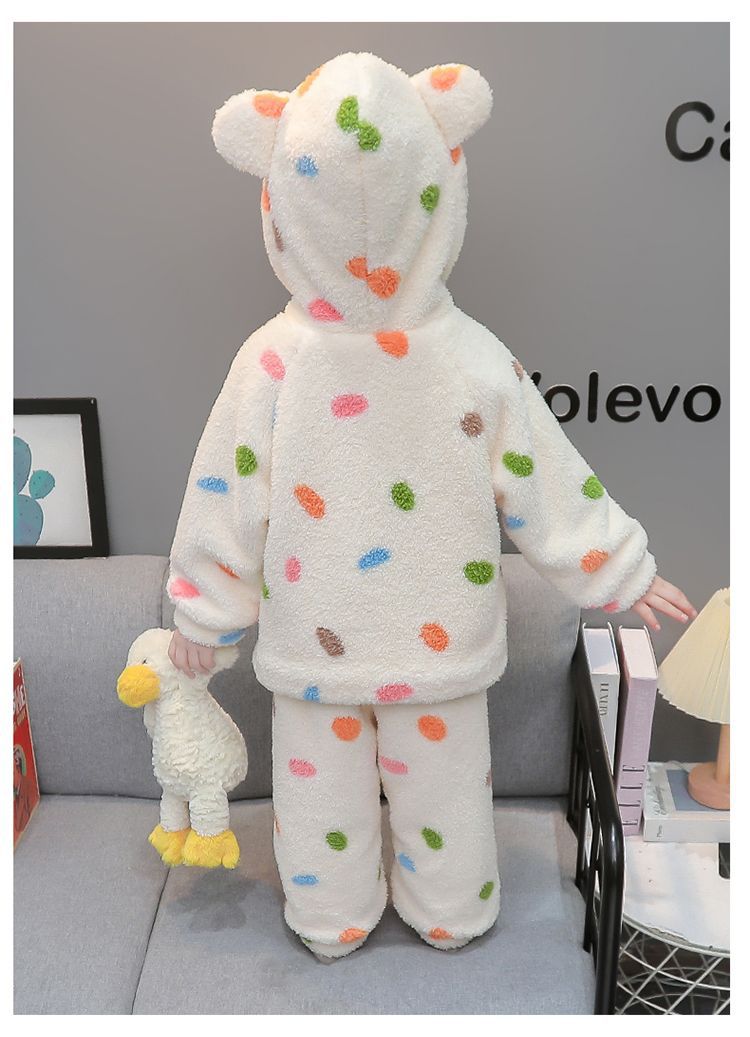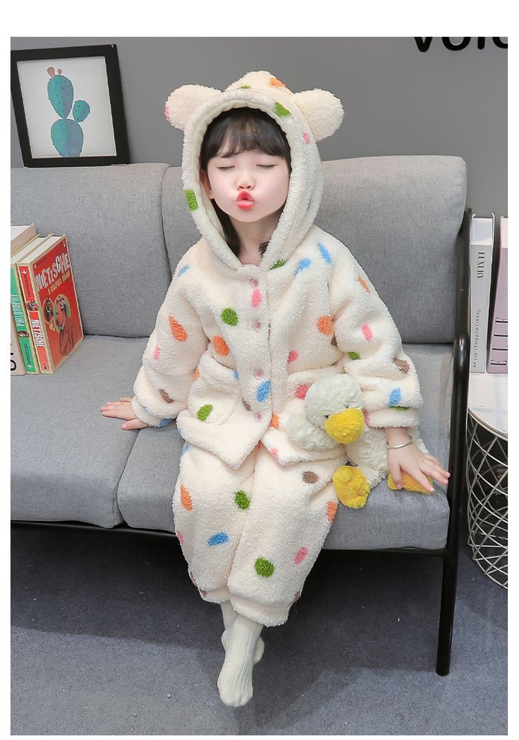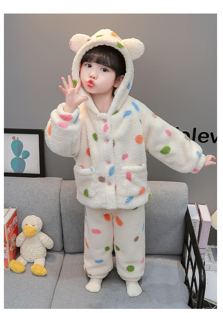 여자 벨벳 잠옷 가을과 겨울 따뜻한 아기 소녀 더블 레이어 세트 겨울 어린이 플란넬 홈 옷