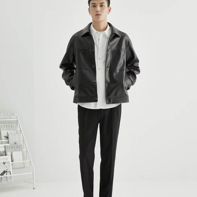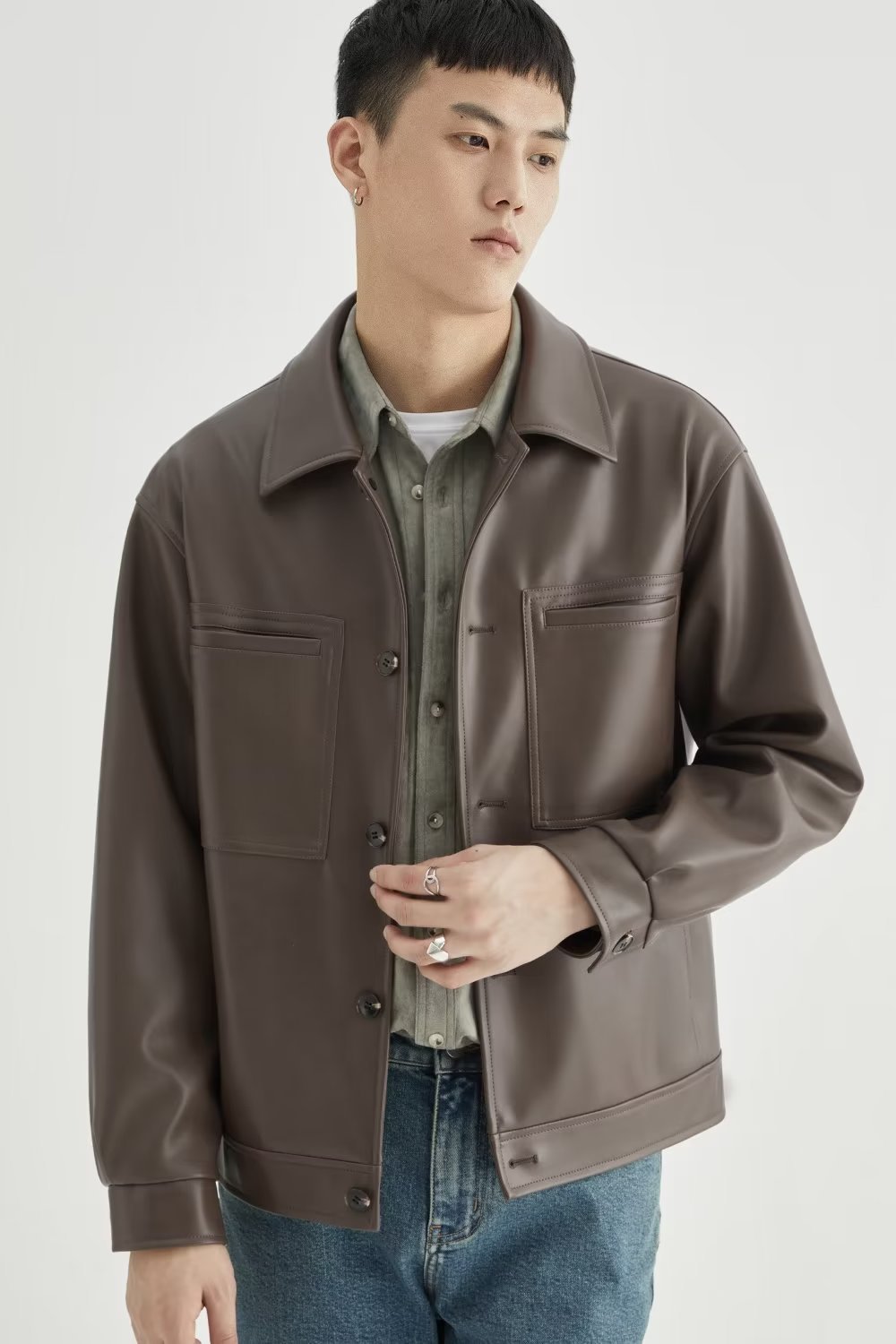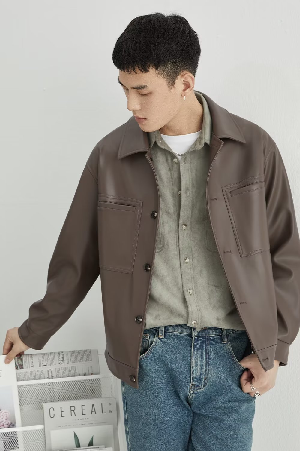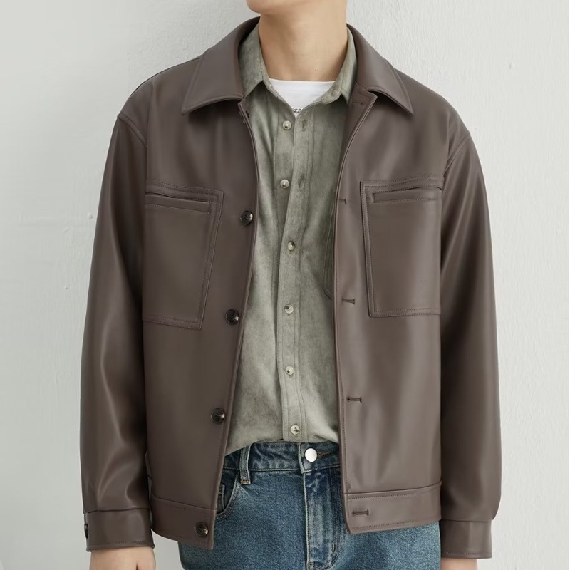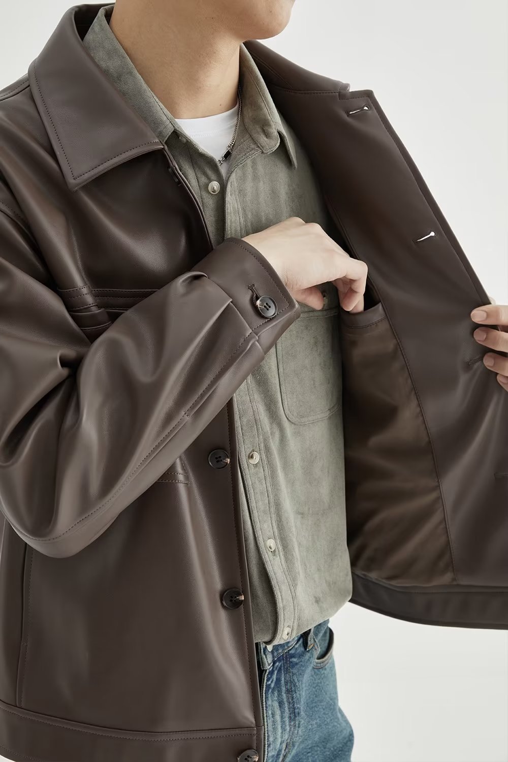 2024 국경 봄과 가을 캐주얼 레트로 가을 모조 양가죽 PU 가죽 남성용 짧은 오토바이 가죽 자켓스토어 가기