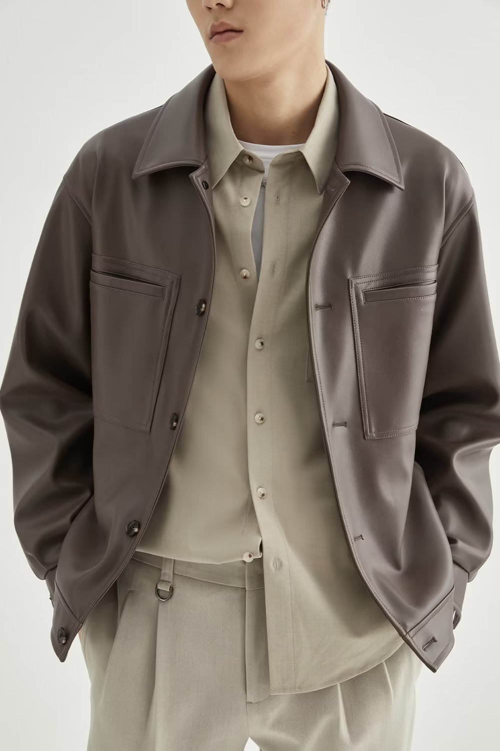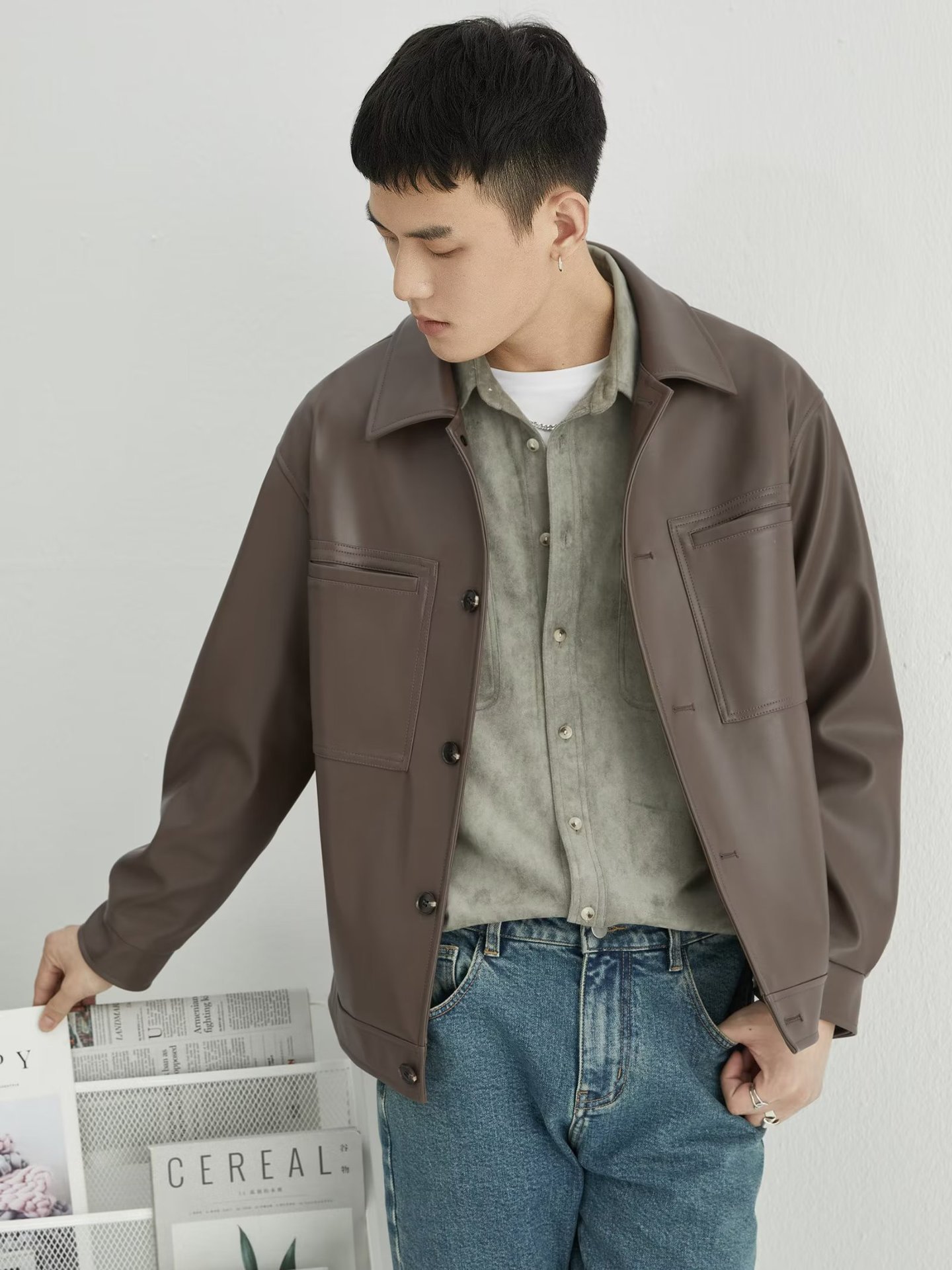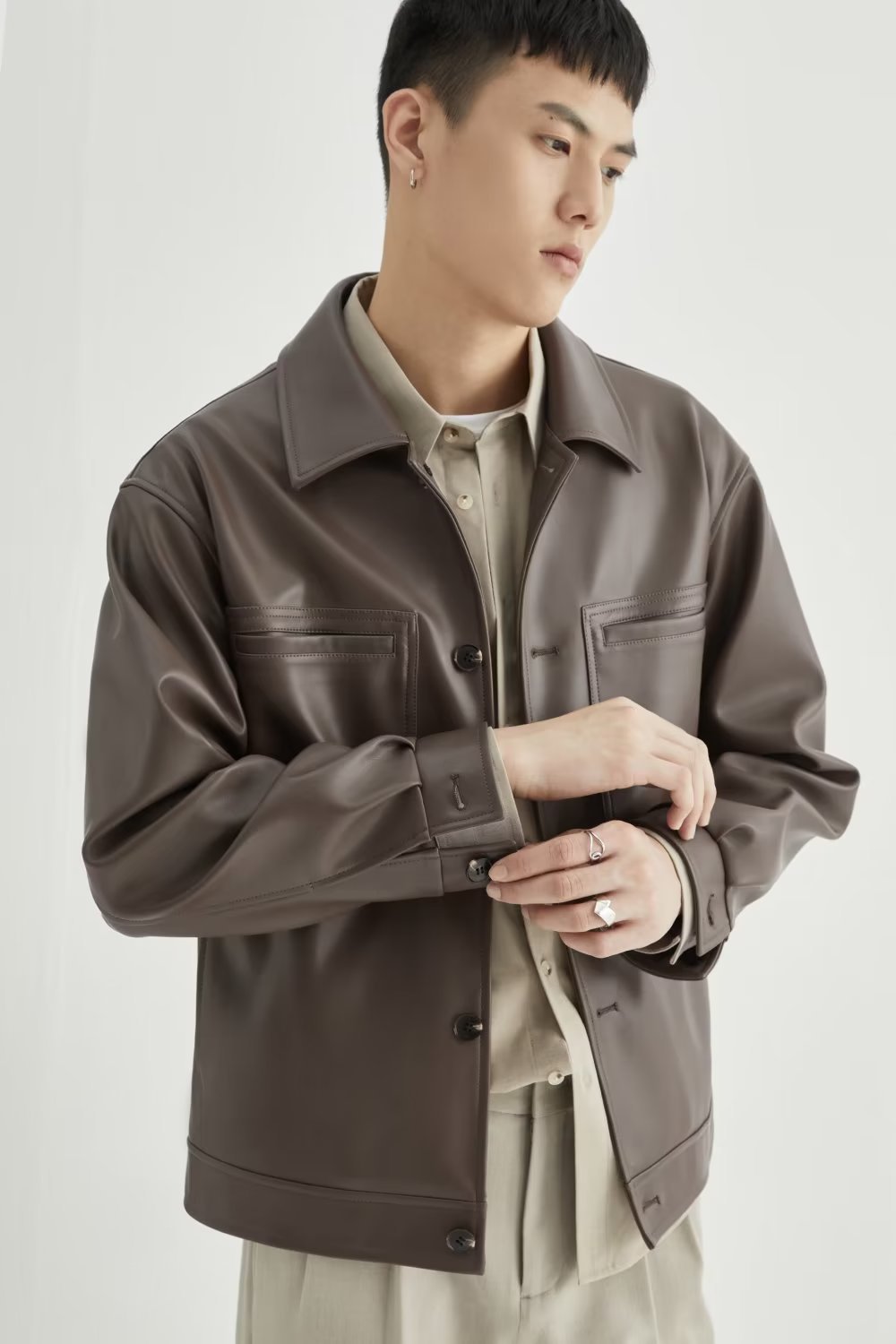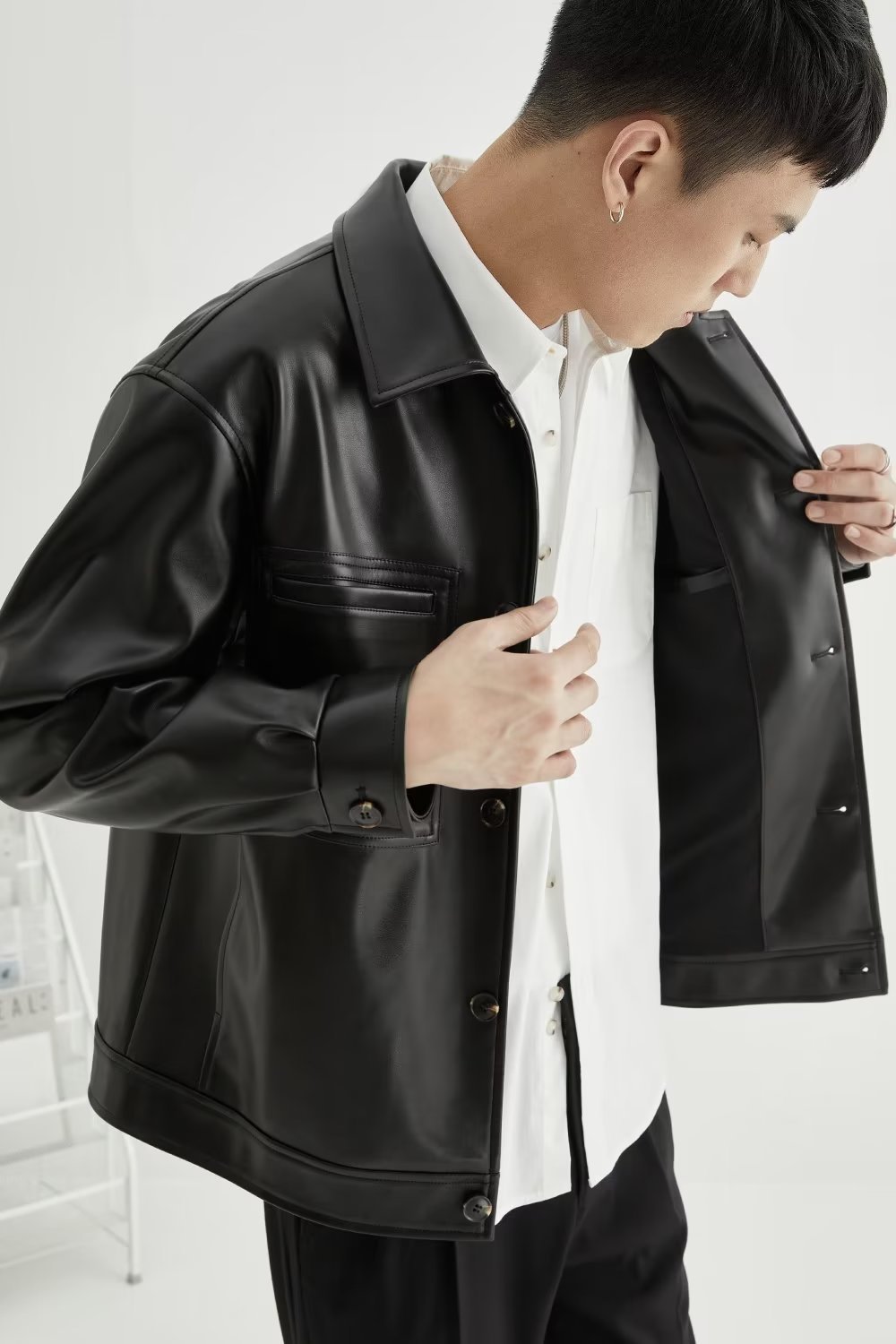 2024 국경 봄과 가을 캐주얼 레트로 가을 모조 양가죽 PU 가죽 남성용 짧은 오토바이 가죽 자켓스토어 가기