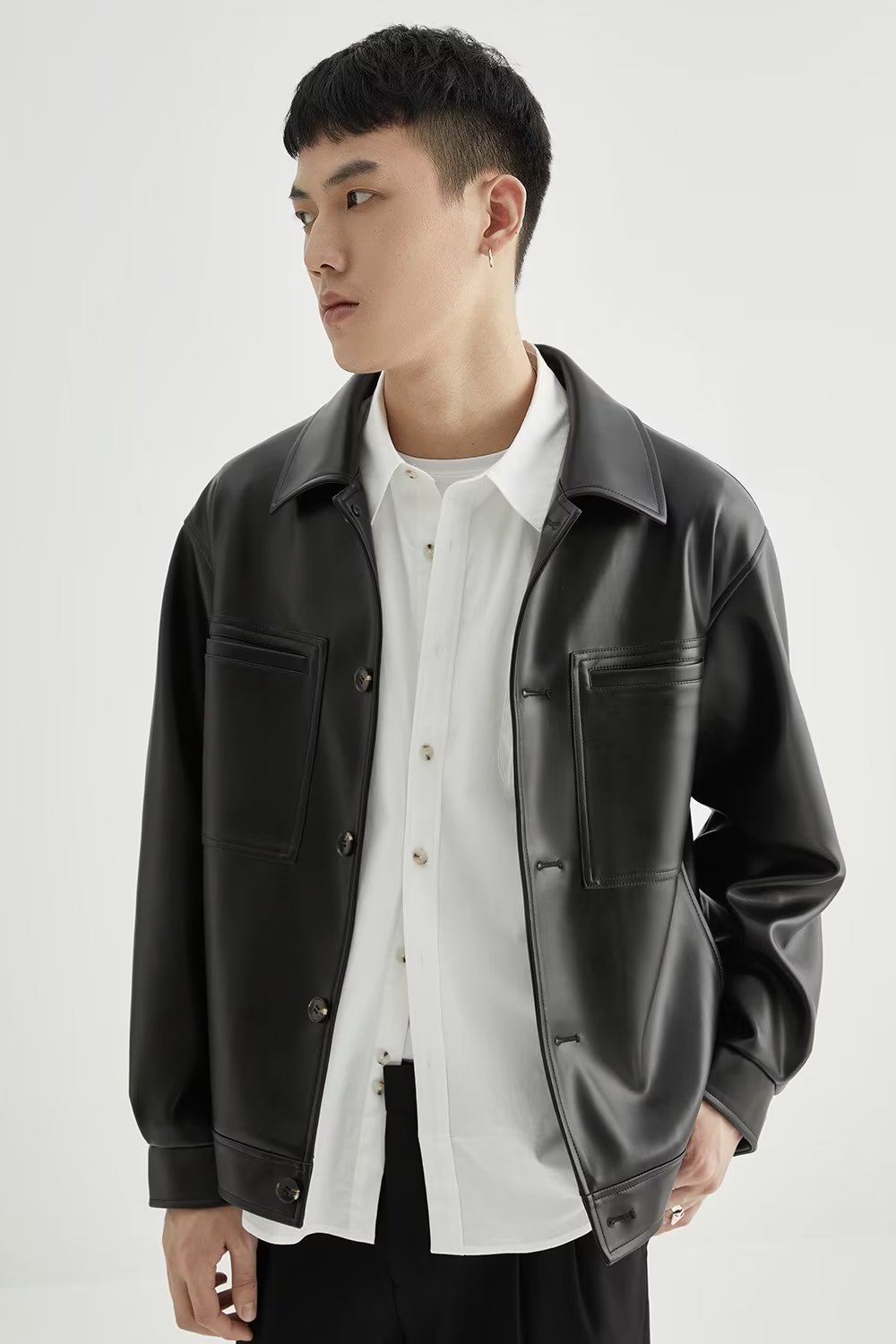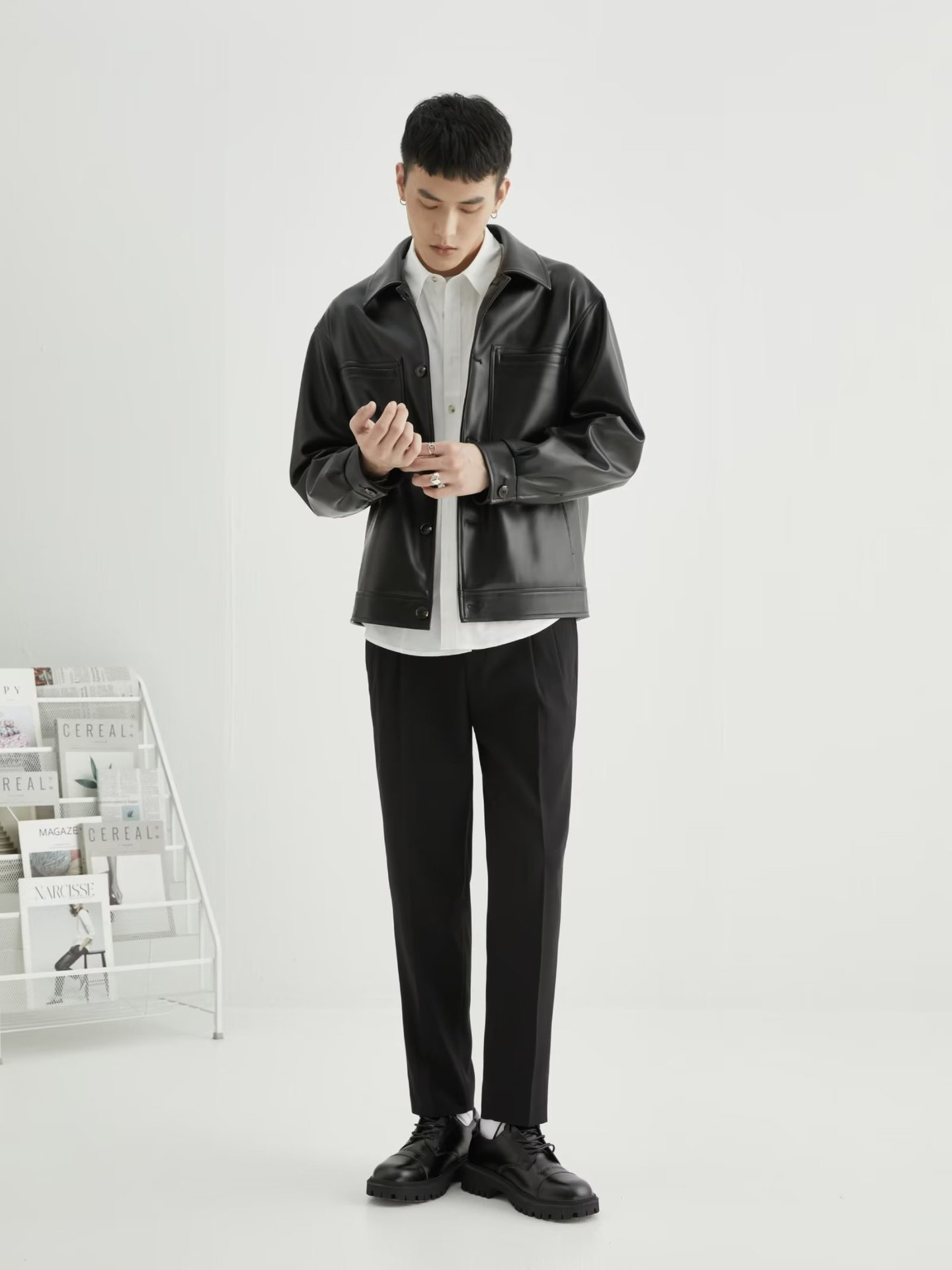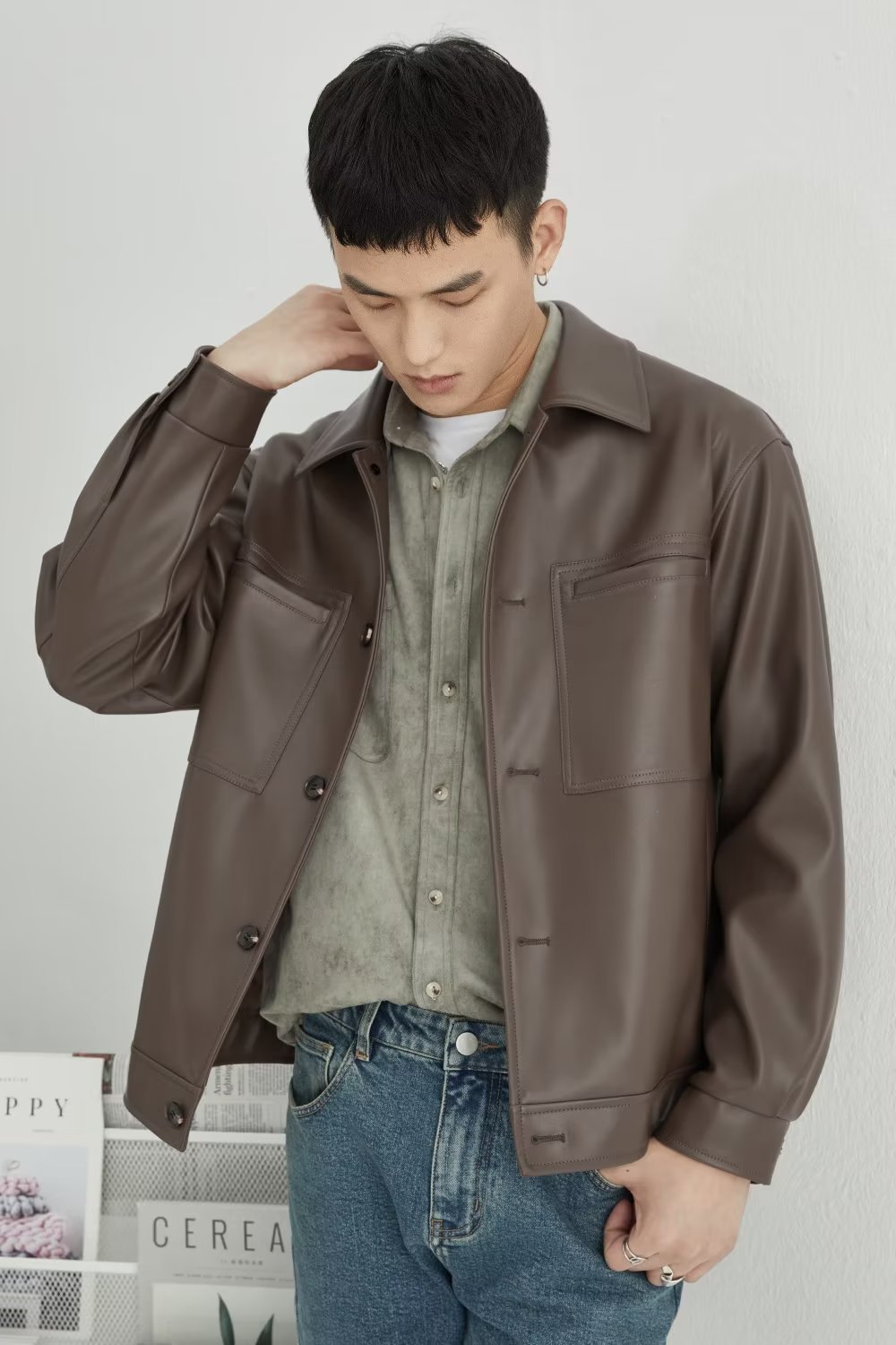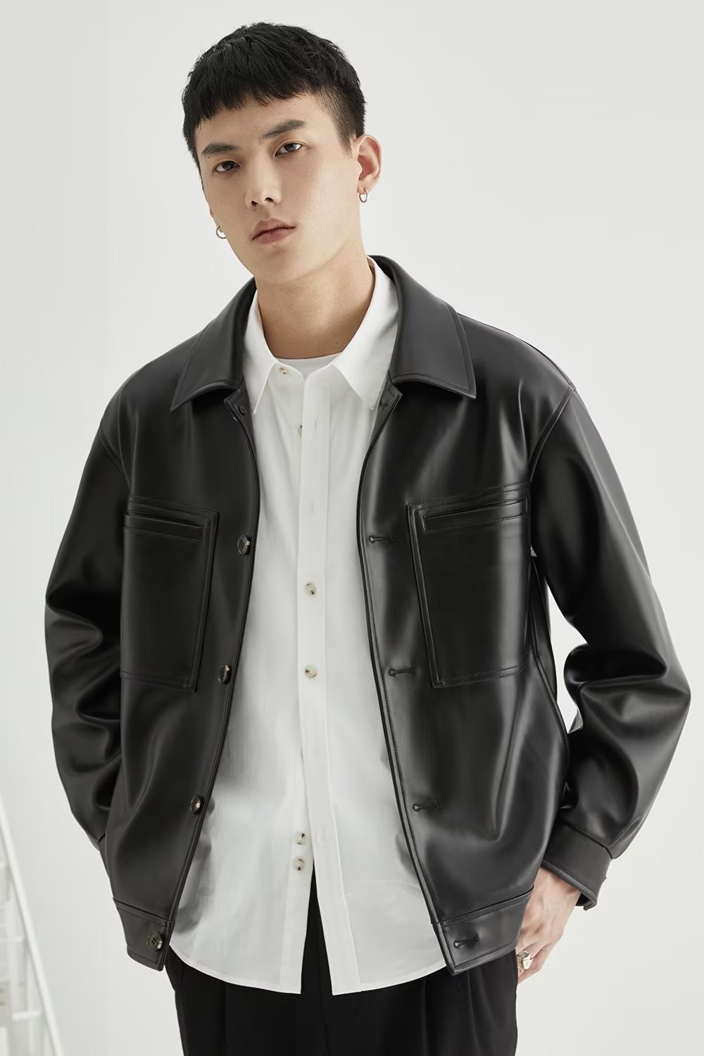 2024 국경 봄과 가을 캐주얼 레트로 가을 모조 양가죽 PU 가죽 남성용 짧은 오토바이 가죽 자켓스토어 가기