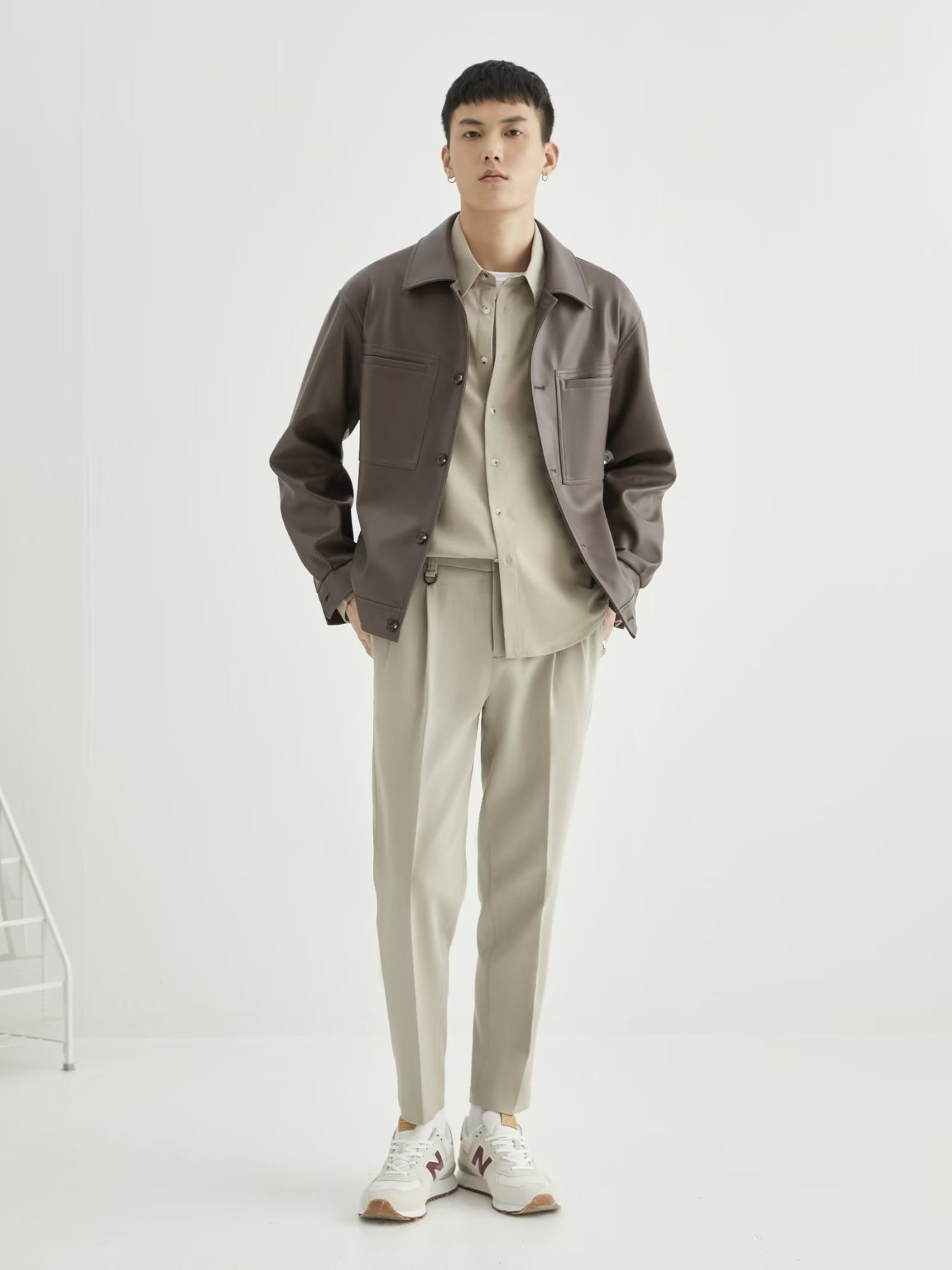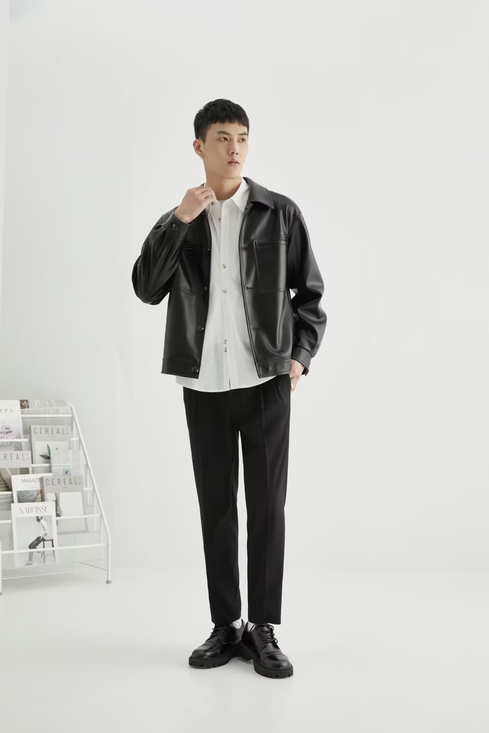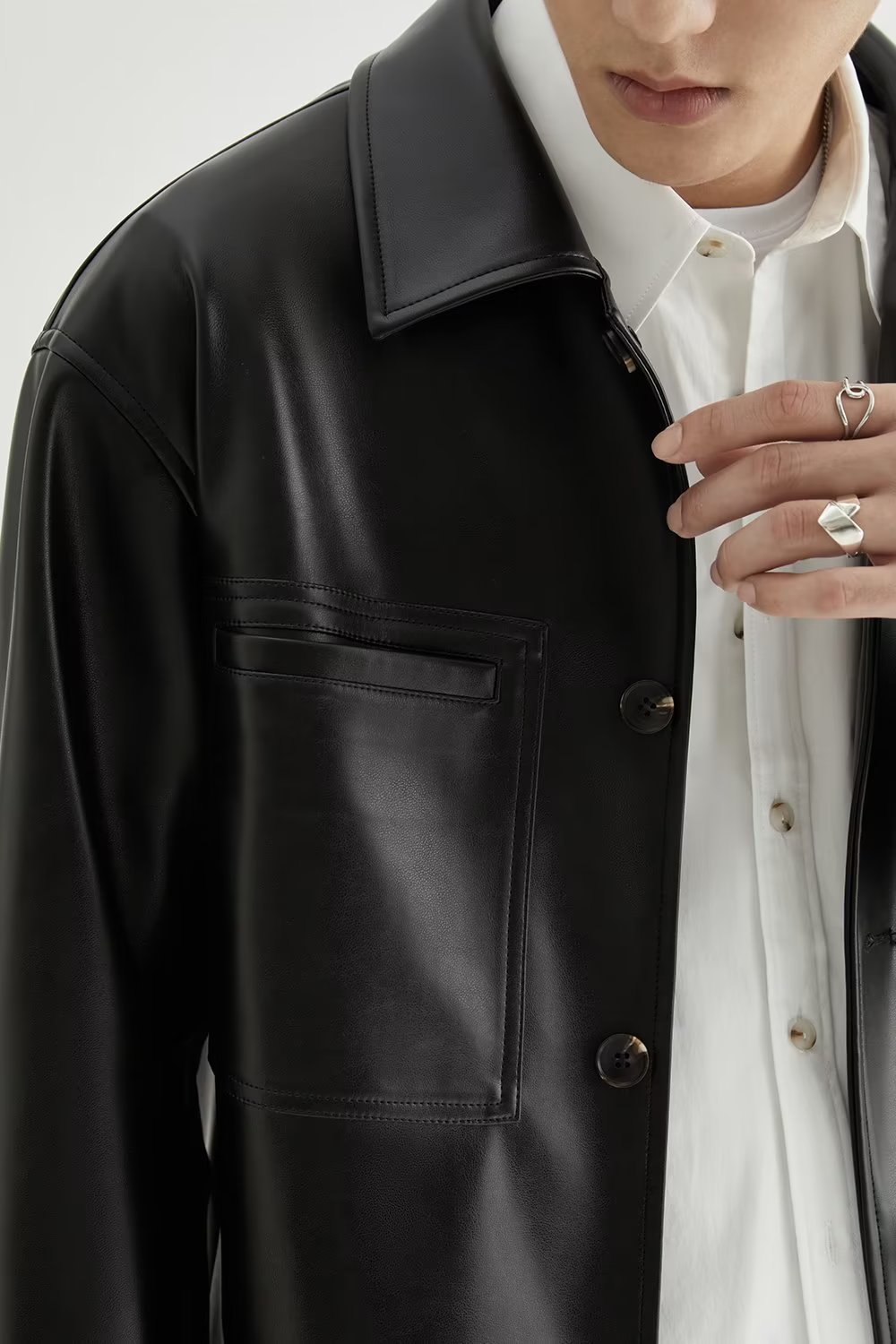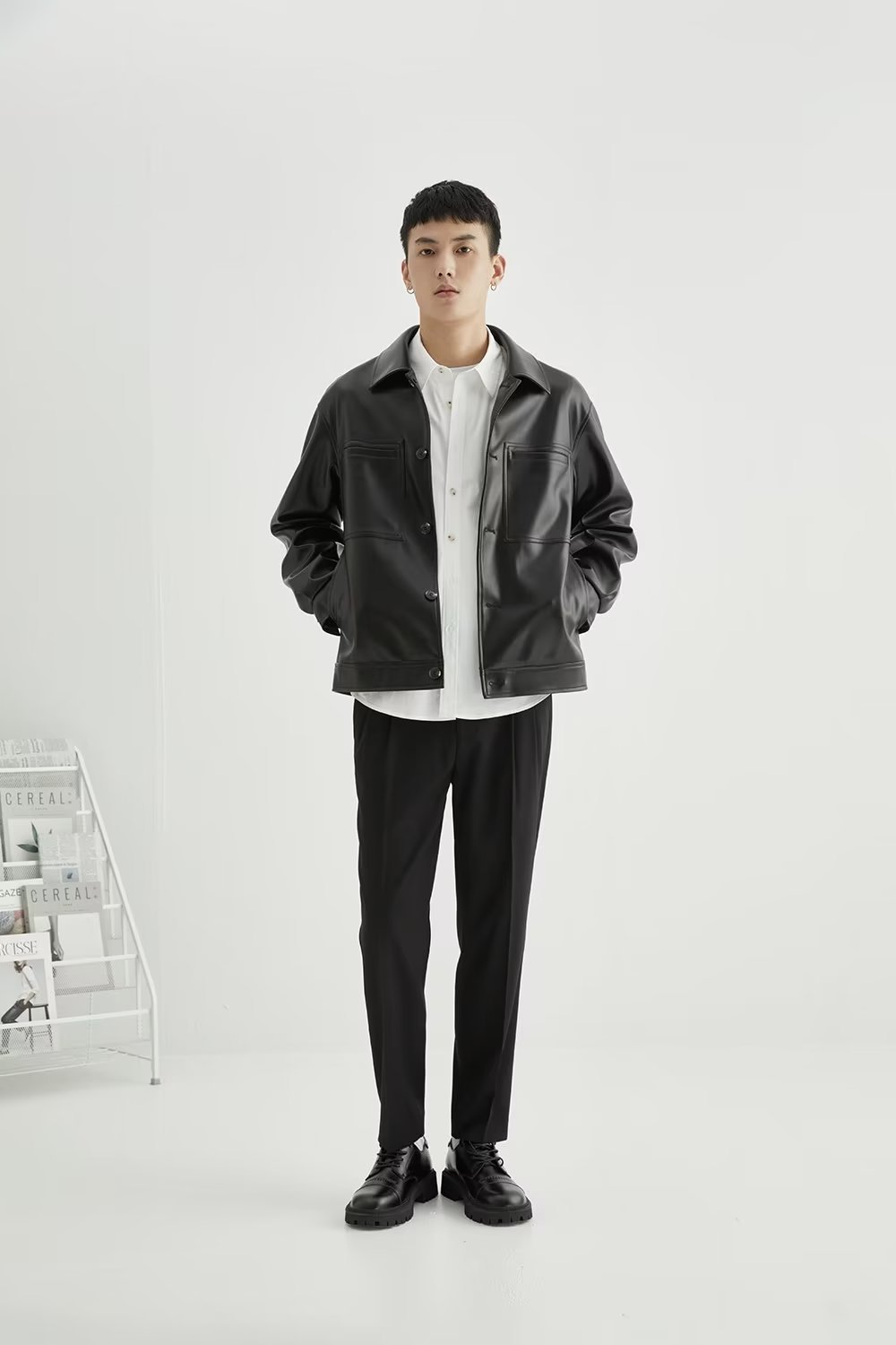 2024 국경 봄과 가을 캐주얼 레트로 가을 모조 양가죽 PU 가죽 남성용 짧은 오토바이 가죽 자켓스토어 가기