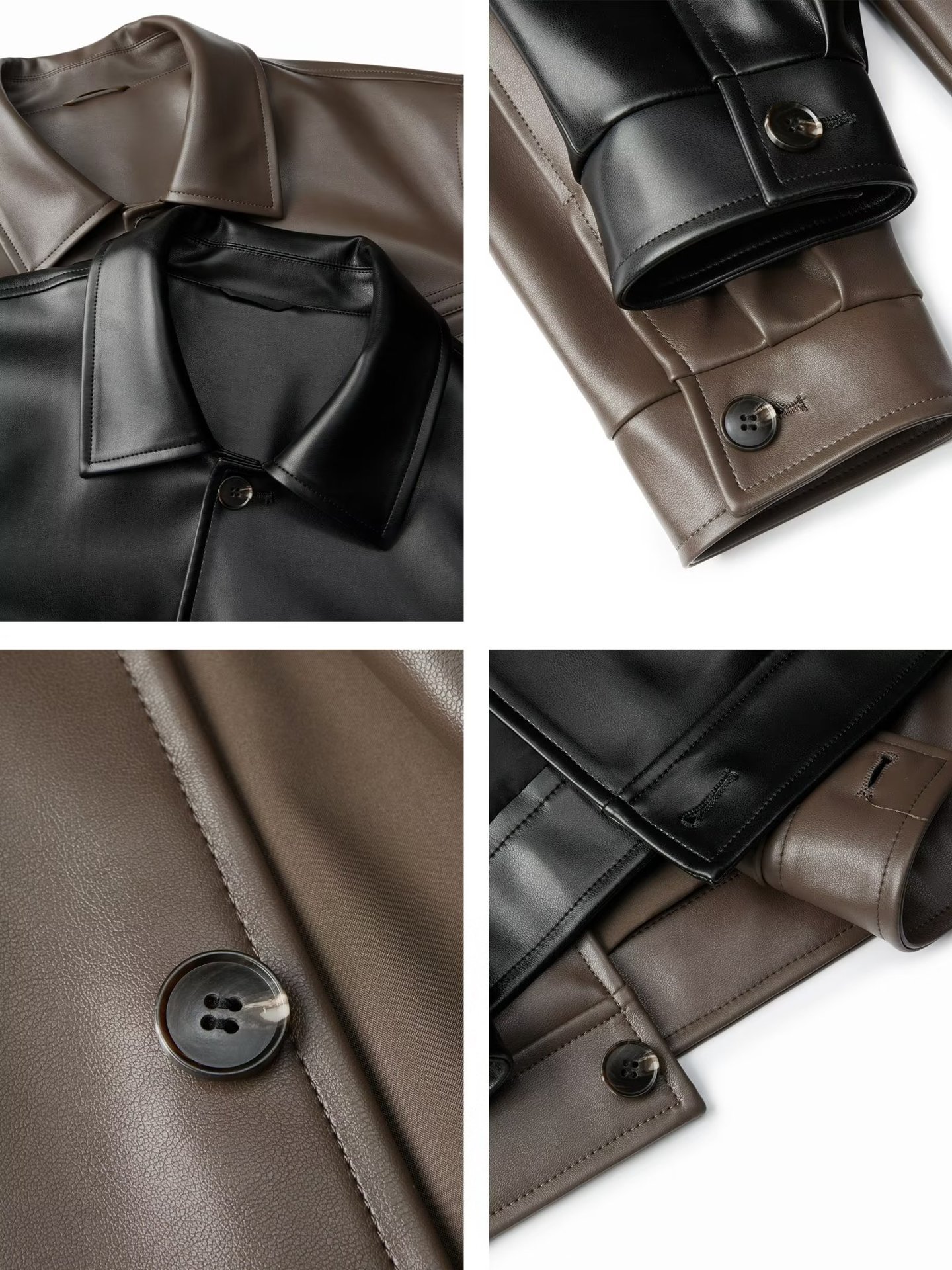 2024 국경 봄과 가을 캐주얼 레트로 가을 모조 양가죽 PU 가죽 남성용 짧은 오토바이 가죽 자켓