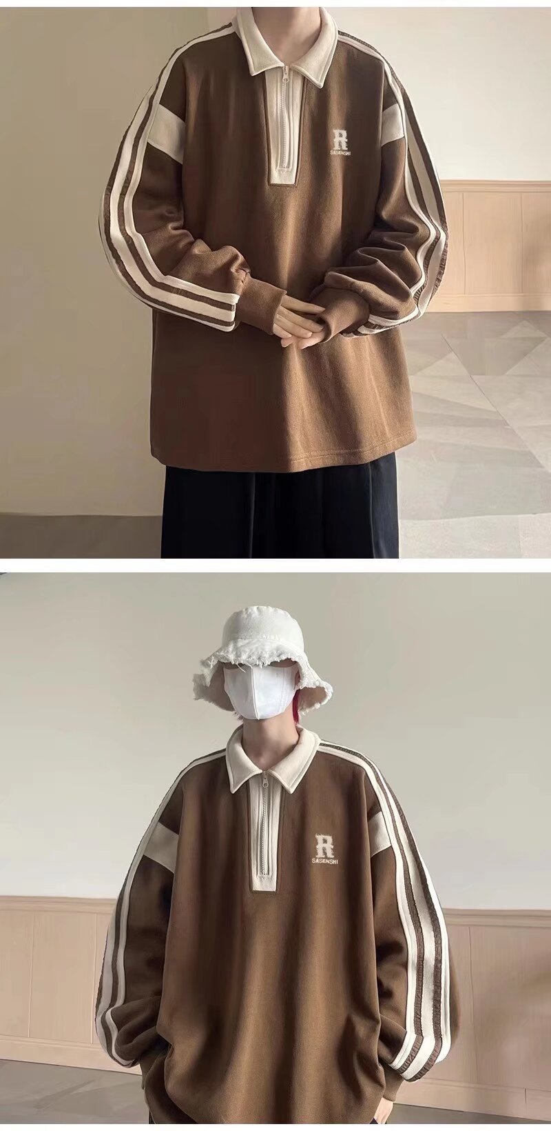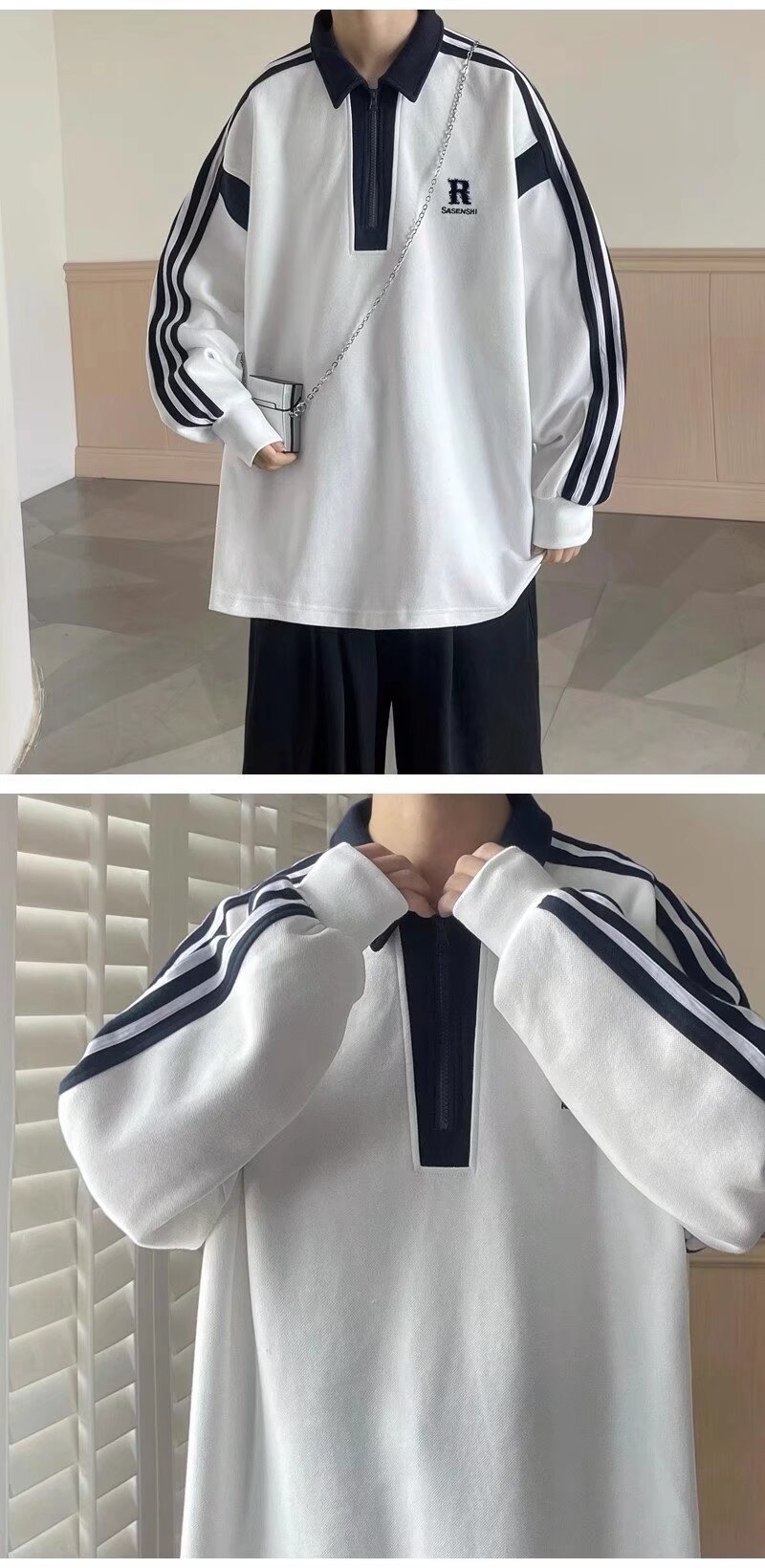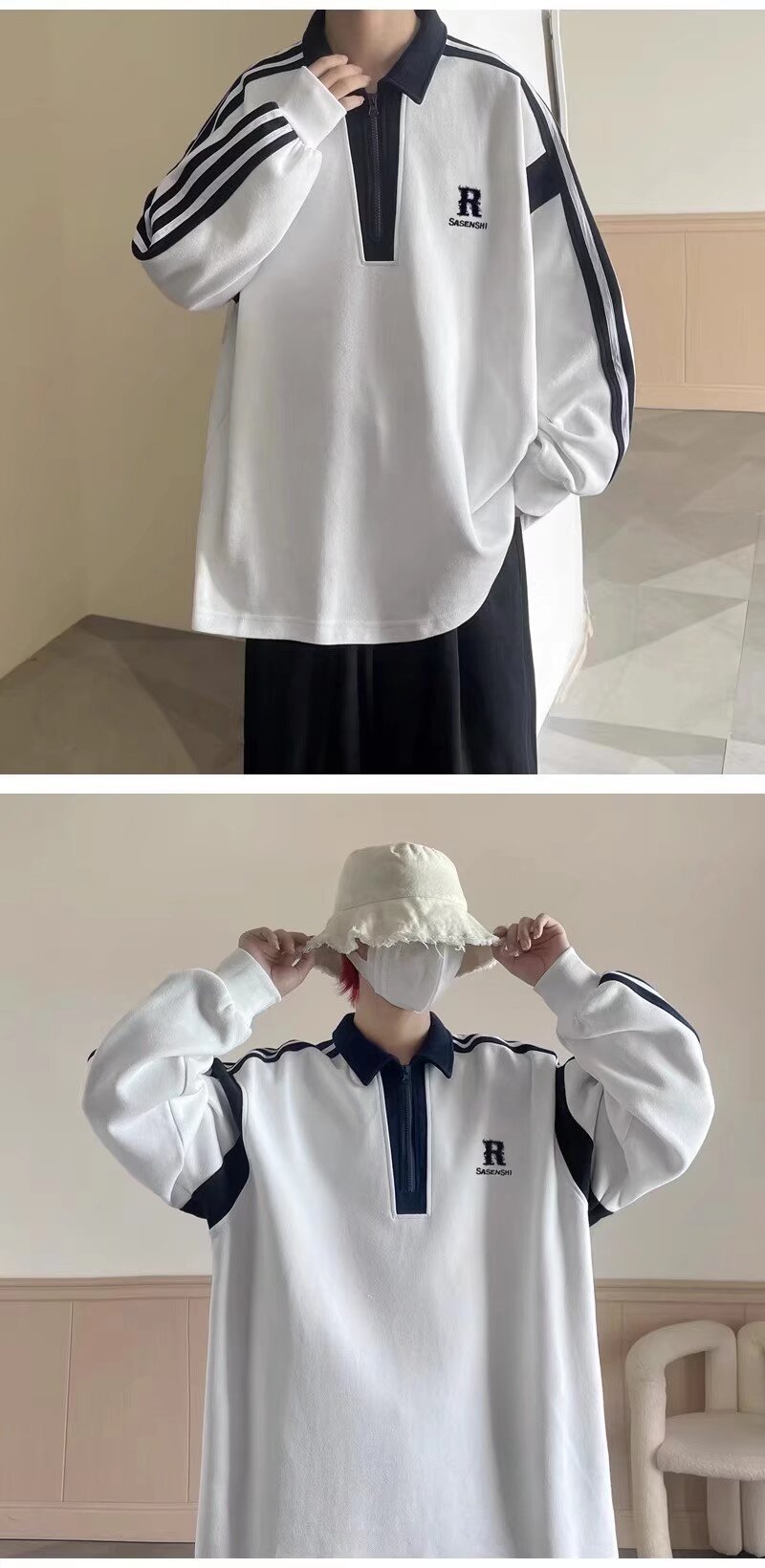 국경 반 지퍼 옷깃 폴로 셔츠 남자 긴팔 가을 미국 스타일 복고풍 대학 스타일 트렌디 한 브랜드 느슨한 캐주얼 스웨터스토어 가기