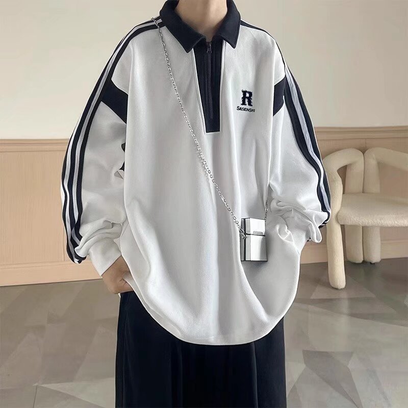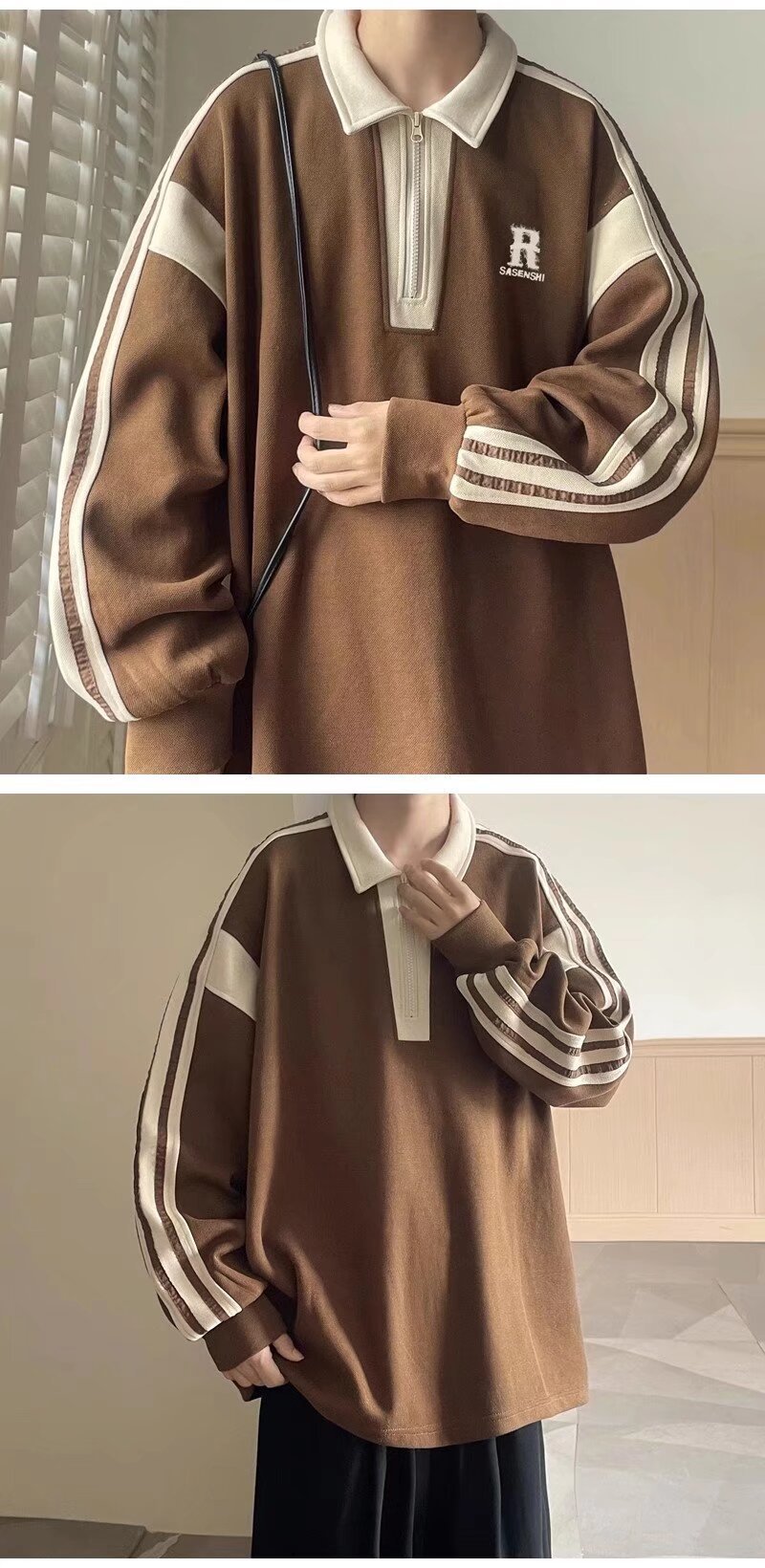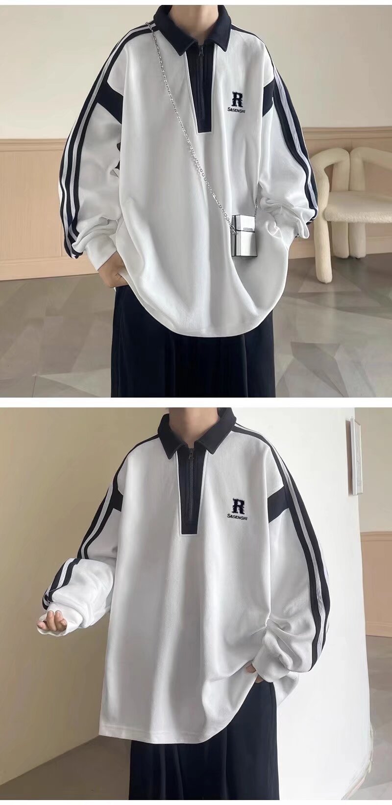 국경 반 지퍼 옷깃 폴로 셔츠 남자 긴팔 가을 미국 스타일 복고풍 대학 스타일 트렌디 한 브랜드 느슨한 캐주얼 스웨터스토어 가기