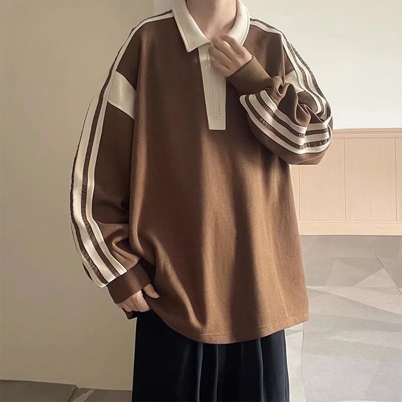 국경 반 지퍼 옷깃 폴로 셔츠 남자 긴팔 가을 미국 스타일 복고풍 대학 스타일 트렌디 한 브랜드 느슨한 캐주얼 스웨터