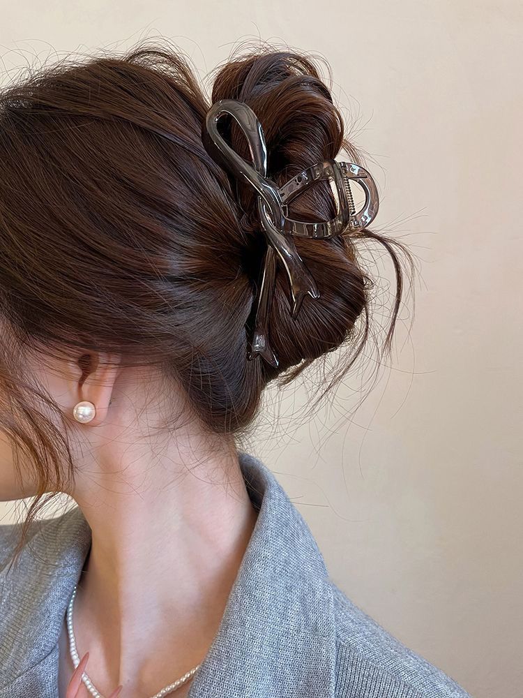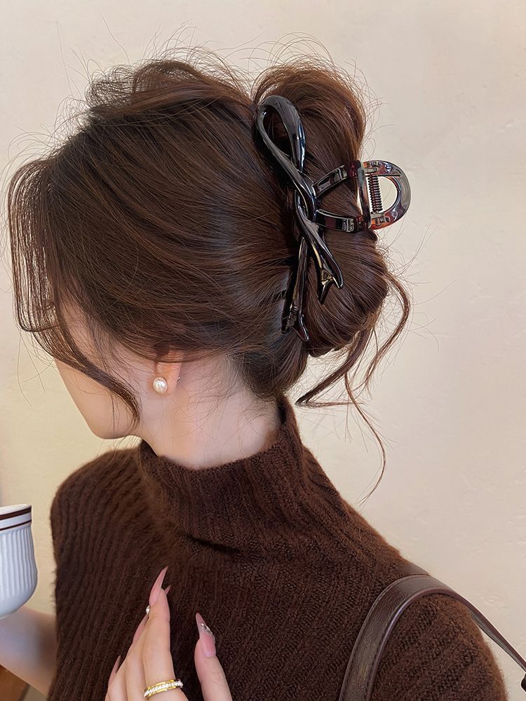 간단한 리본 활 그랩 클립 대형 헤어 클립 여성의 2024 새로운 하이 엔드 센스 백 헤드 상어 클립 헤어 액세서리스토어 가기