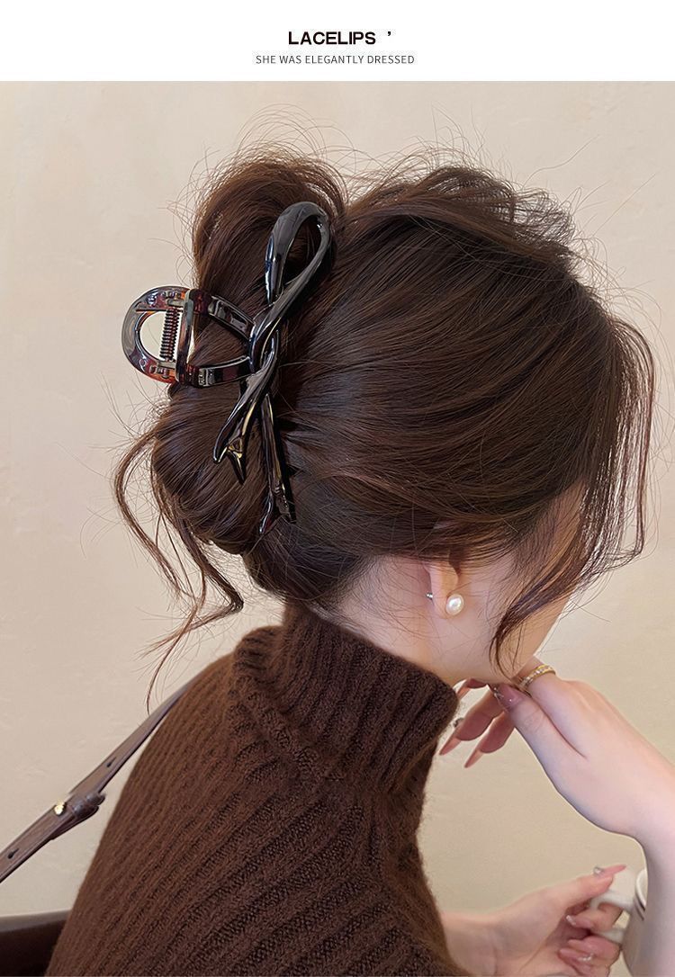 간단한 리본 활 그랩 클립 대형 헤어 클립 여성의 2024 새로운 하이 엔드 센스 백 헤드 상어 클립 헤어 액세서리