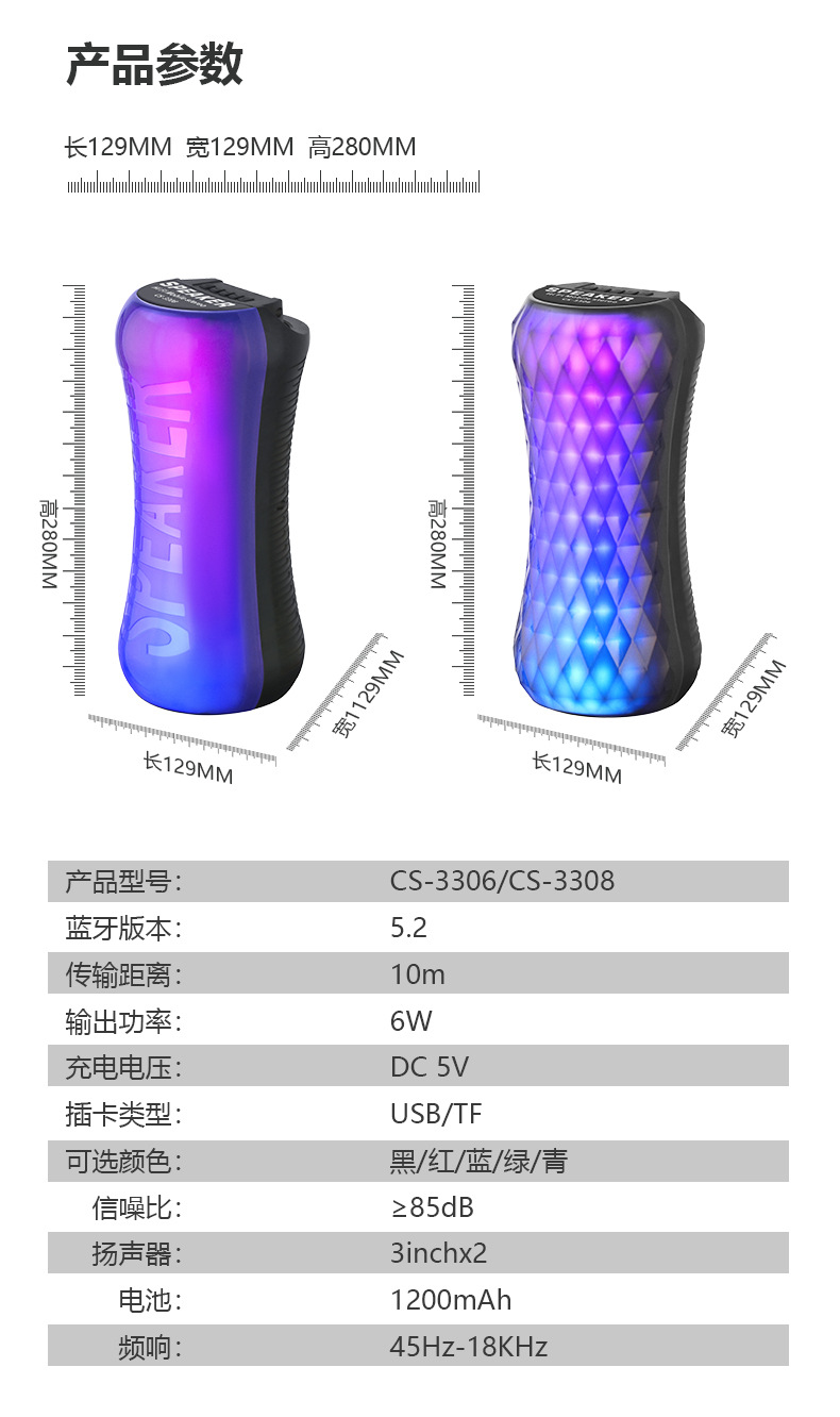 蓝牙功能,MIC输入  幻彩灯,5个按键