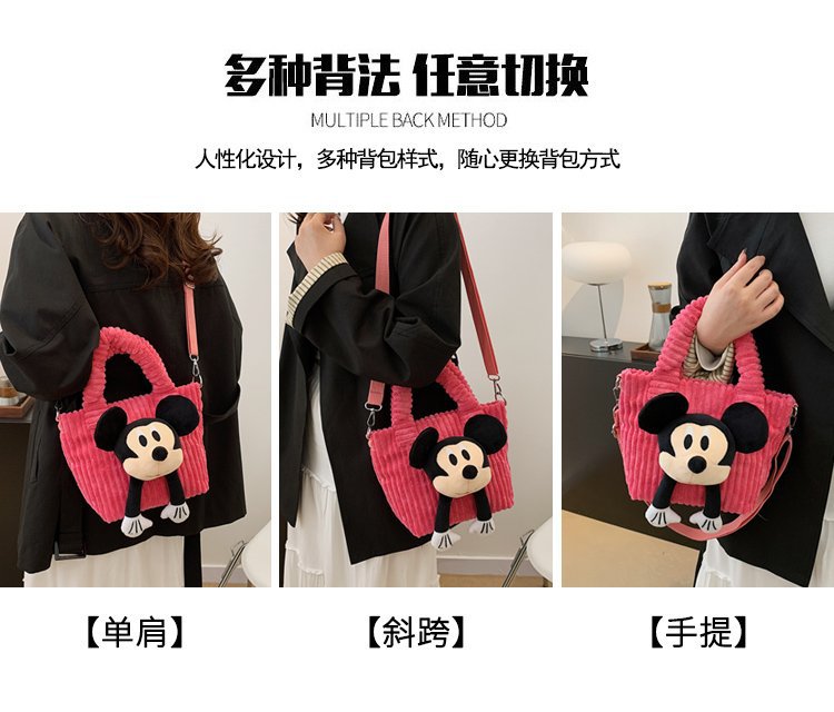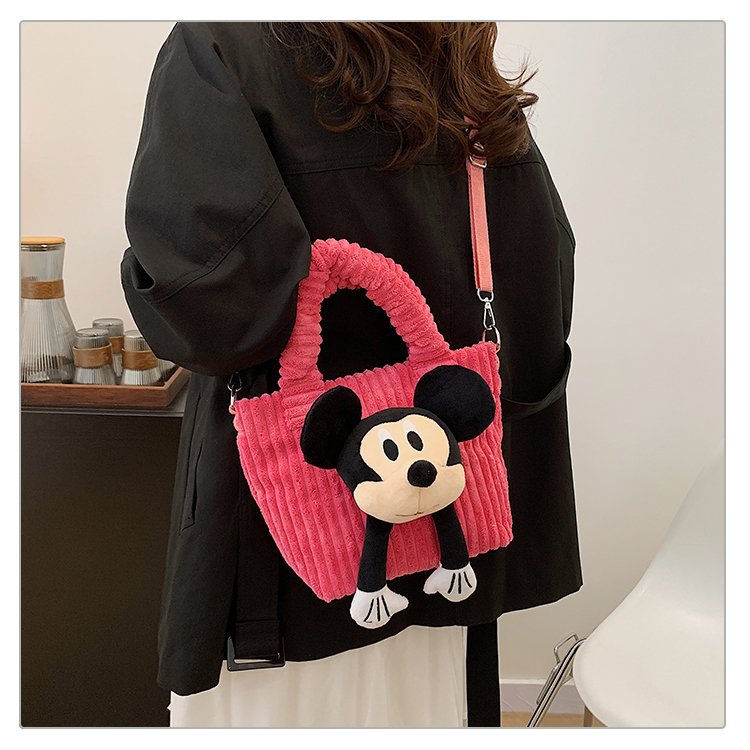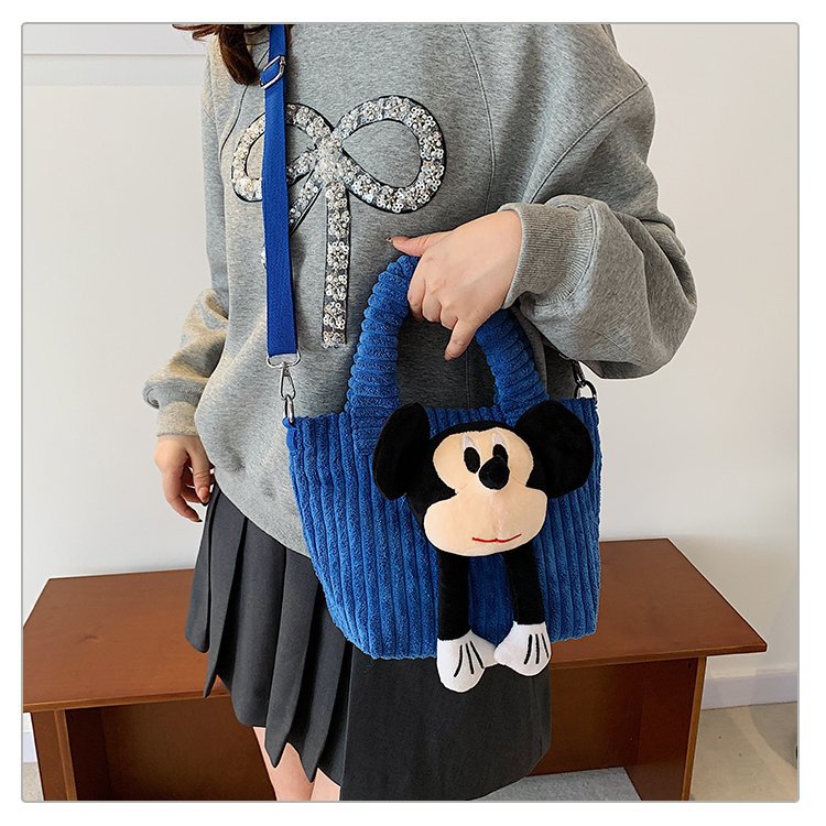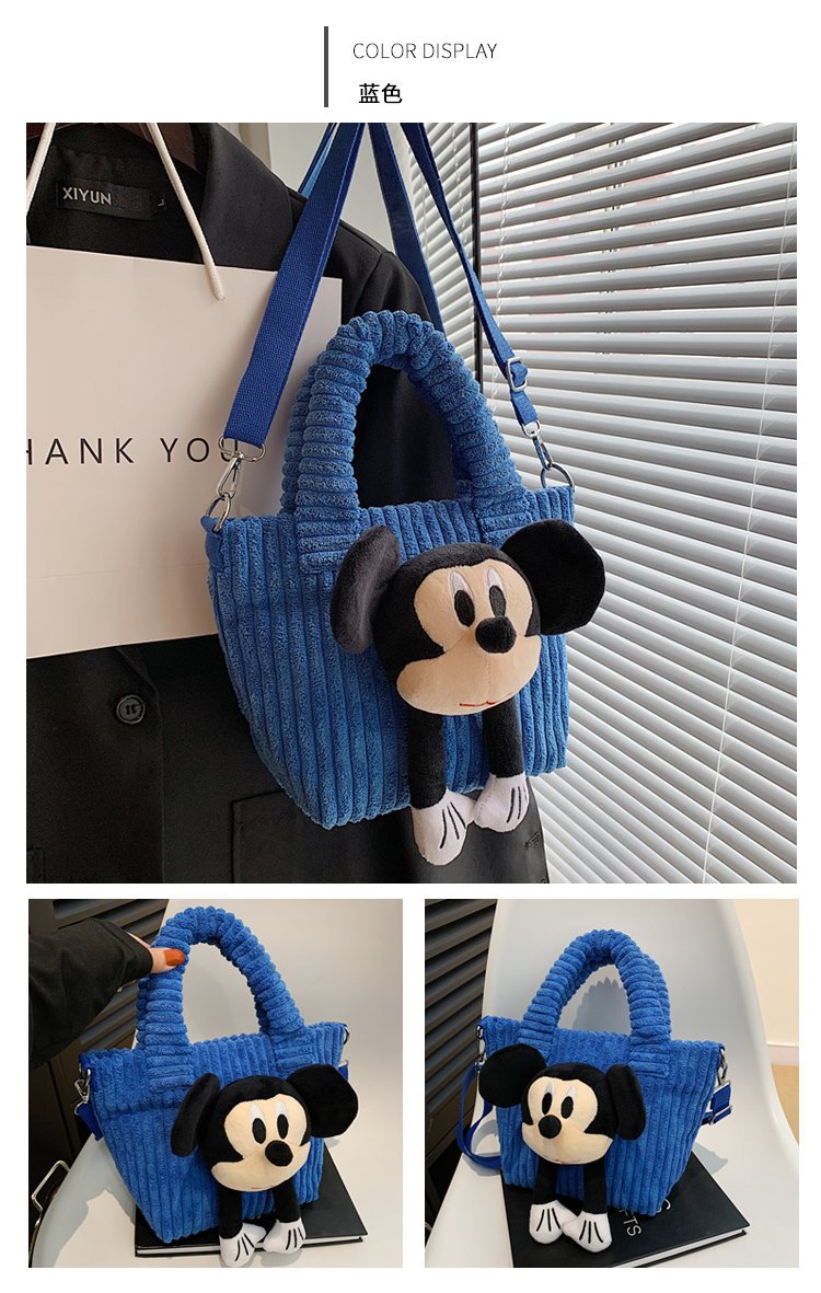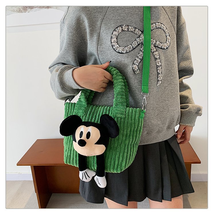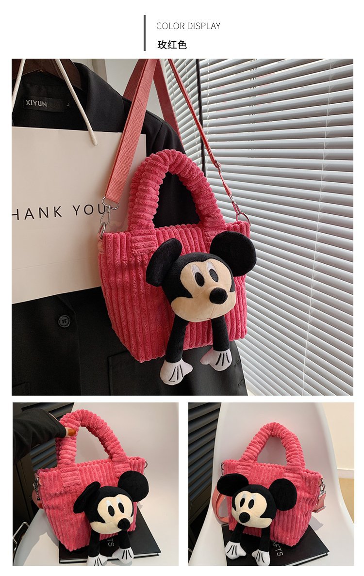 어린이 가방 가을과 겨울 새로운 코듀로이 휴대용 작은 가방 여성의 귀여운 미키 크로스 바디 가방 스타일리스트 통근 어깨 가방스토어 가기