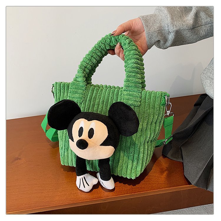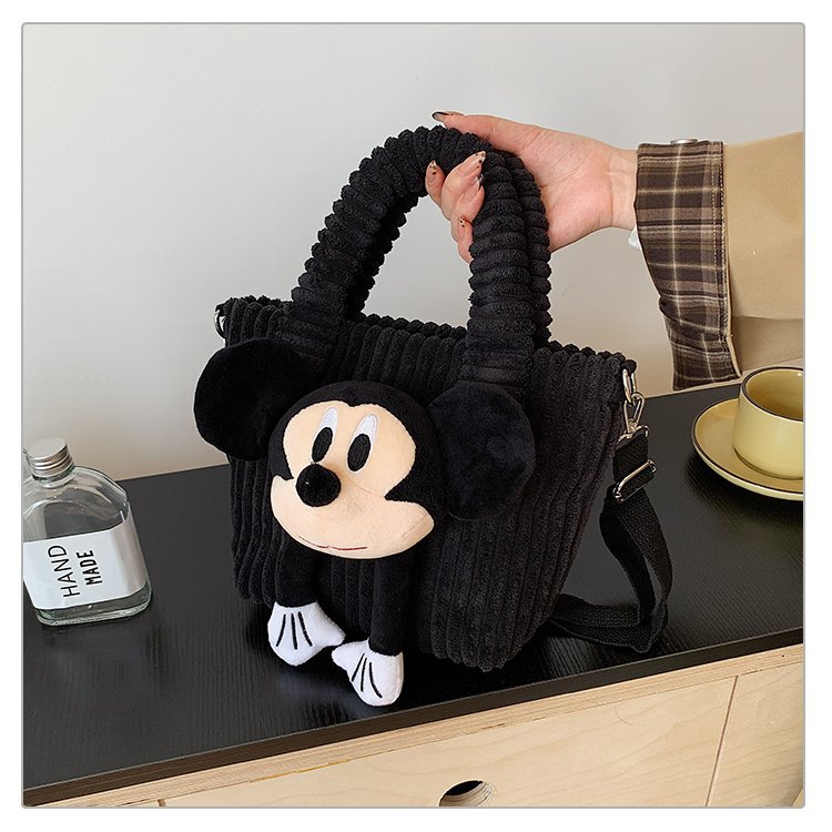 어린이 가방 가을과 겨울 새로운 코듀로이 휴대용 작은 가방 여성의 귀여운 미키 크로스 바디 가방 스타일리스트 통근 어깨 가방